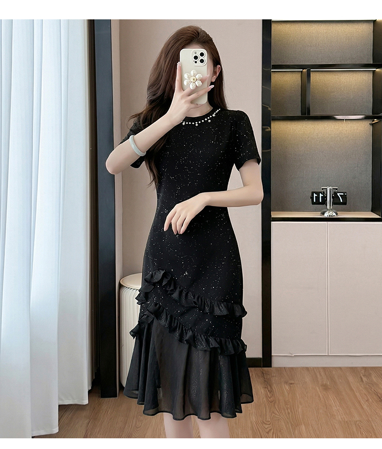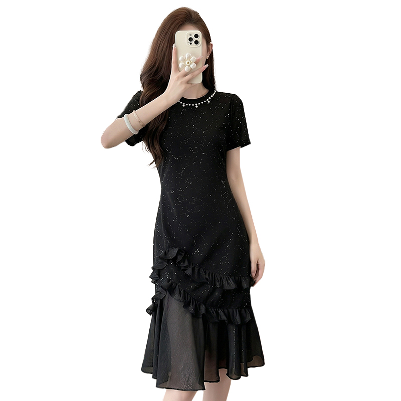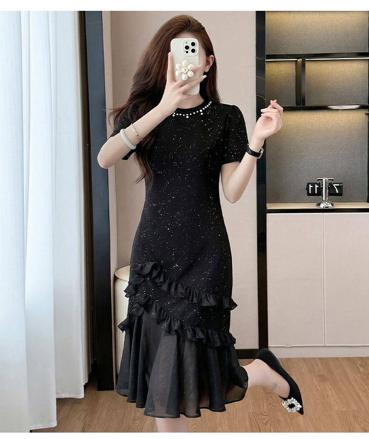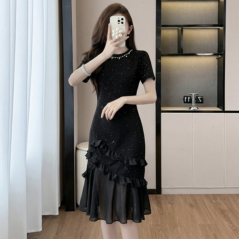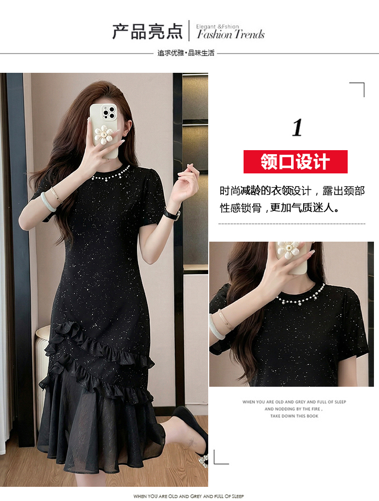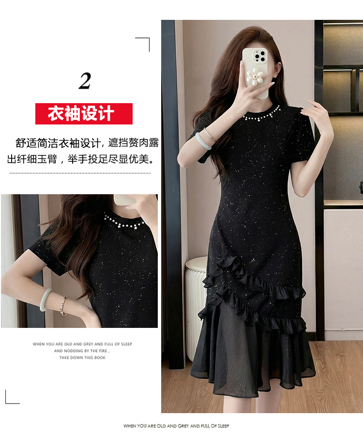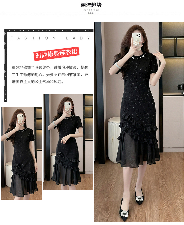 RY2796# 法式轻奢连衣裙女夏款高级质感洋气别致长裙子显瘦时尚网纱鱼尾裙