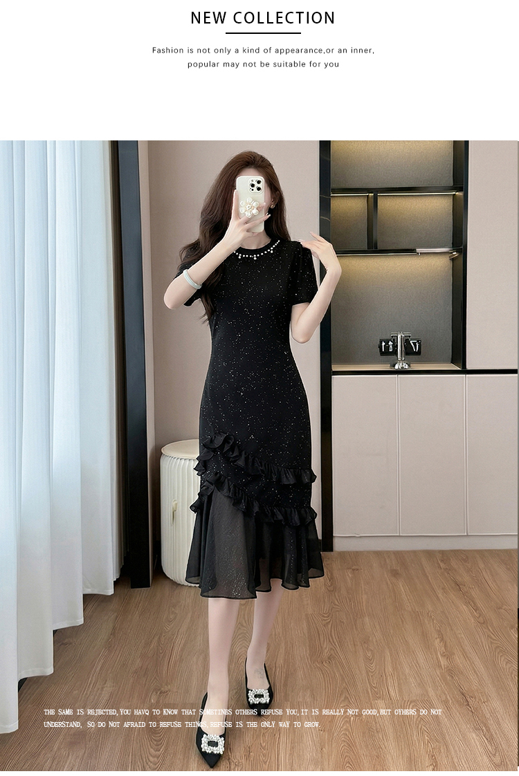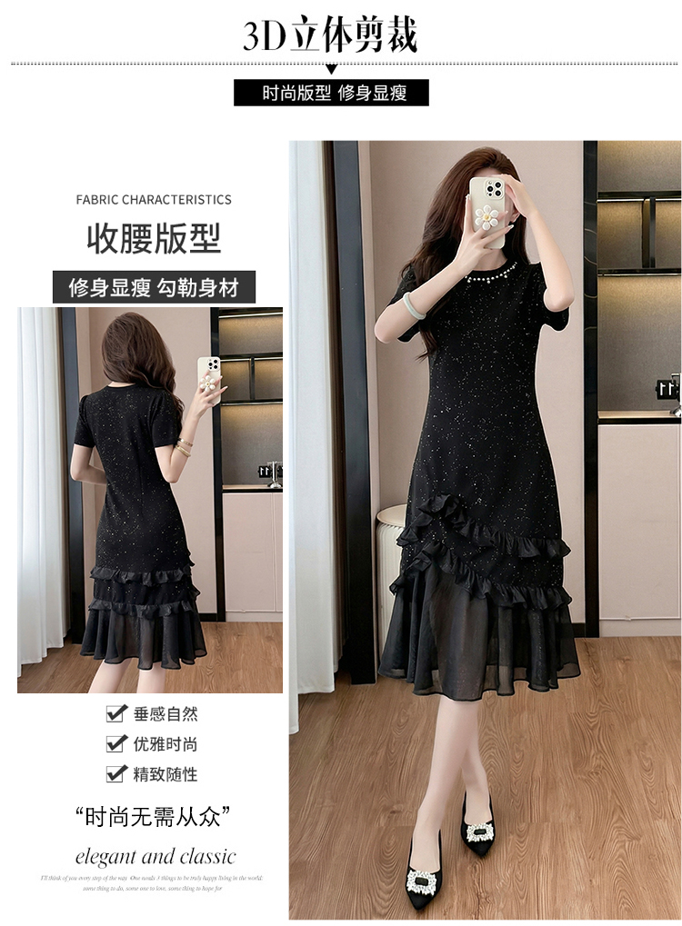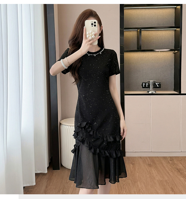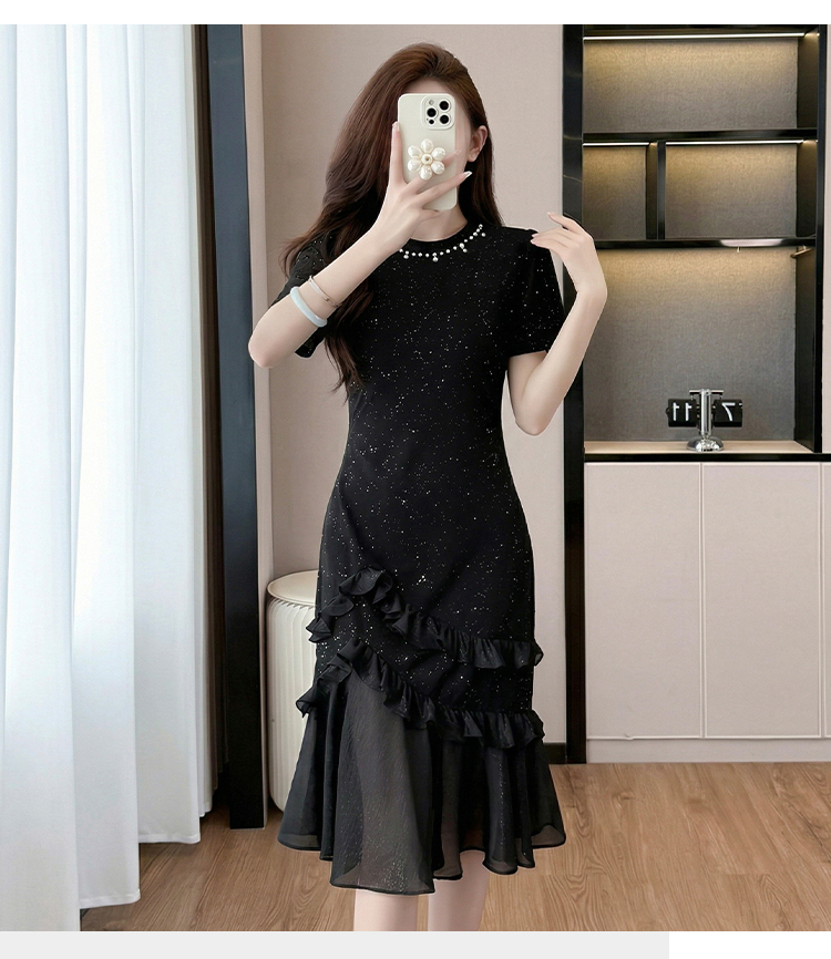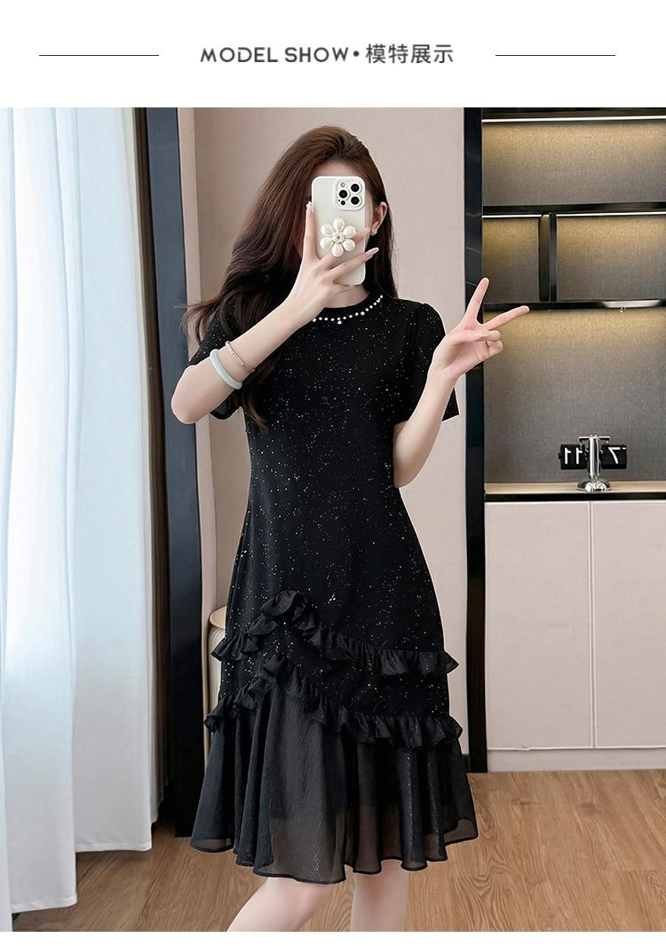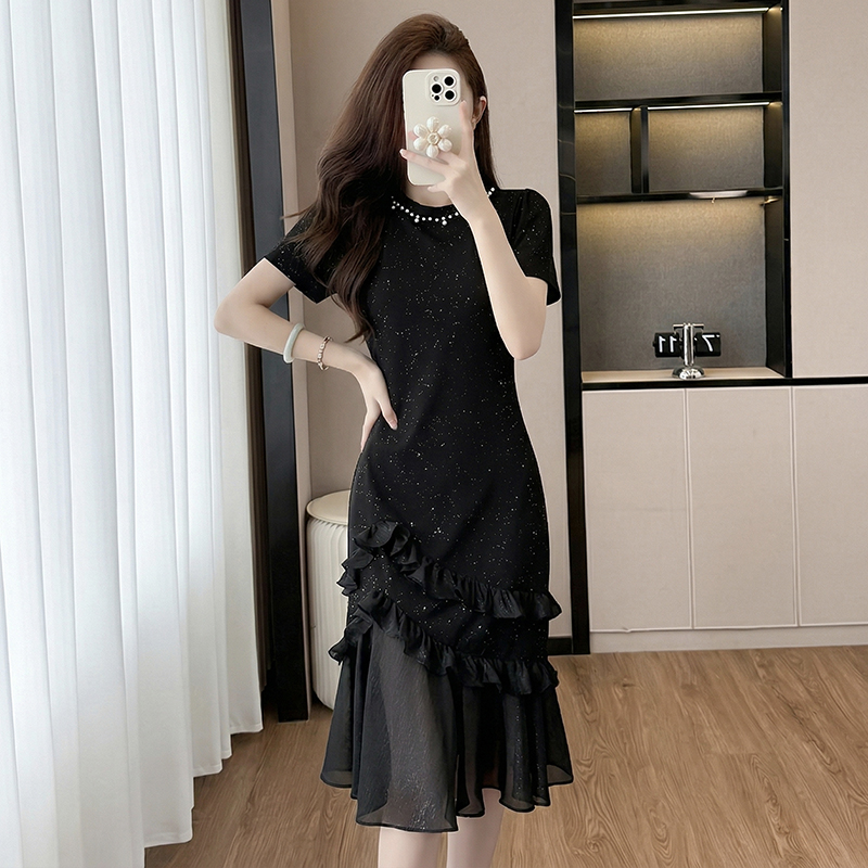 RY2796# 法式轻奢连衣裙女夏款高级质感洋气别致长裙子显瘦时尚网纱鱼尾裙