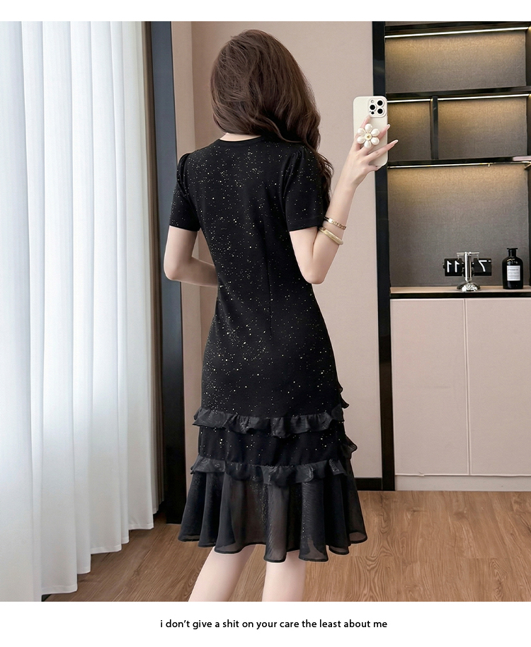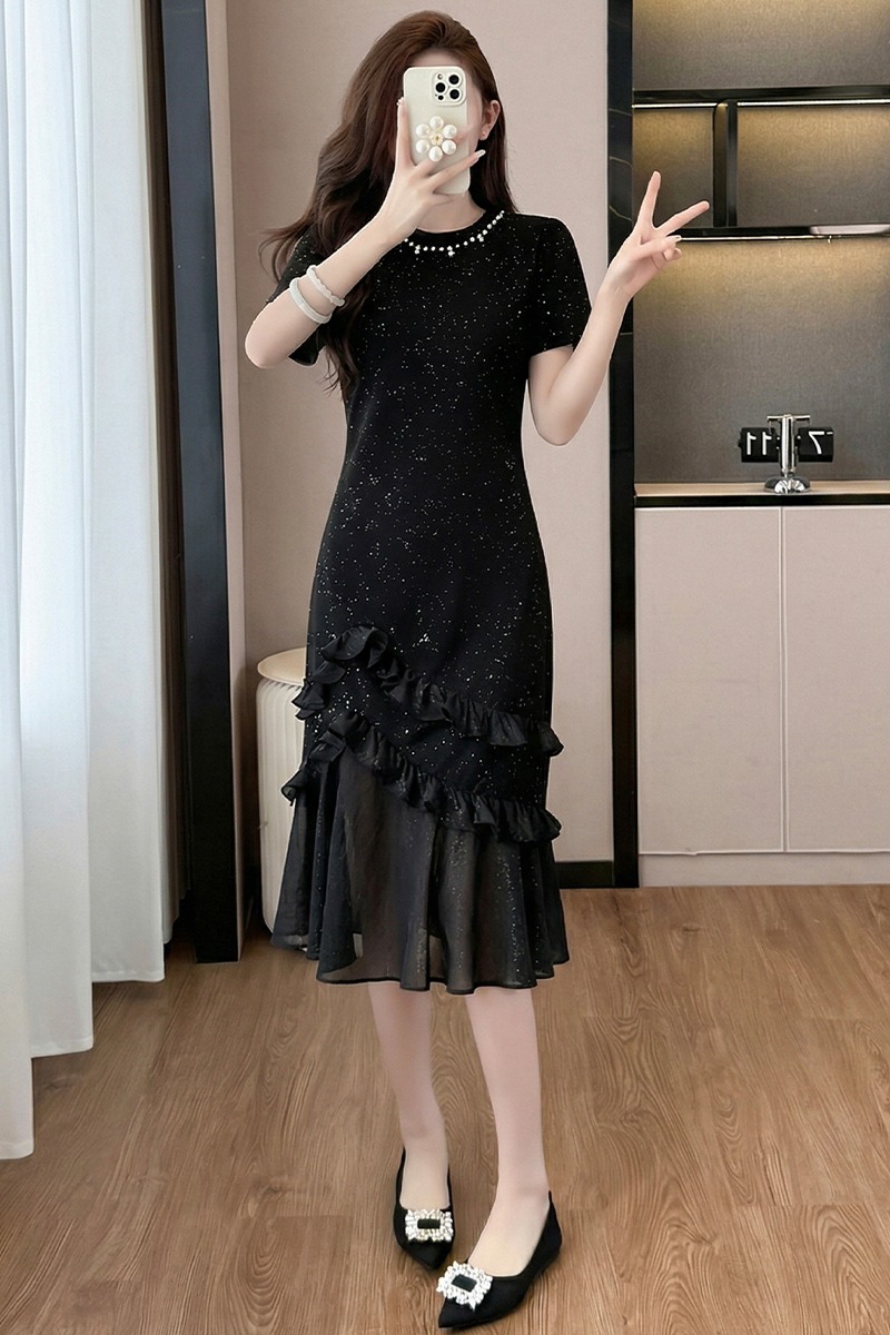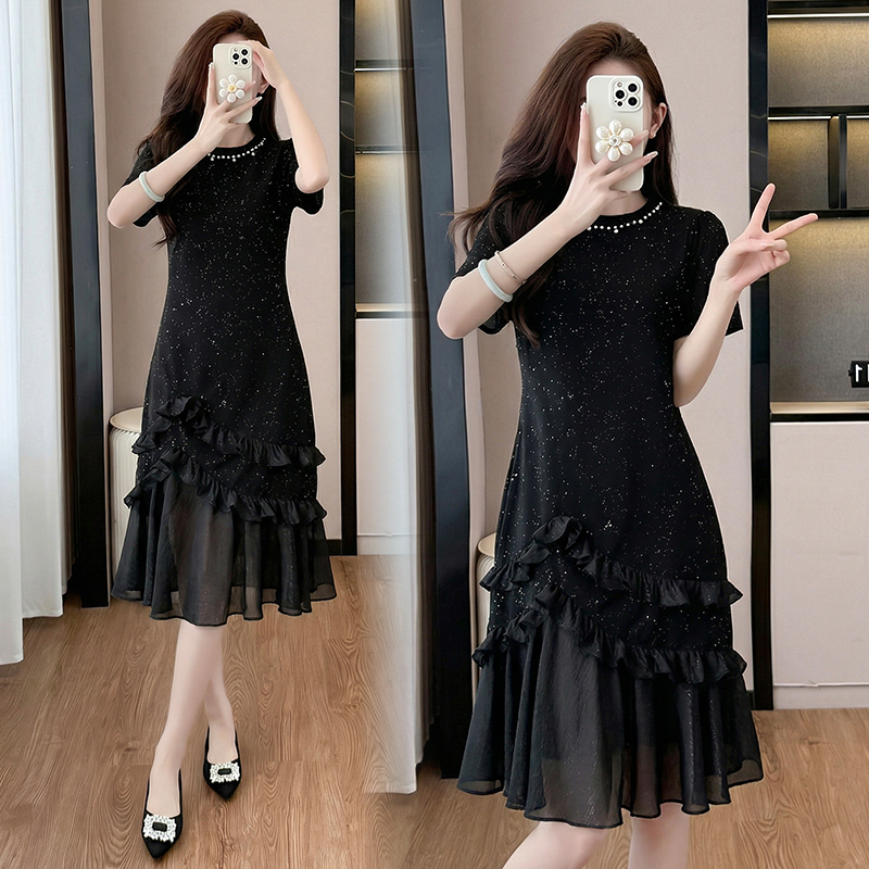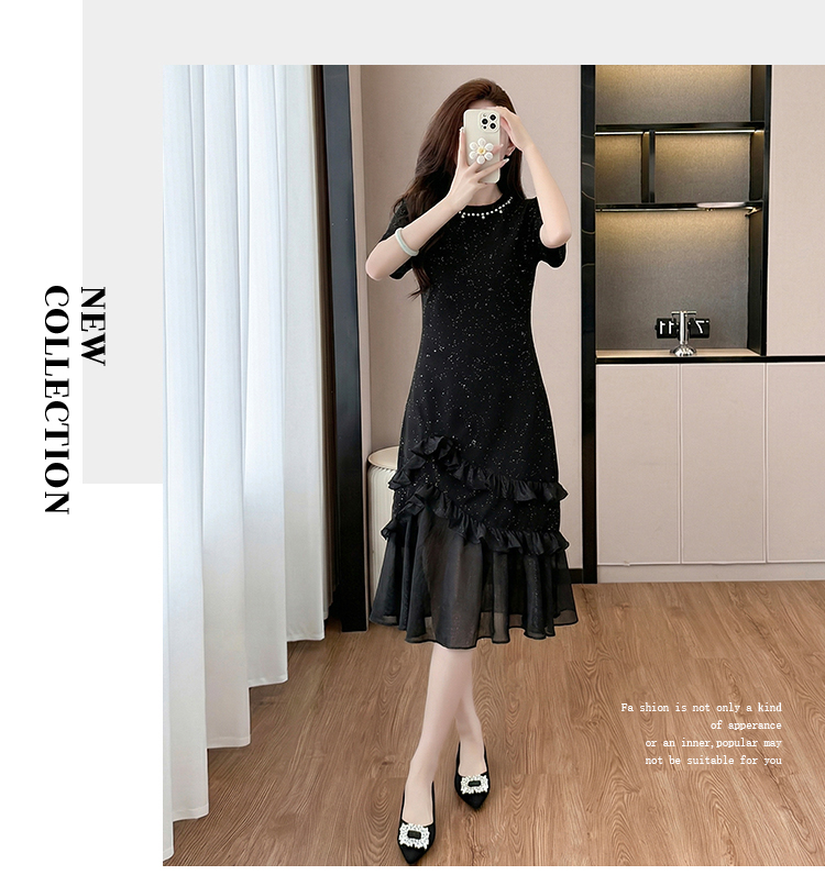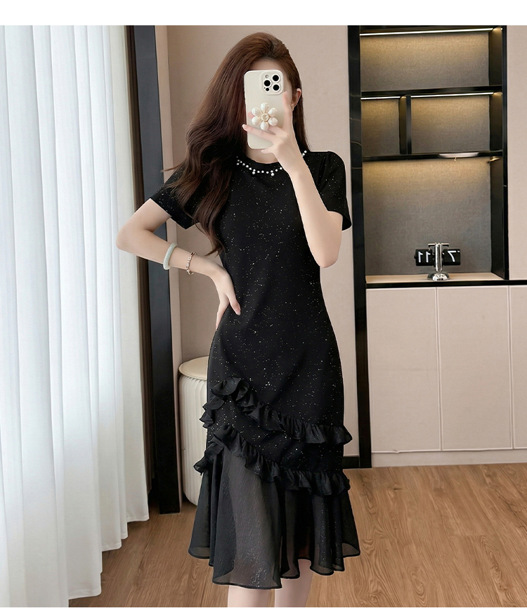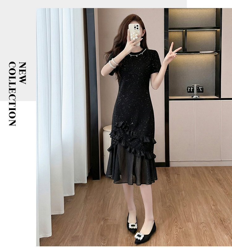 RY2796# 法式轻奢连衣裙女夏款高级质感洋气别致长裙子显瘦时尚网纱鱼尾裙