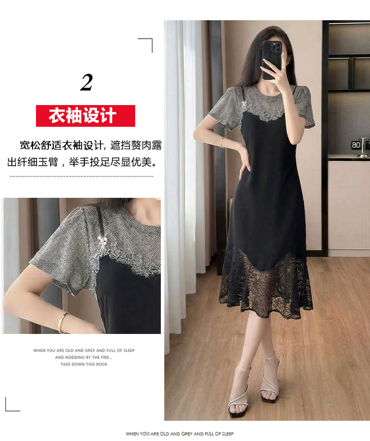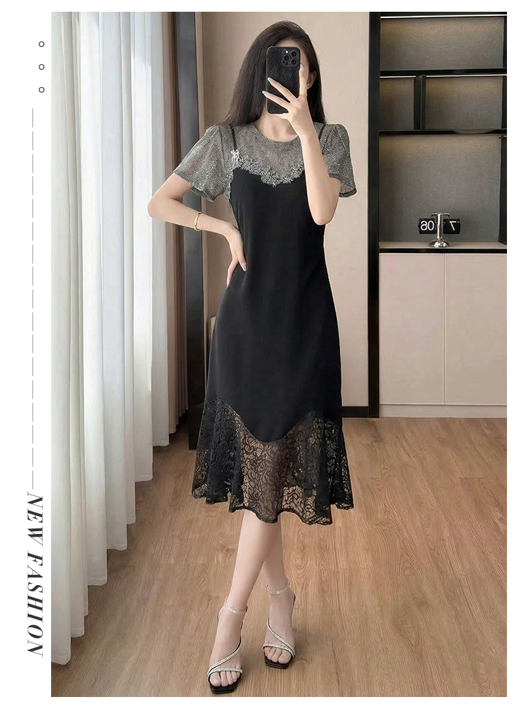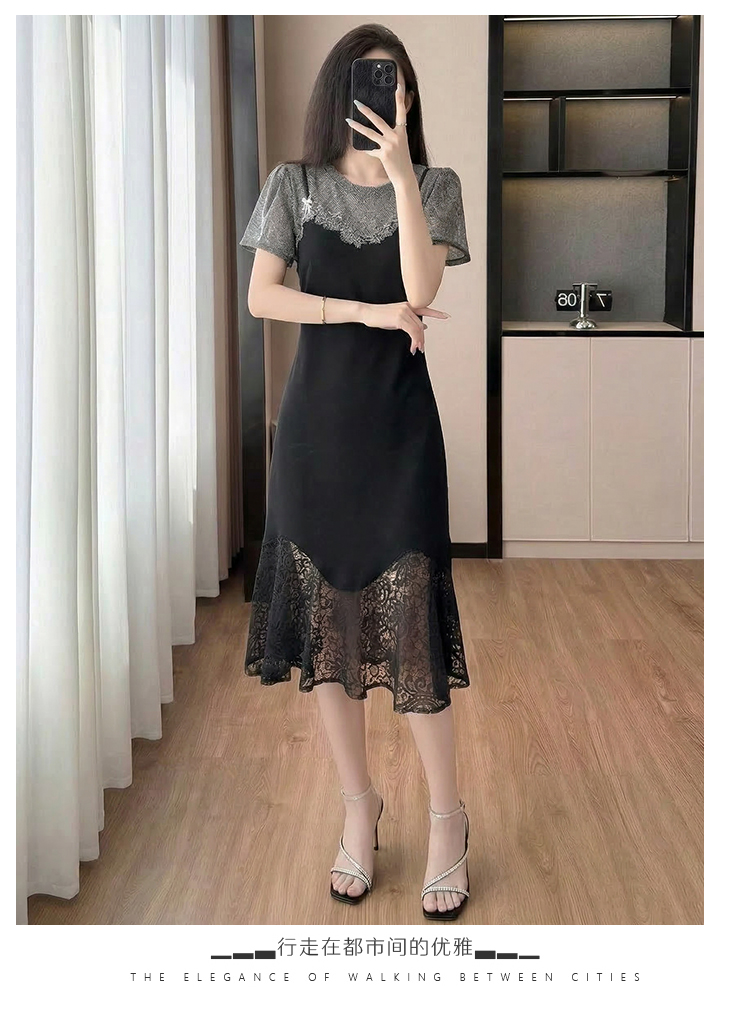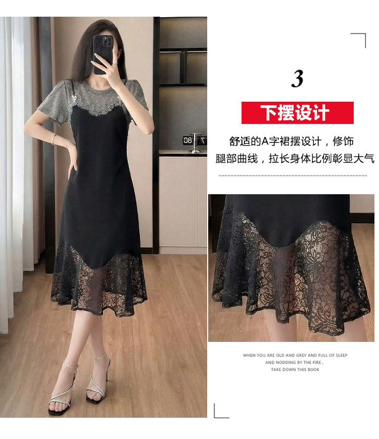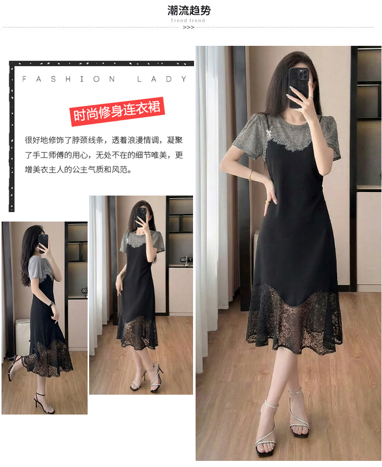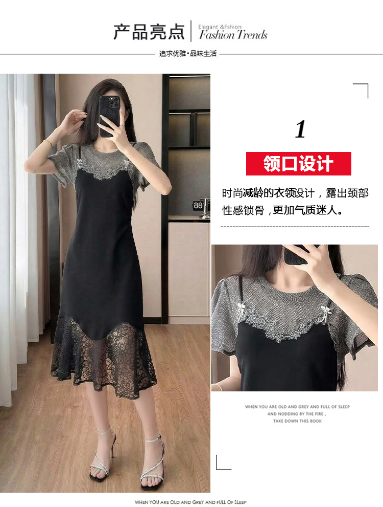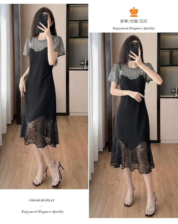 RY2797# 实拍复古宫廷高级感蕾丝拼接假两件吊带新款连衣裙女