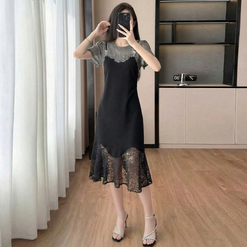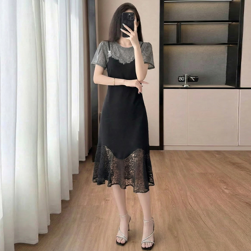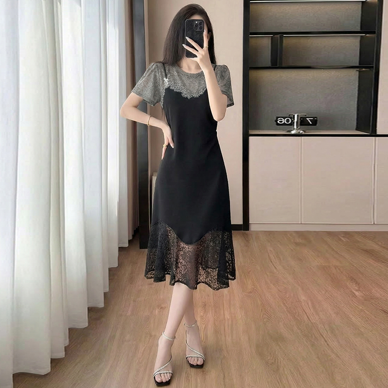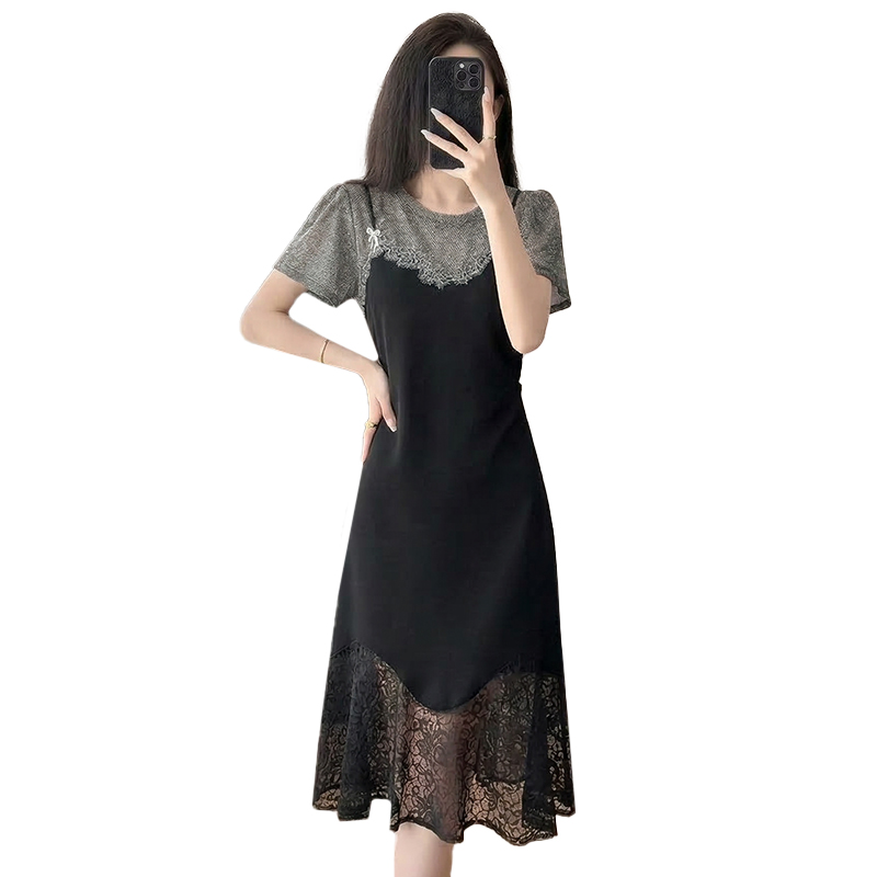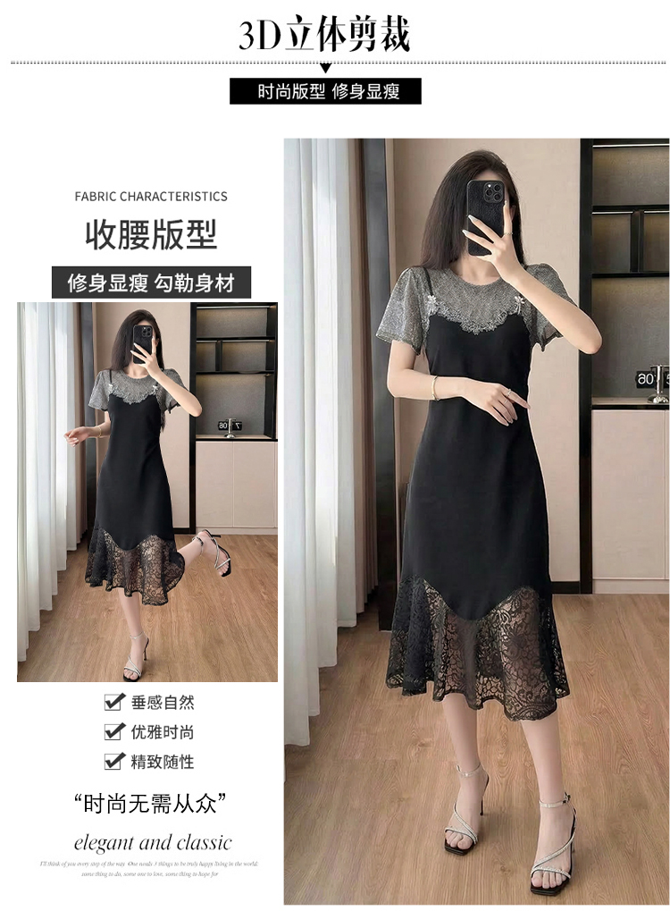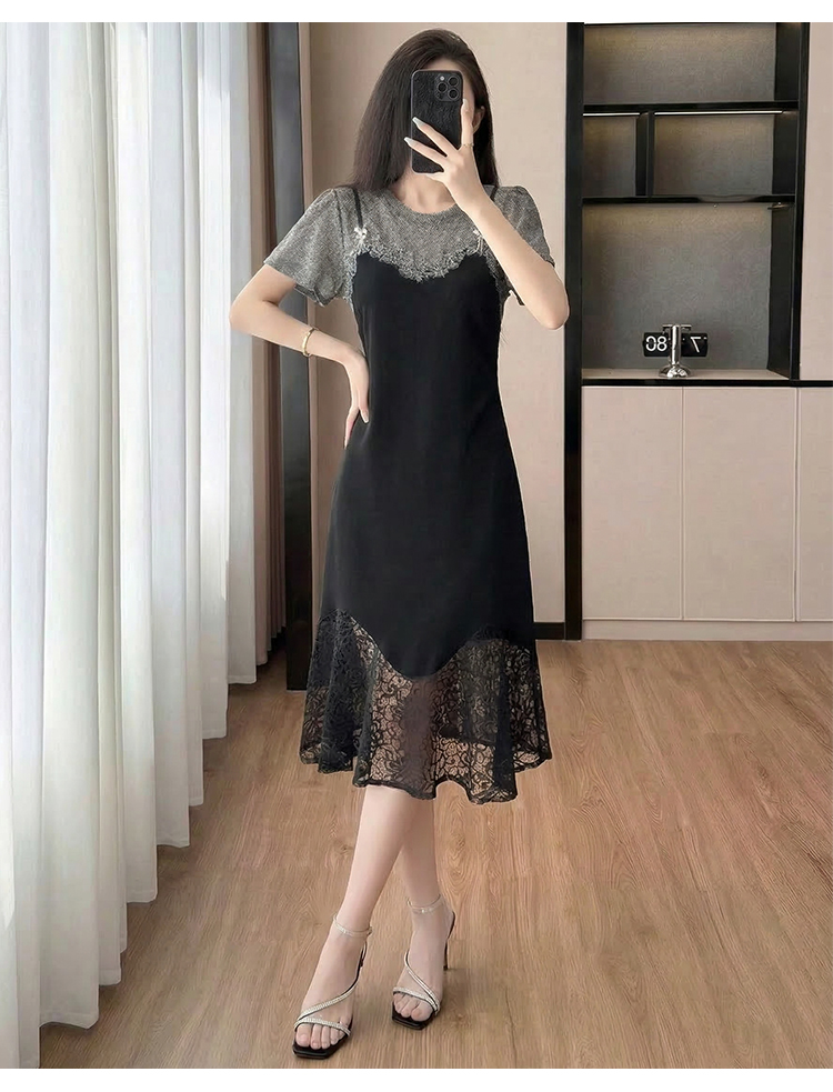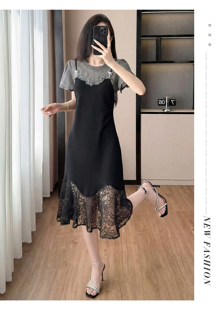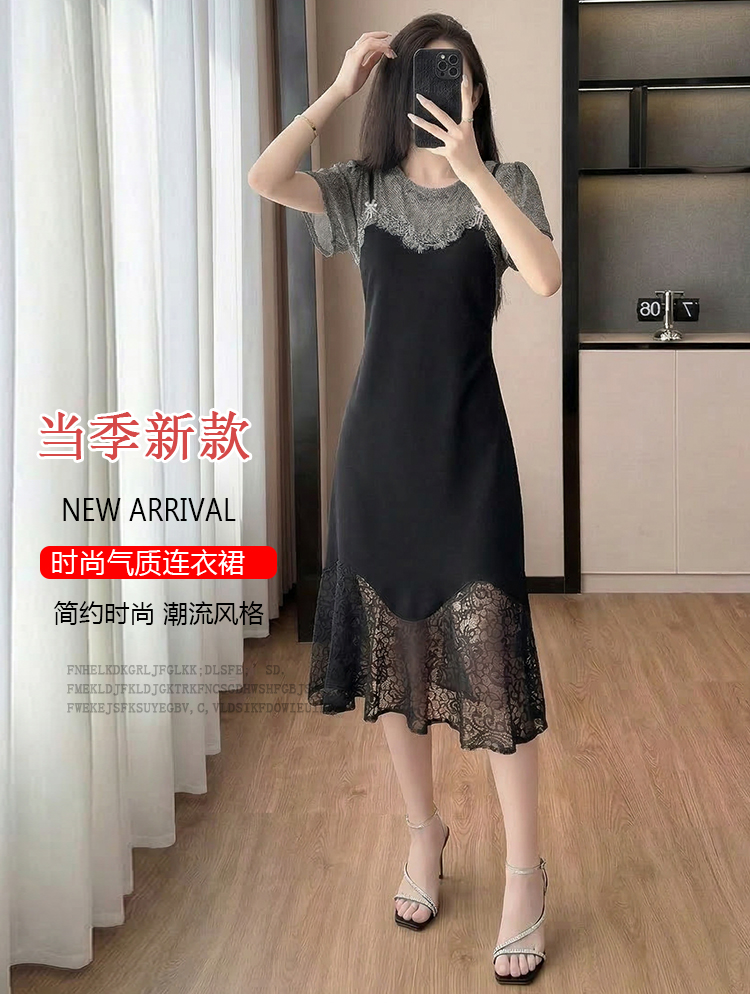 RY2797# 实拍复古宫廷高级感蕾丝拼接假两件吊带新款连衣裙女
