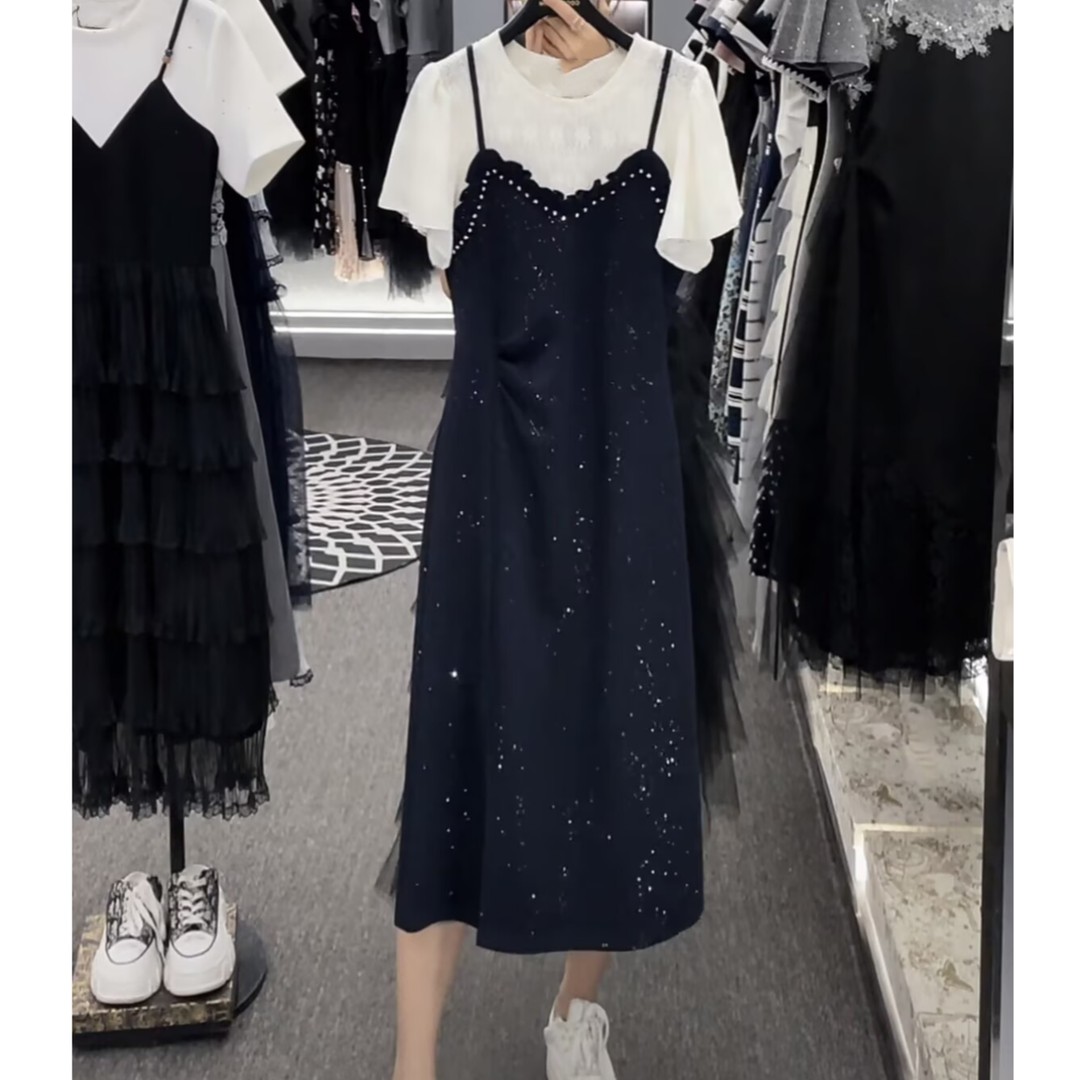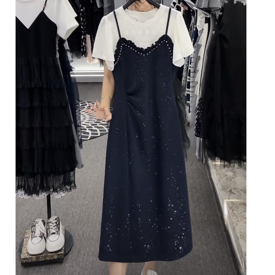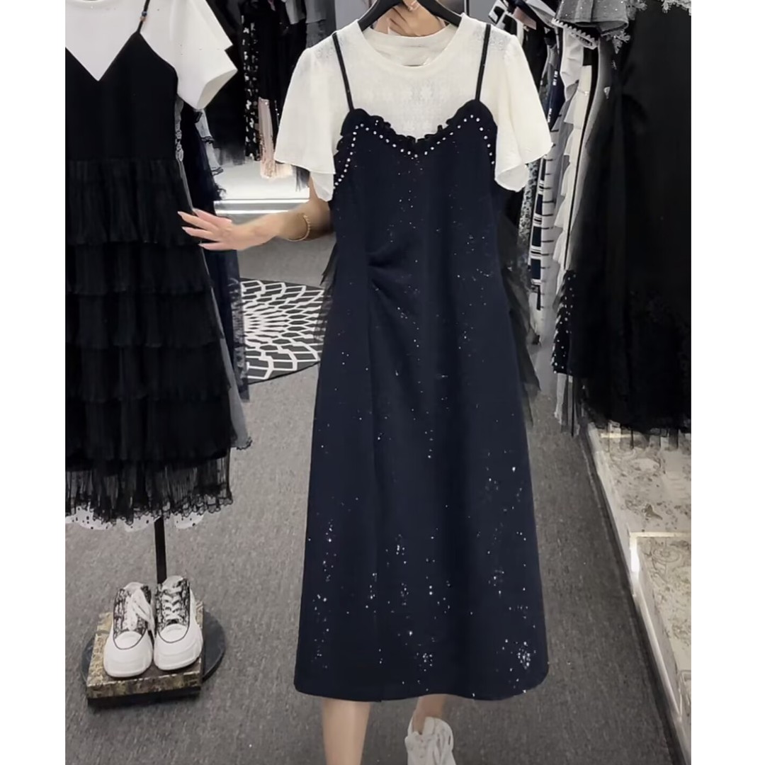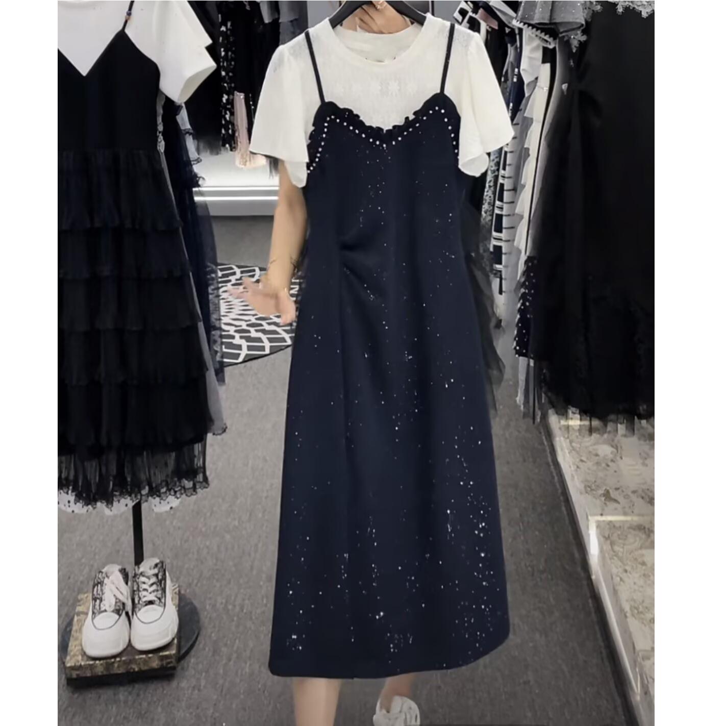 RY2799# 时尚高级设计师夏季新款气质女装拼接重工褶皱显瘦连衣裙