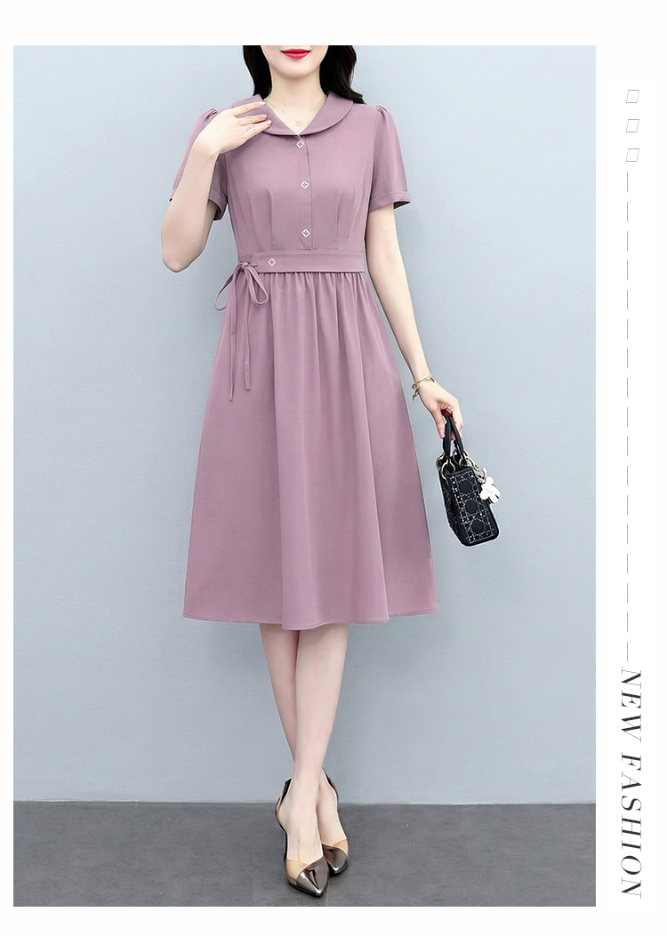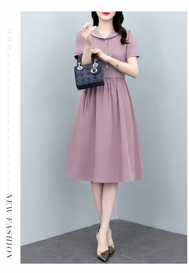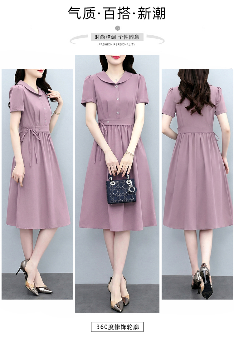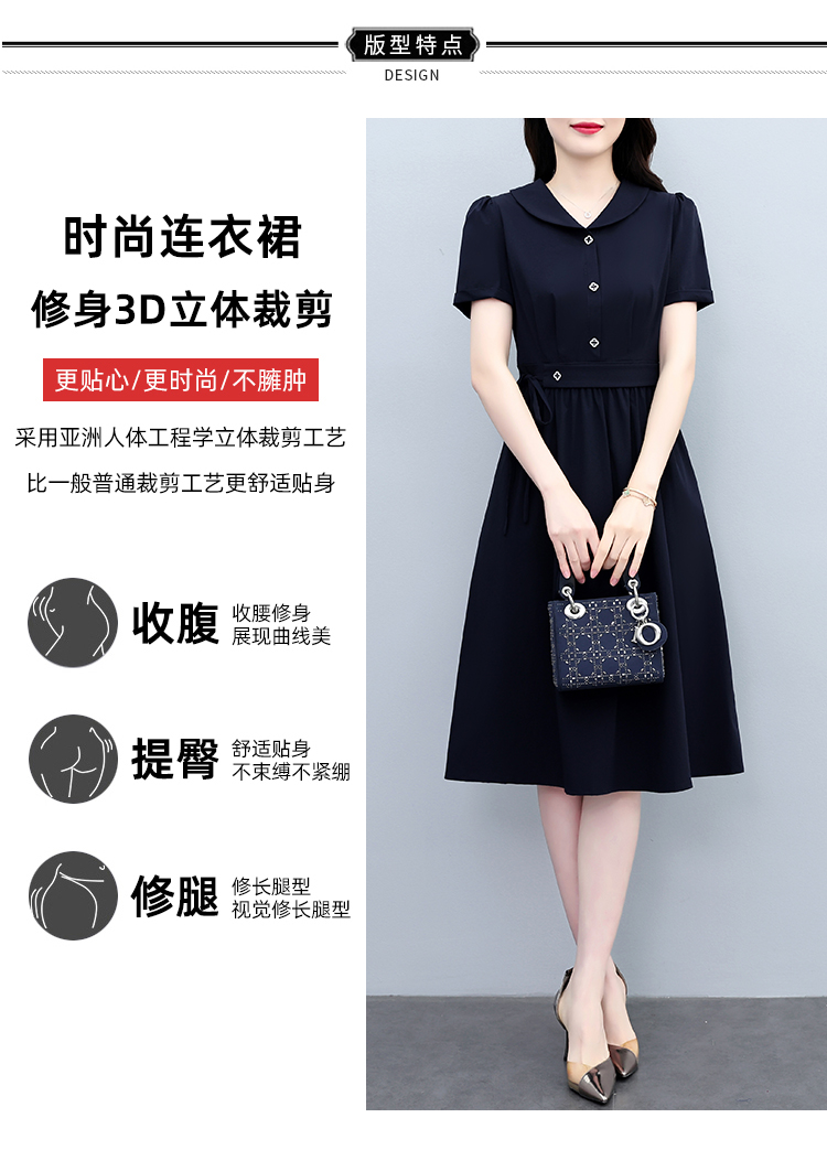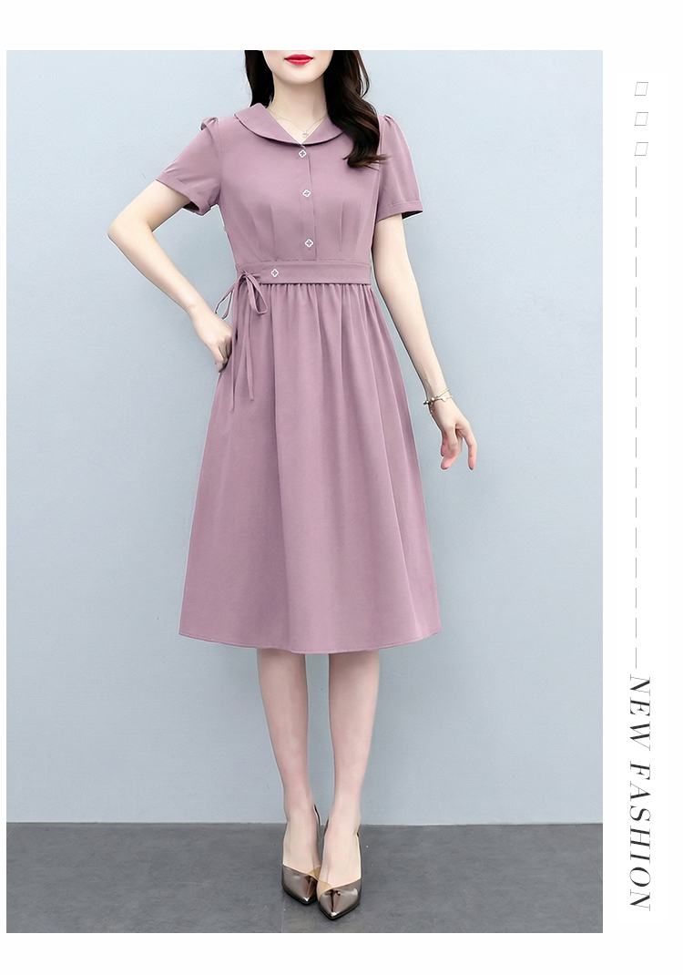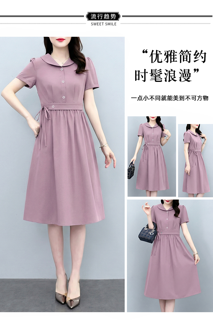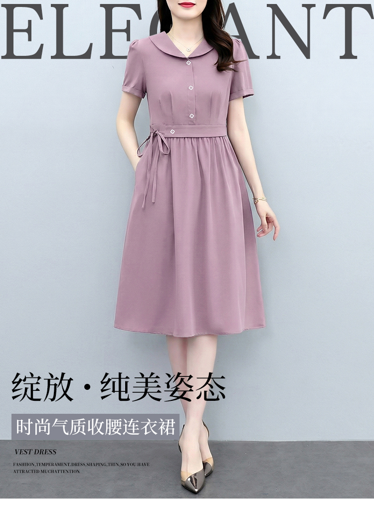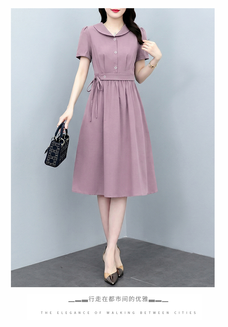 RY2802# 沐沐衣品2026夏季浅色连衣裙显瘦气质洋气时尚收腰短袖减龄中长裙