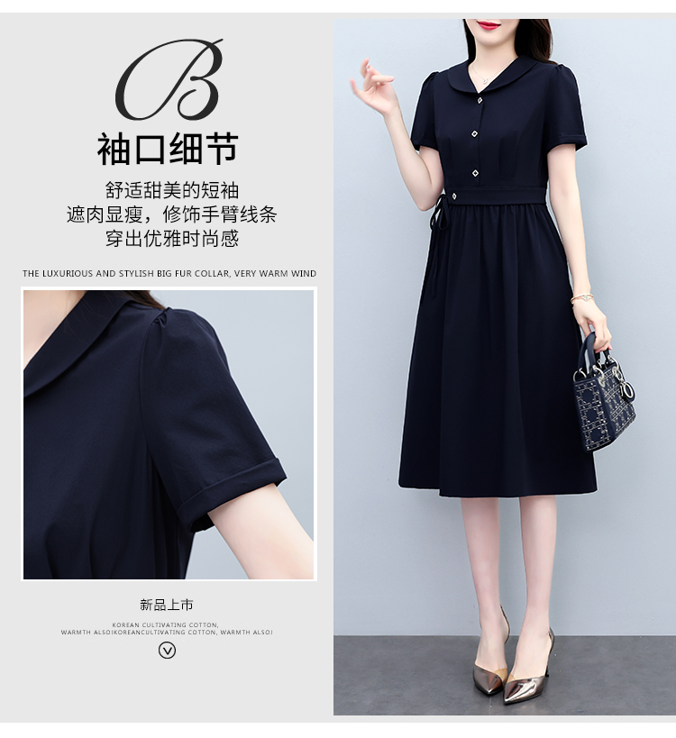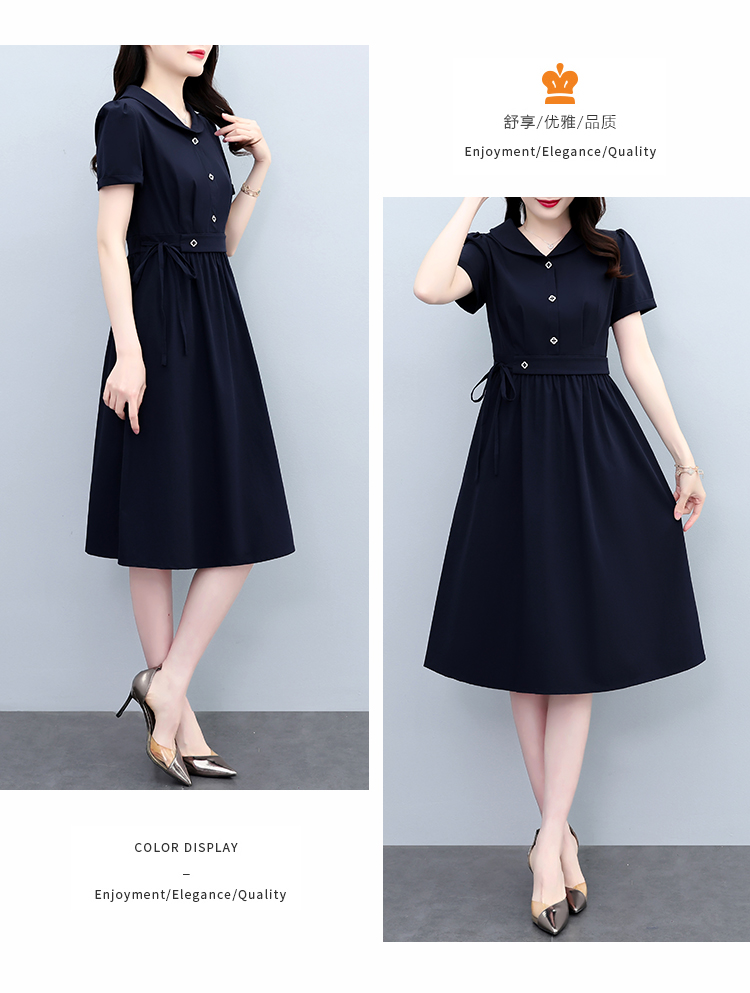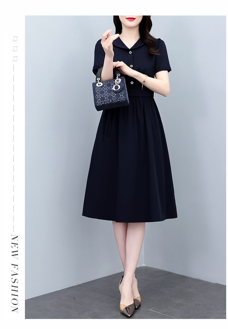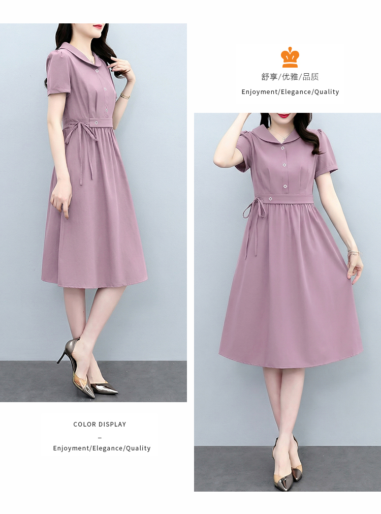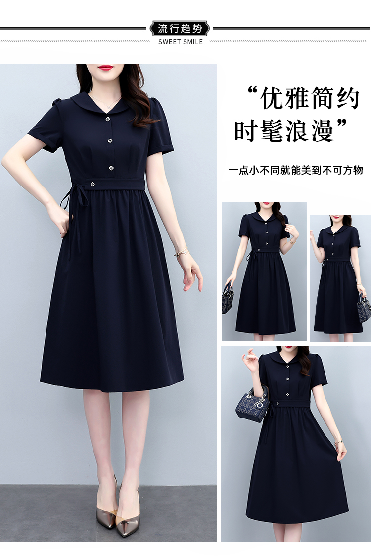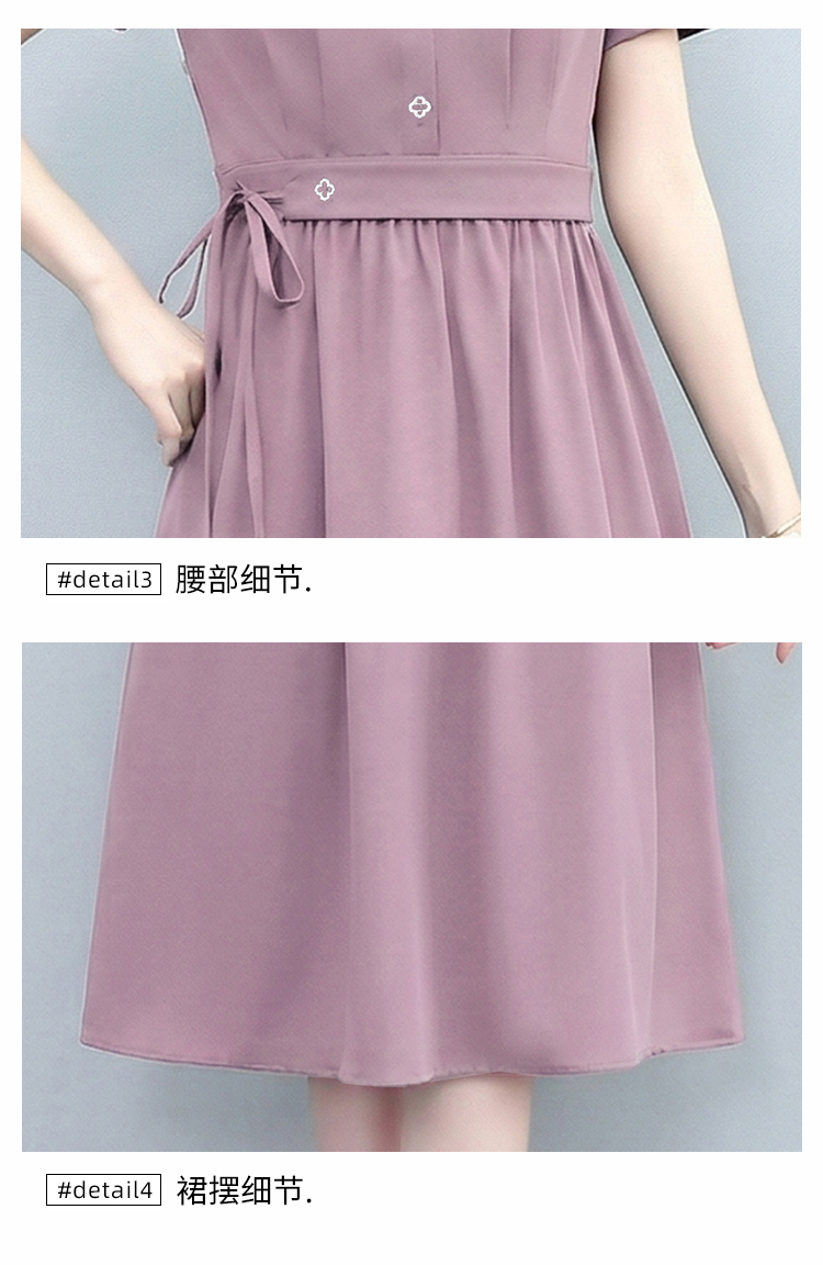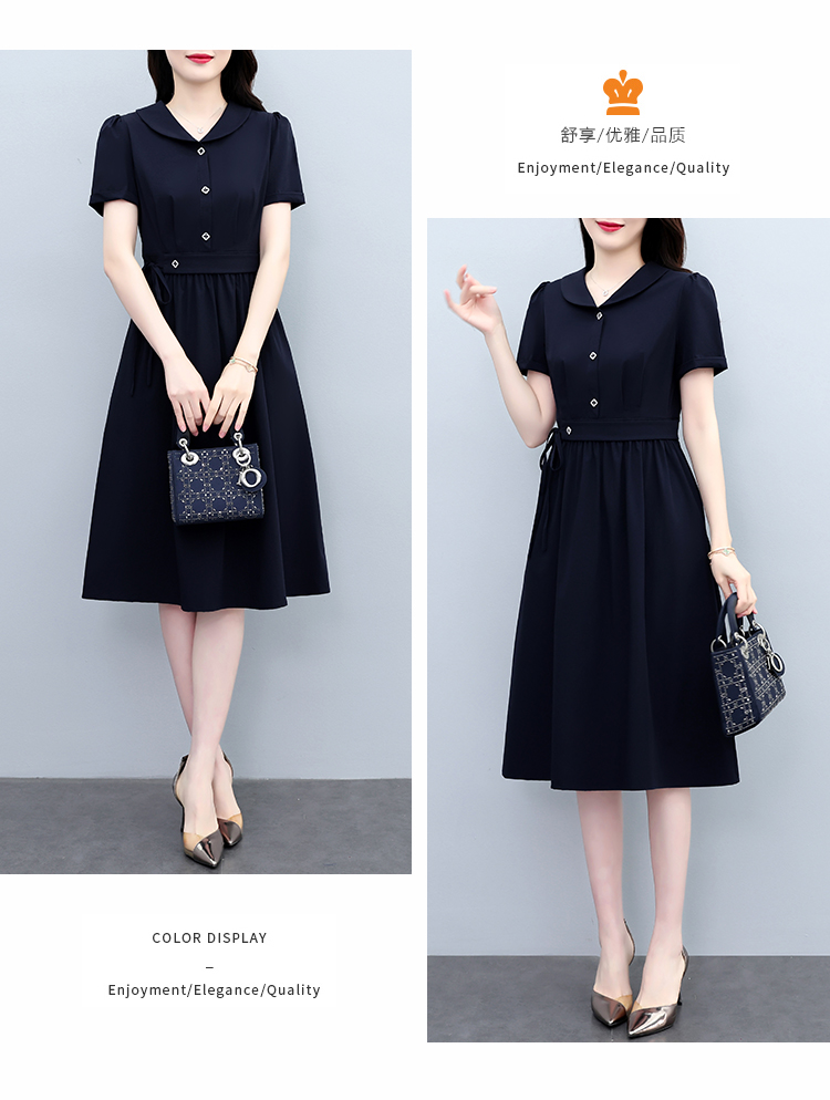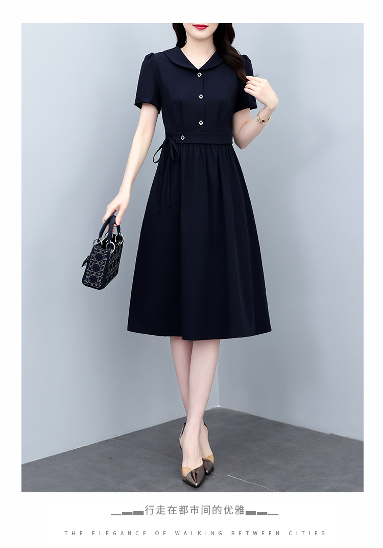 RY2802# 沐沐衣品2026夏季浅色连衣裙显瘦气质洋气时尚收腰短袖减龄中长裙