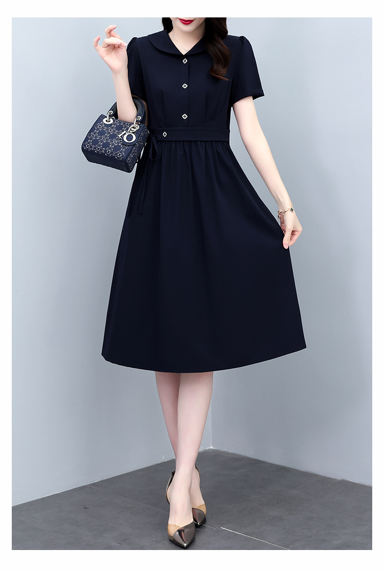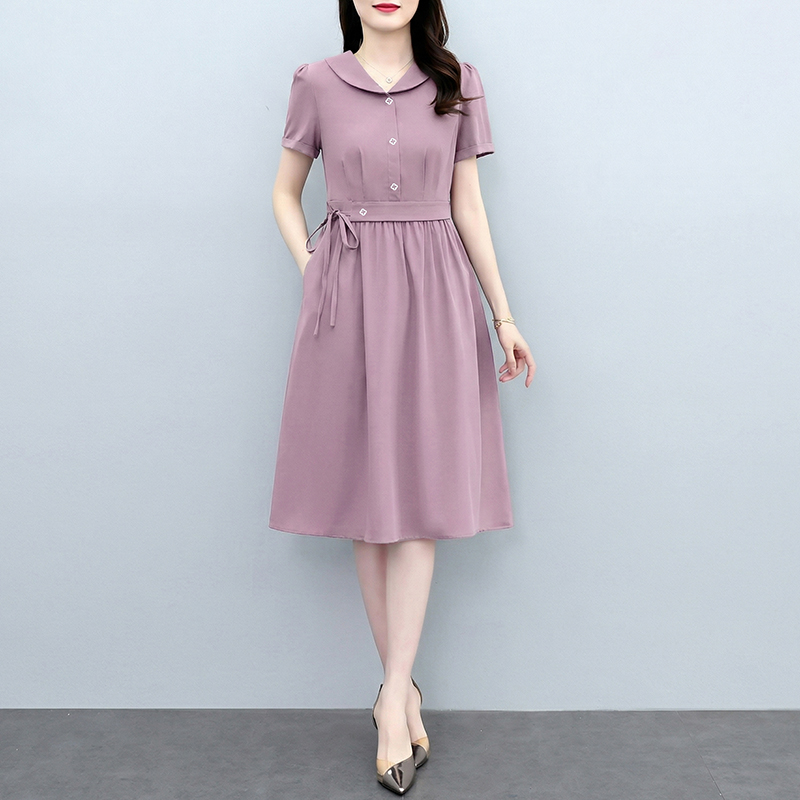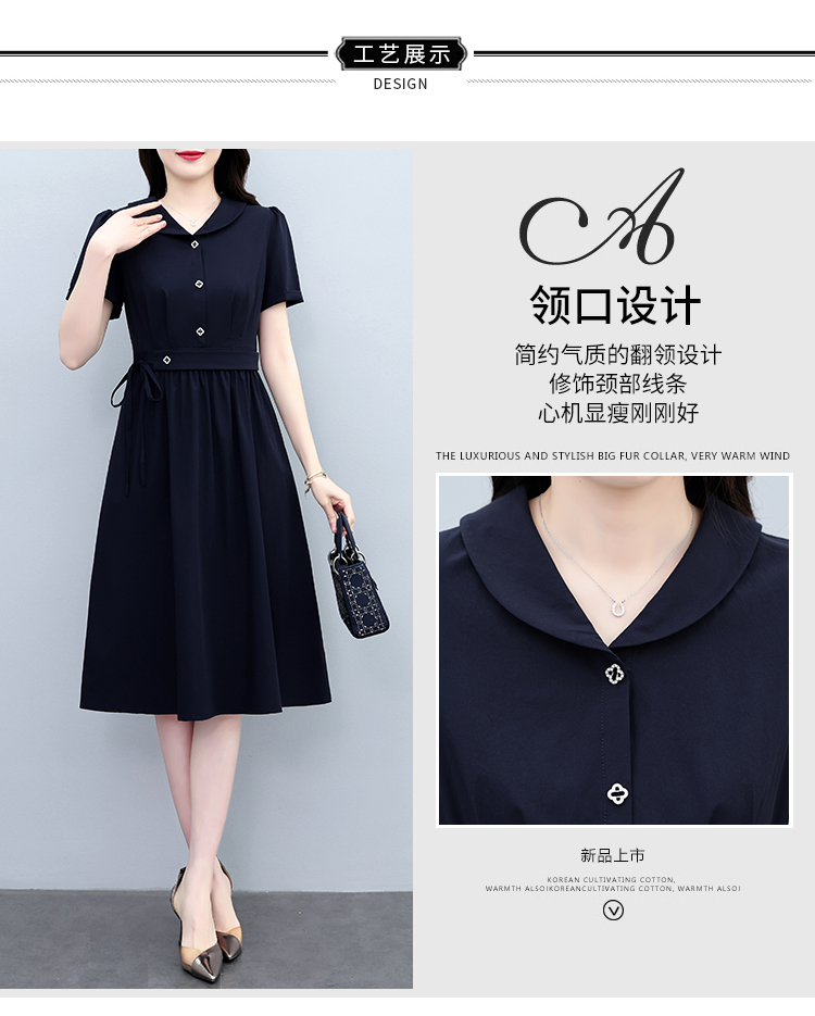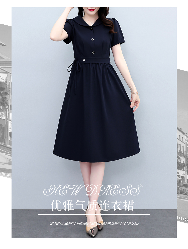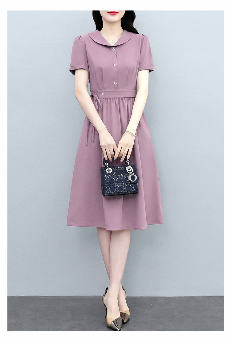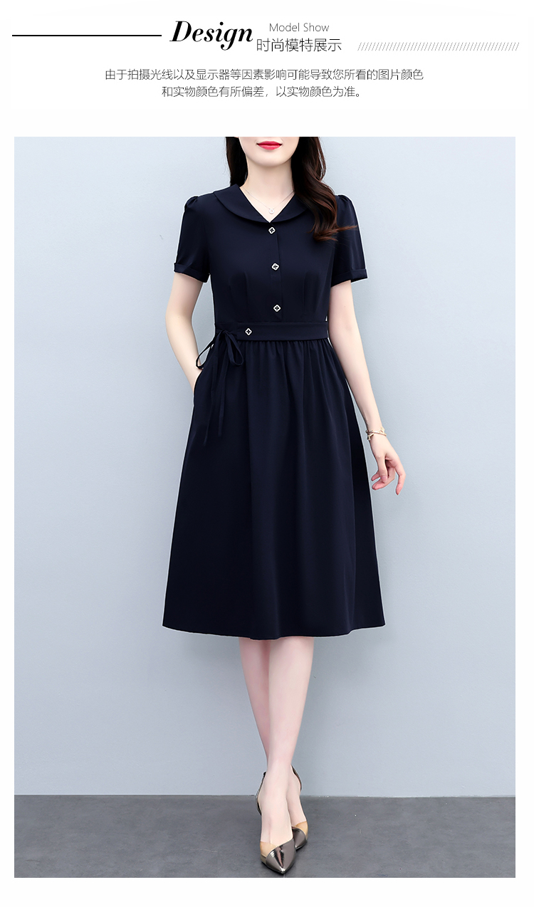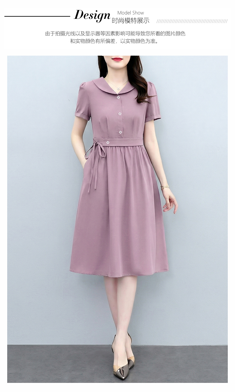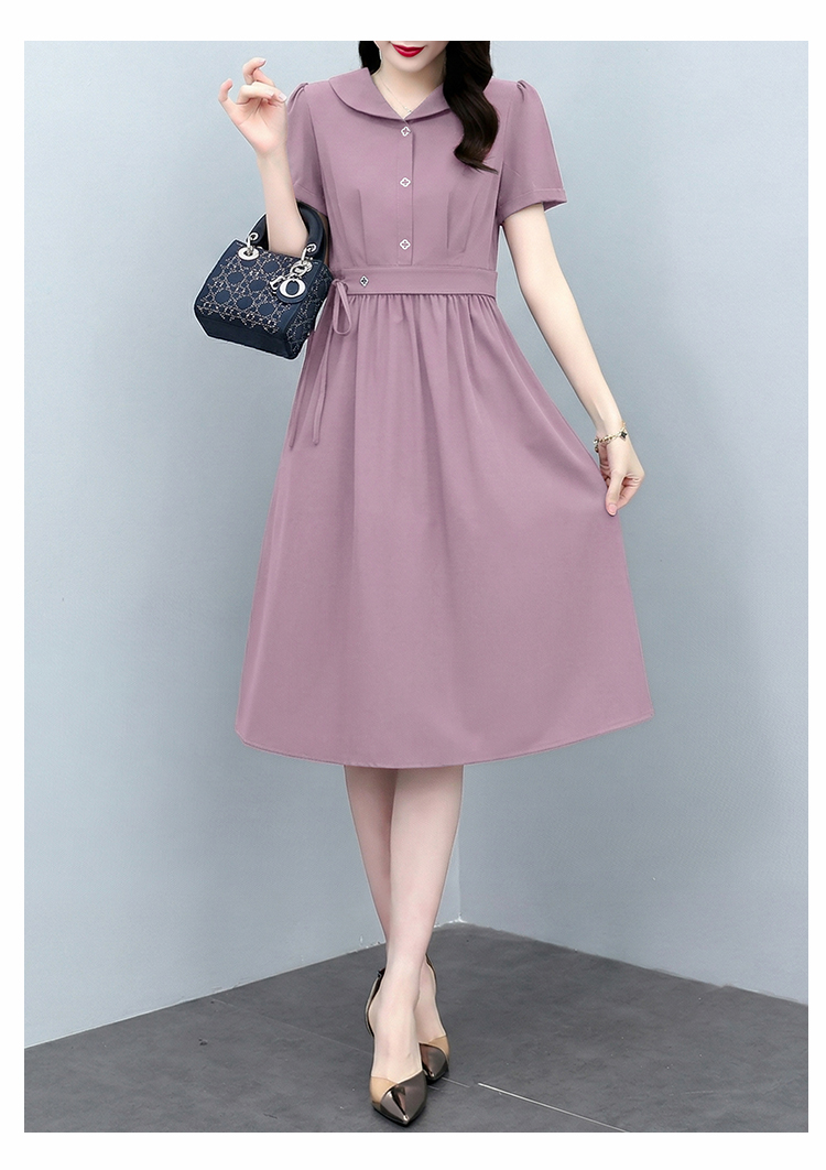 RY2802# 沐沐衣品2026夏季浅色连衣裙显瘦气质洋气时尚收腰短袖减龄中长裙