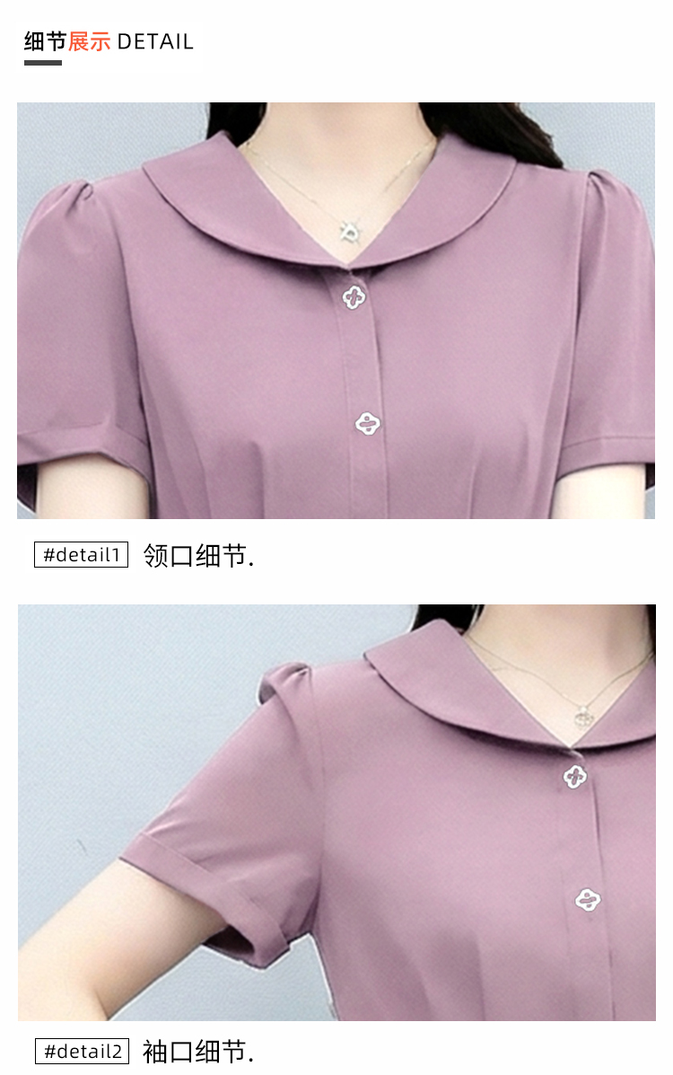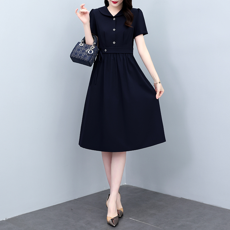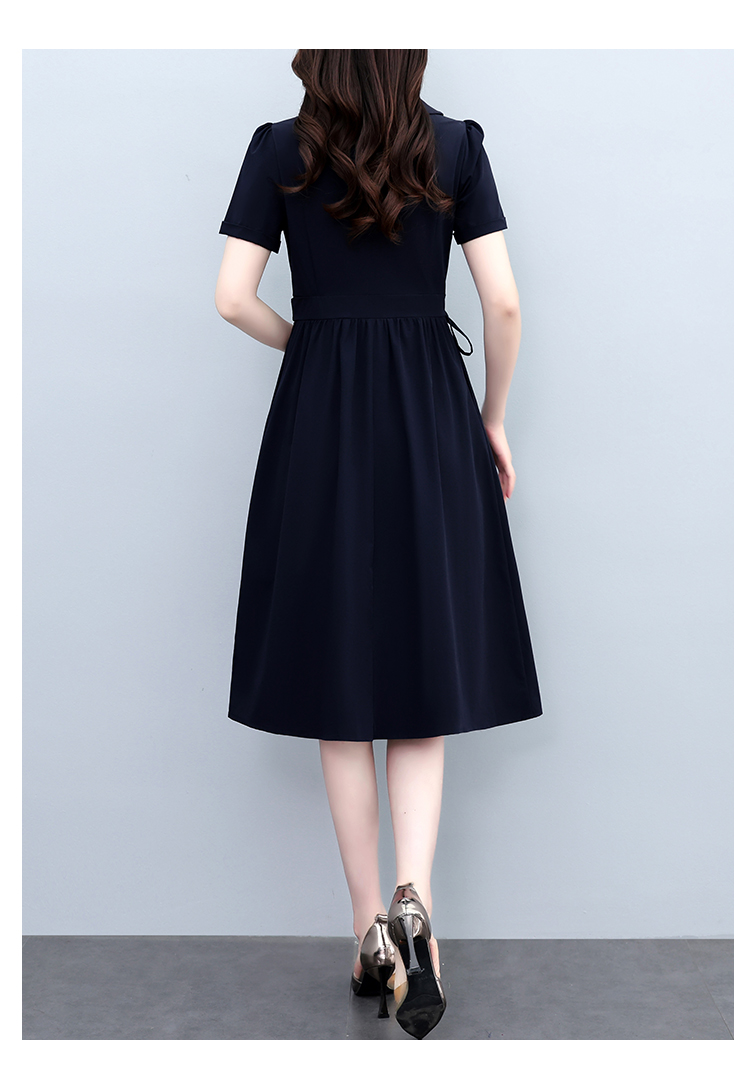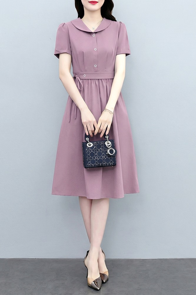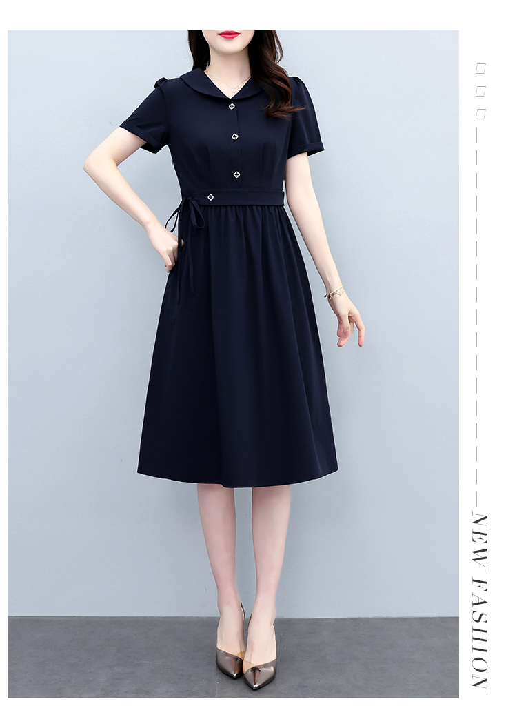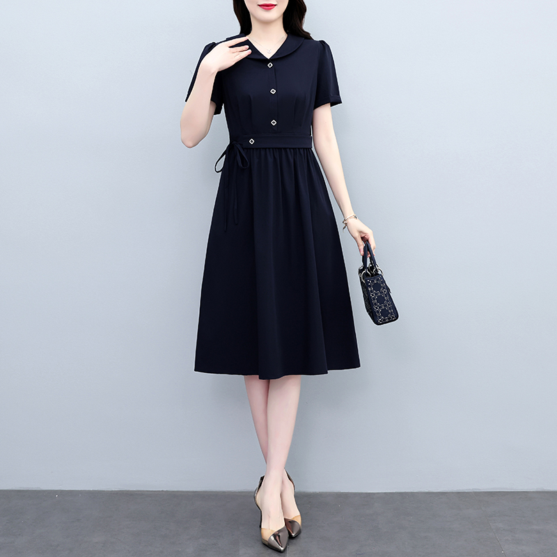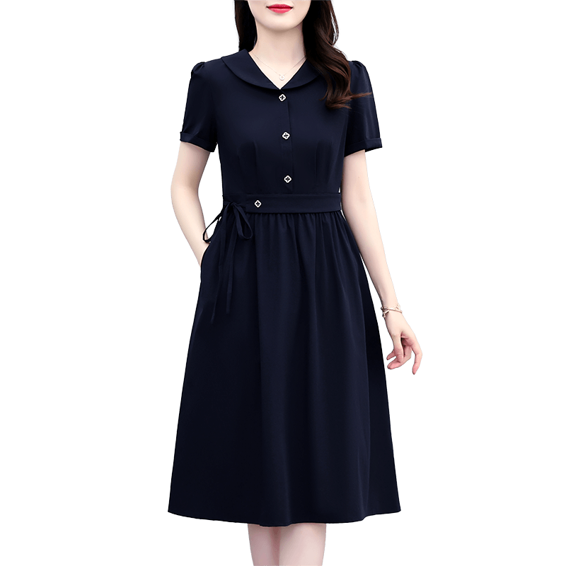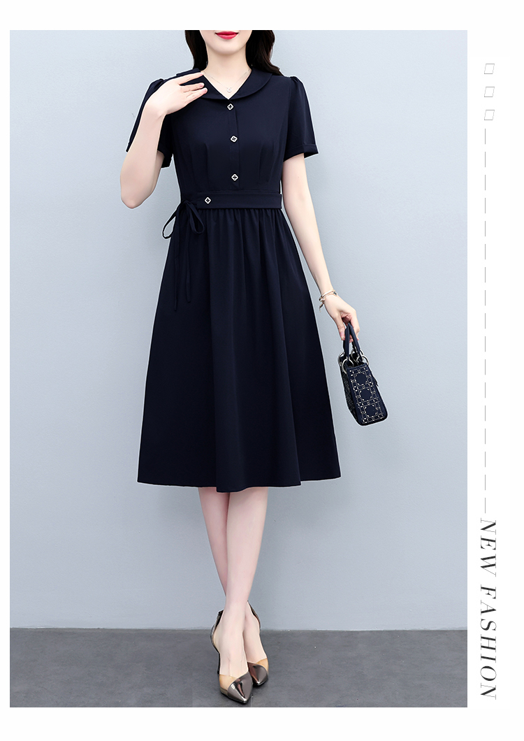 RY2802# 沐沐衣品2026夏季浅色连衣裙显瘦气质洋气时尚收腰短袖减龄中长裙