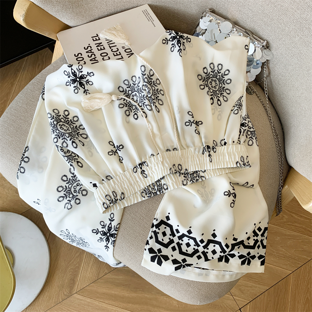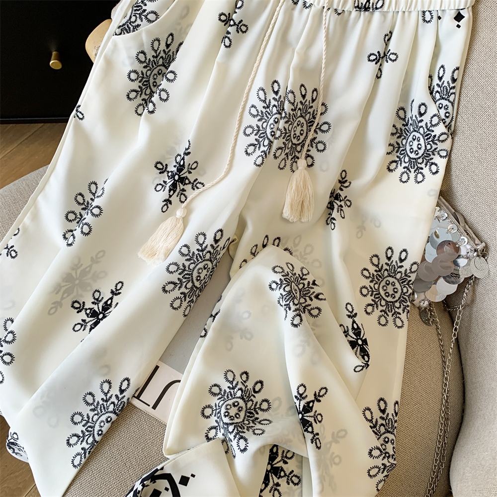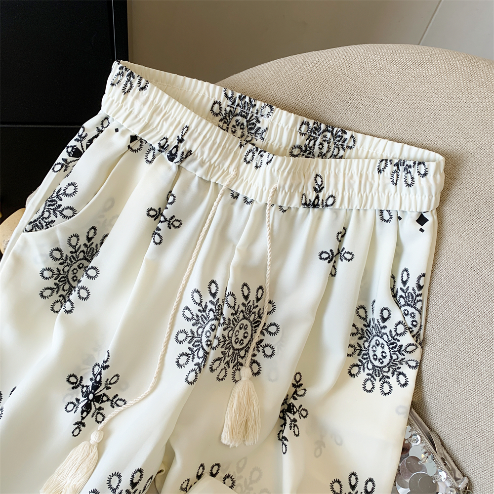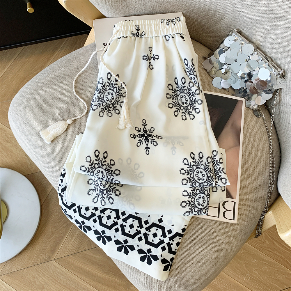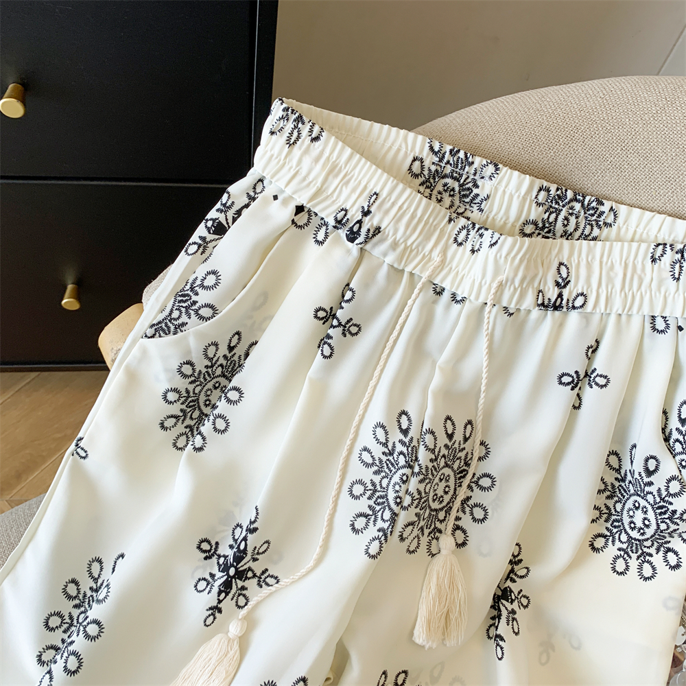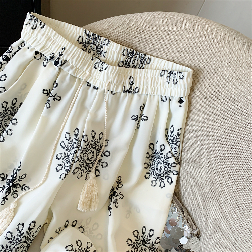 RY2804# 实拍 新款民族风复古碎花阔腿裤裙女夏季薄款高腰宽松显瘦直筒裤