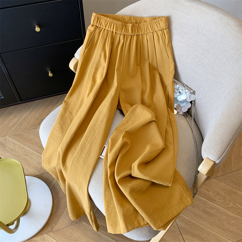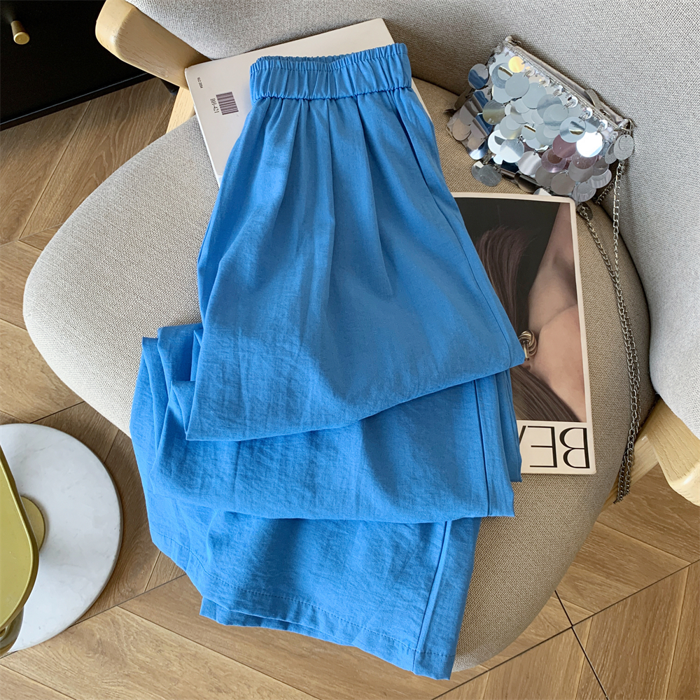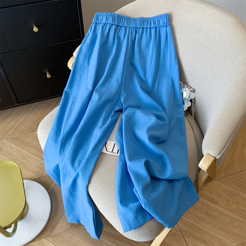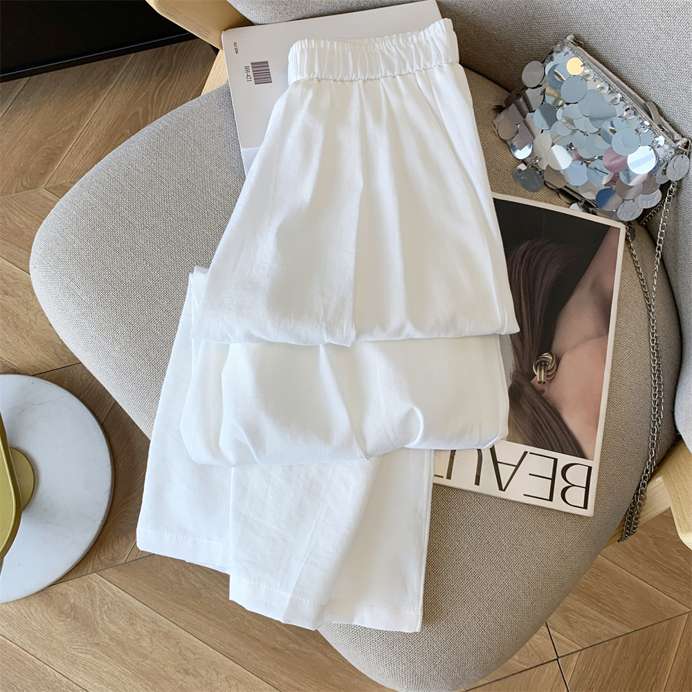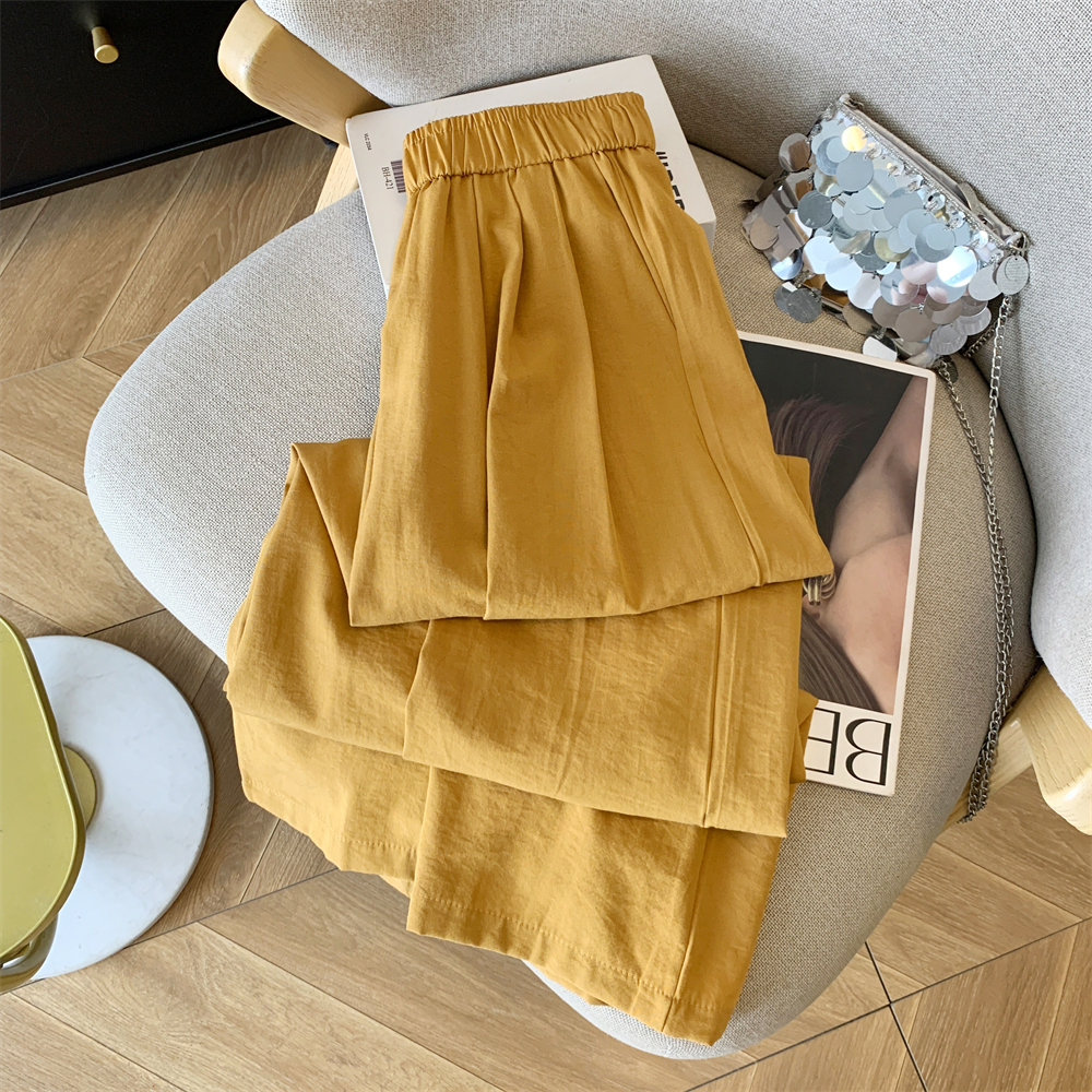 RY2805# 实拍 新款亚麻阔腿裤夏季薄款宽松显瘦休闲直筒松紧高腰简约长裤