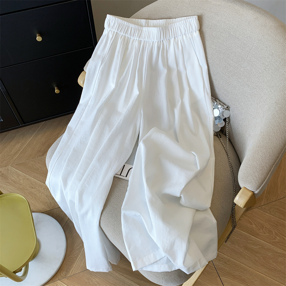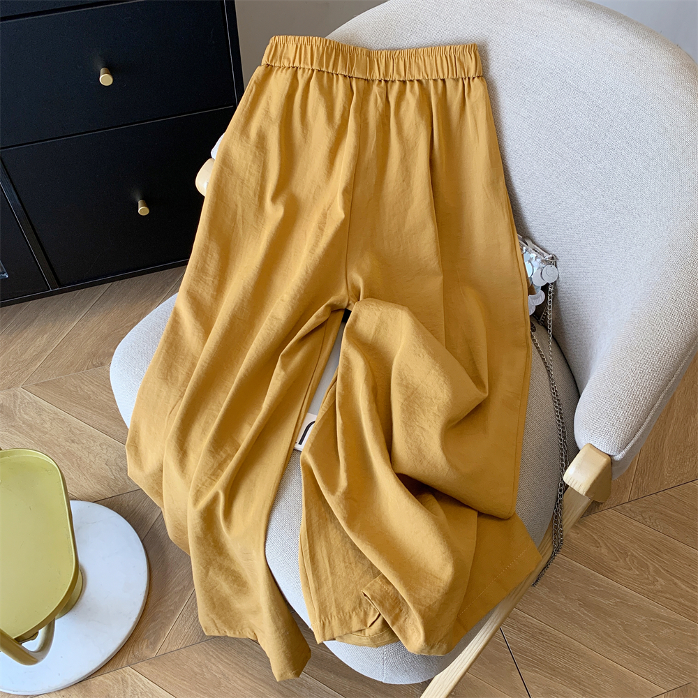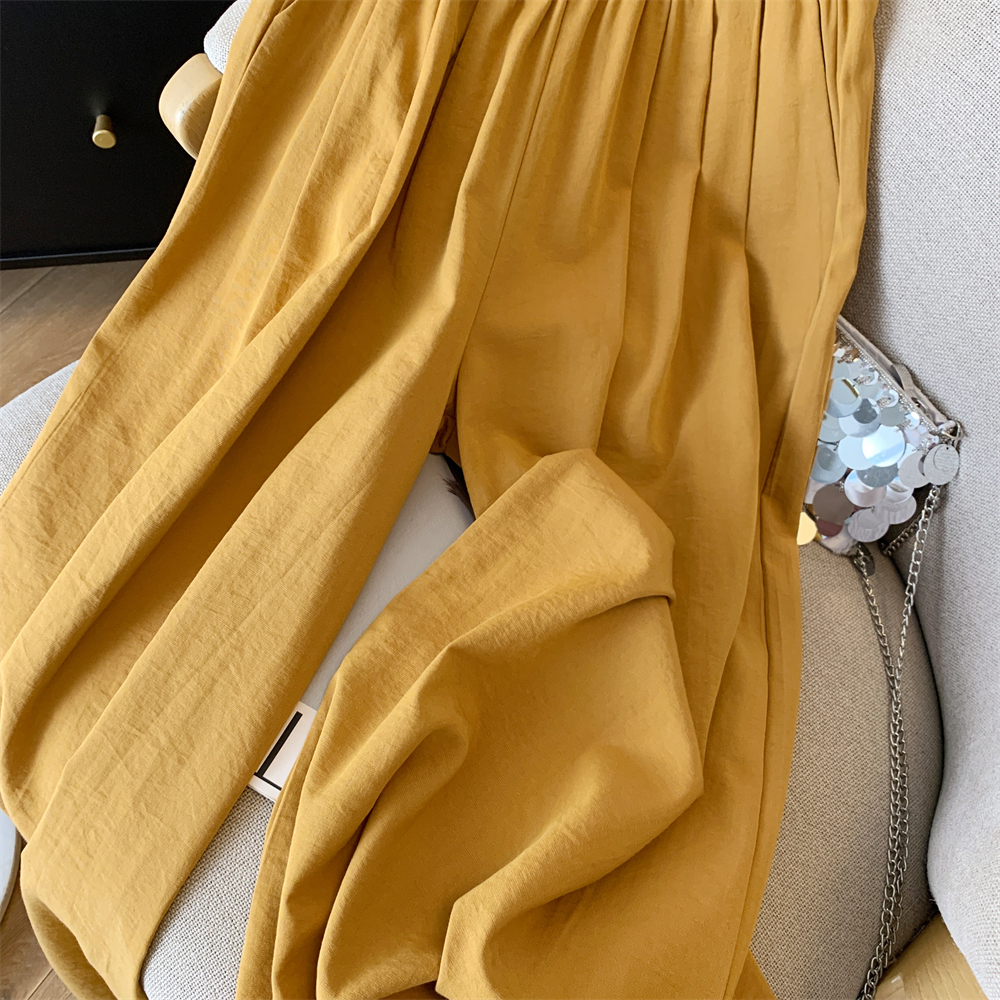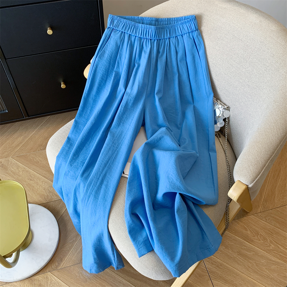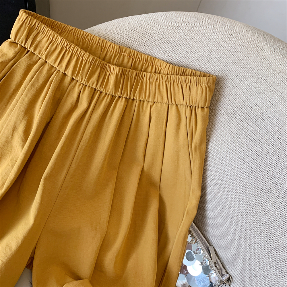 RY2805# 实拍 新款亚麻阔腿裤夏季薄款宽松显瘦休闲直筒松紧高腰简约长裤