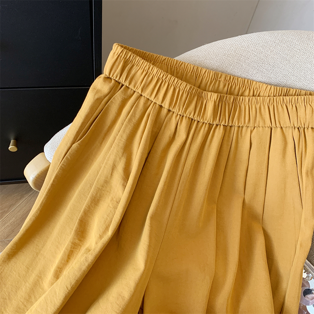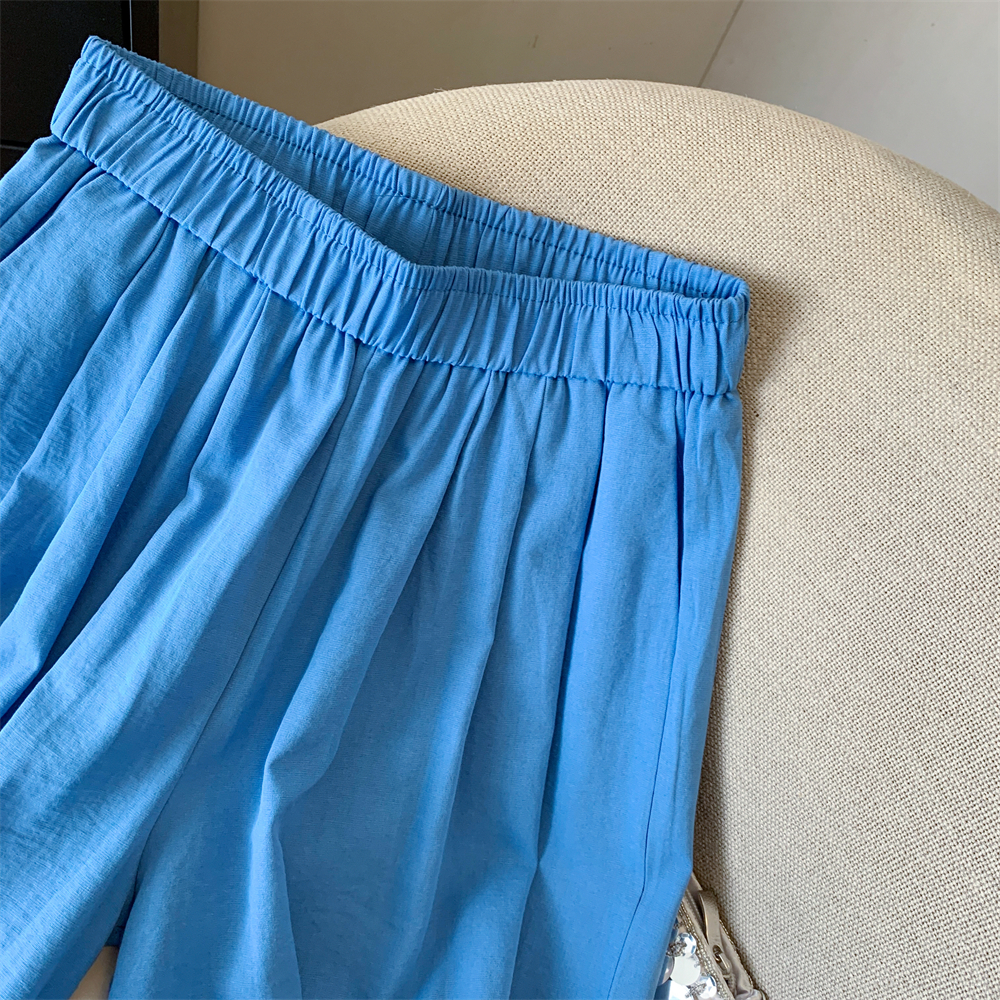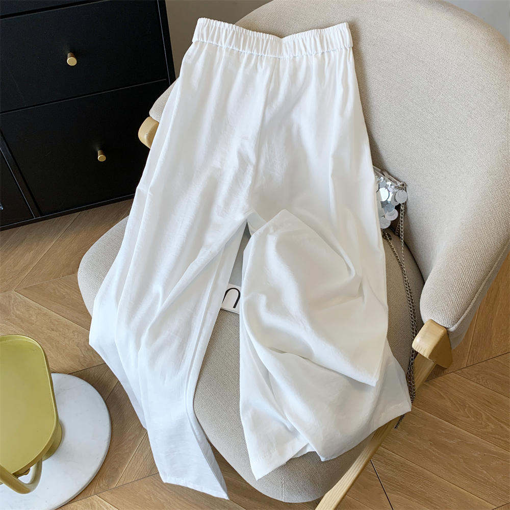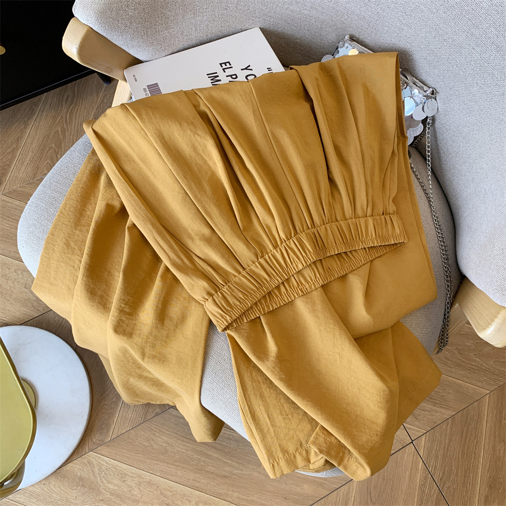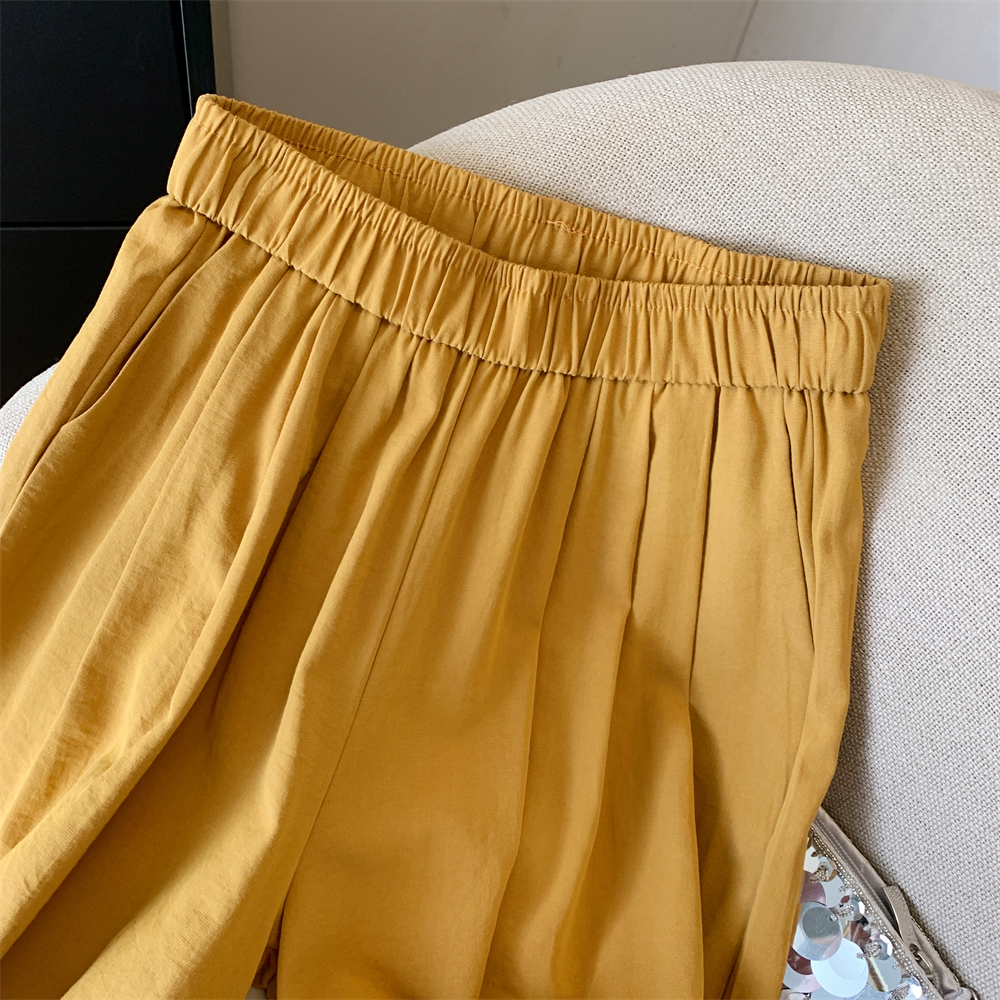 RY2805# 实拍 新款亚麻阔腿裤夏季薄款宽松显瘦休闲直筒松紧高腰简约长裤
