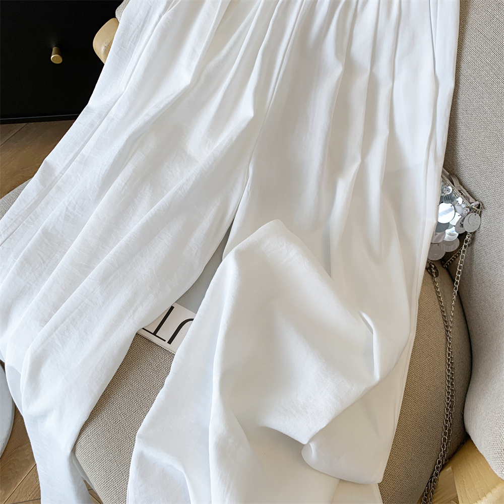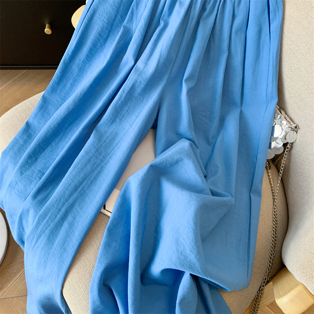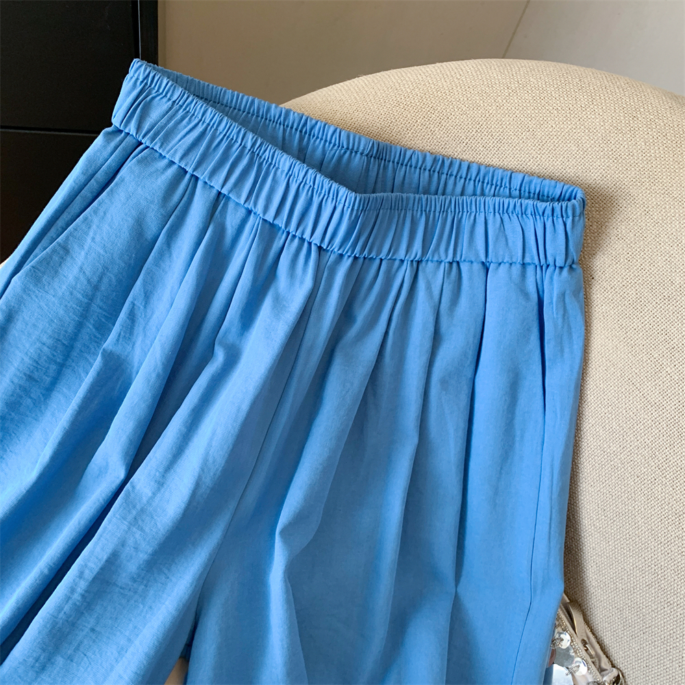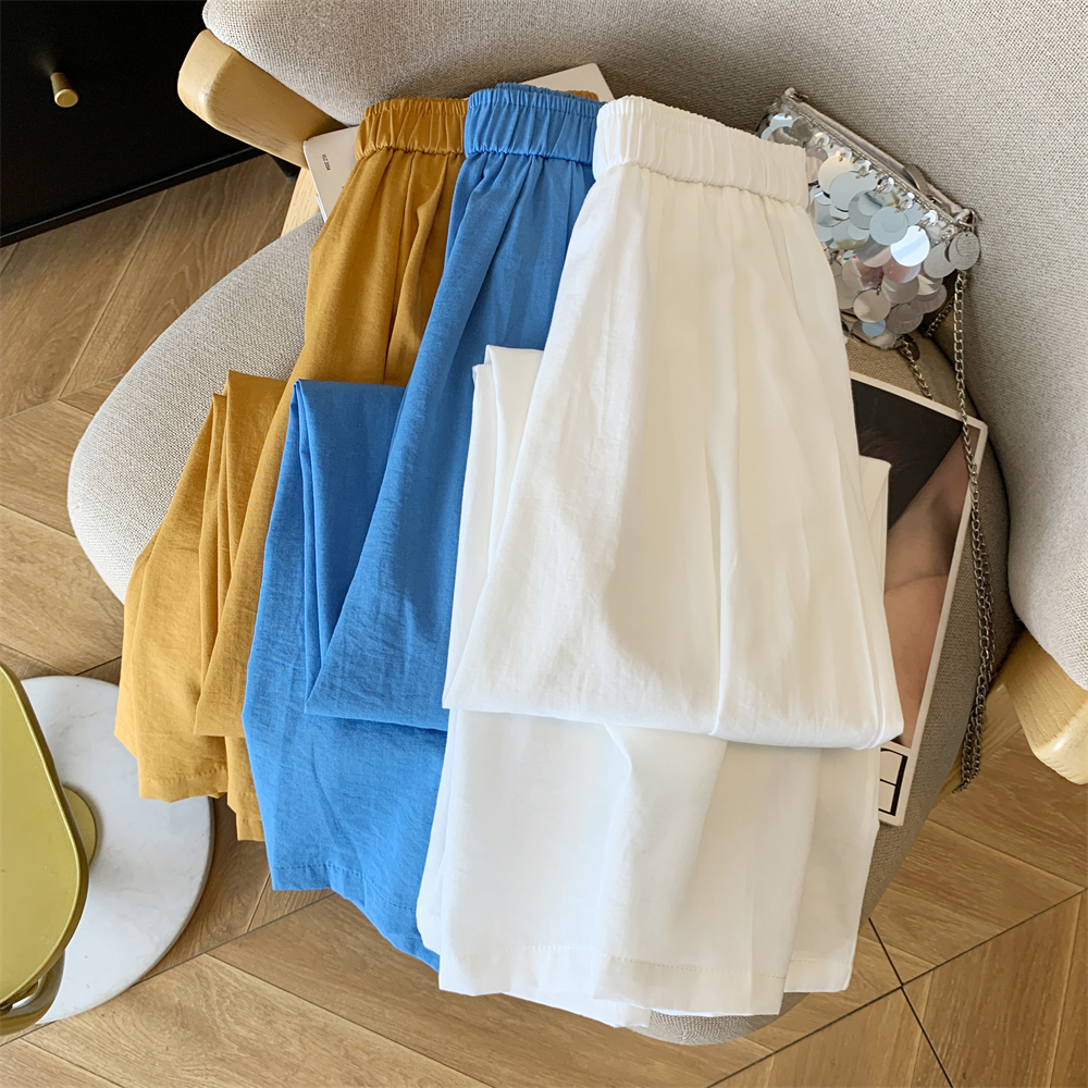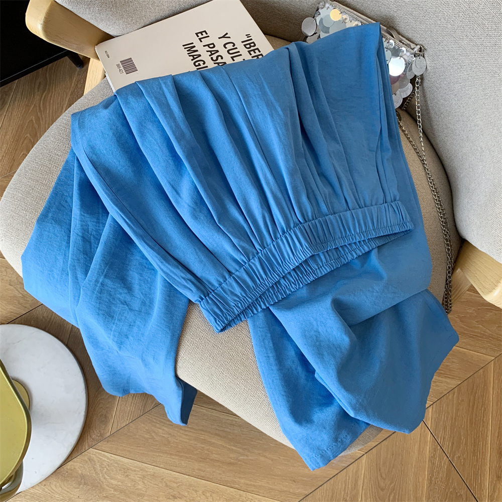 RY2805# 实拍 新款亚麻阔腿裤夏季薄款宽松显瘦休闲直筒松紧高腰简约长裤