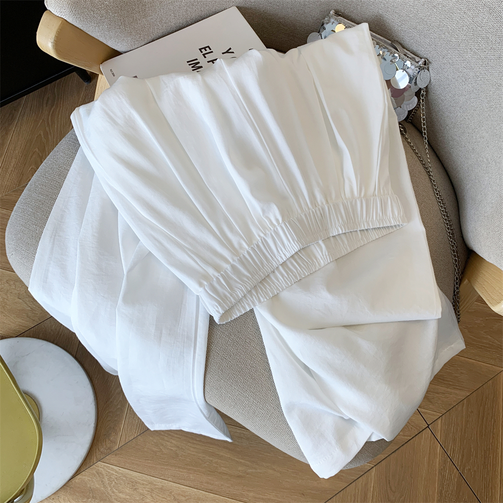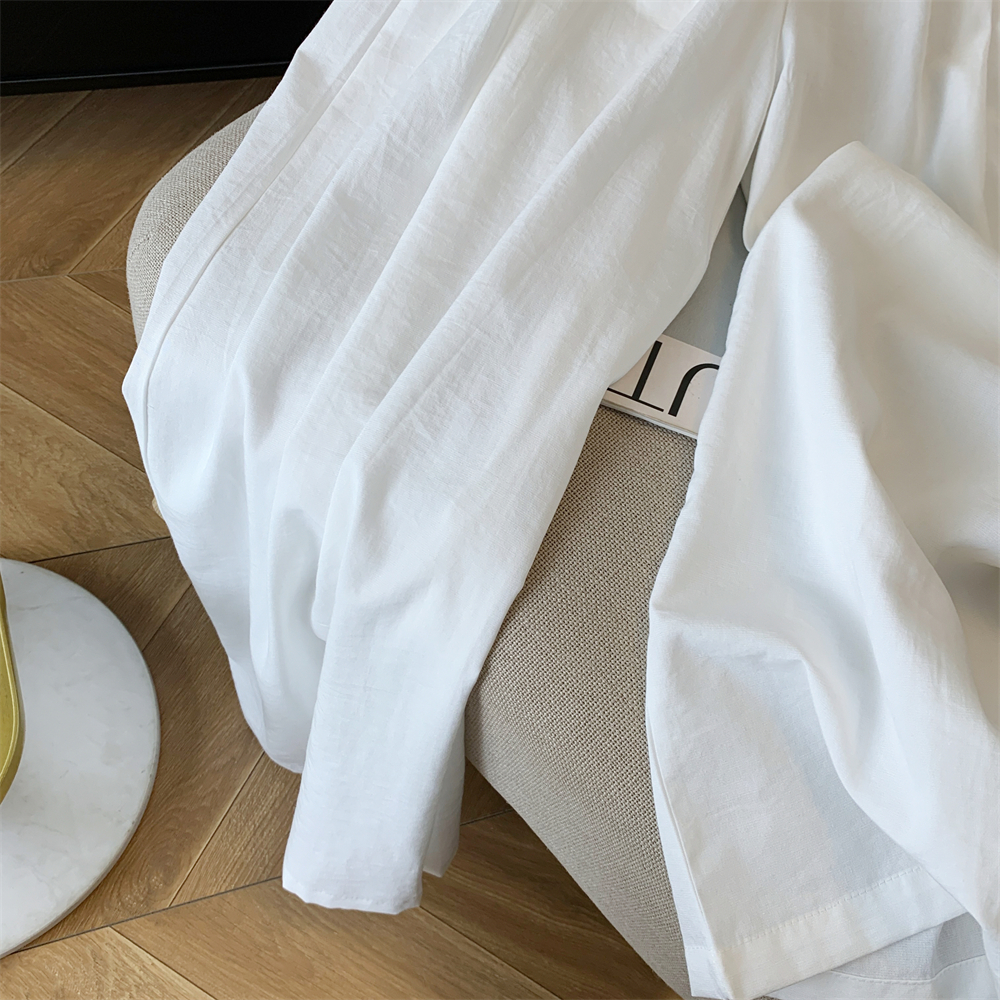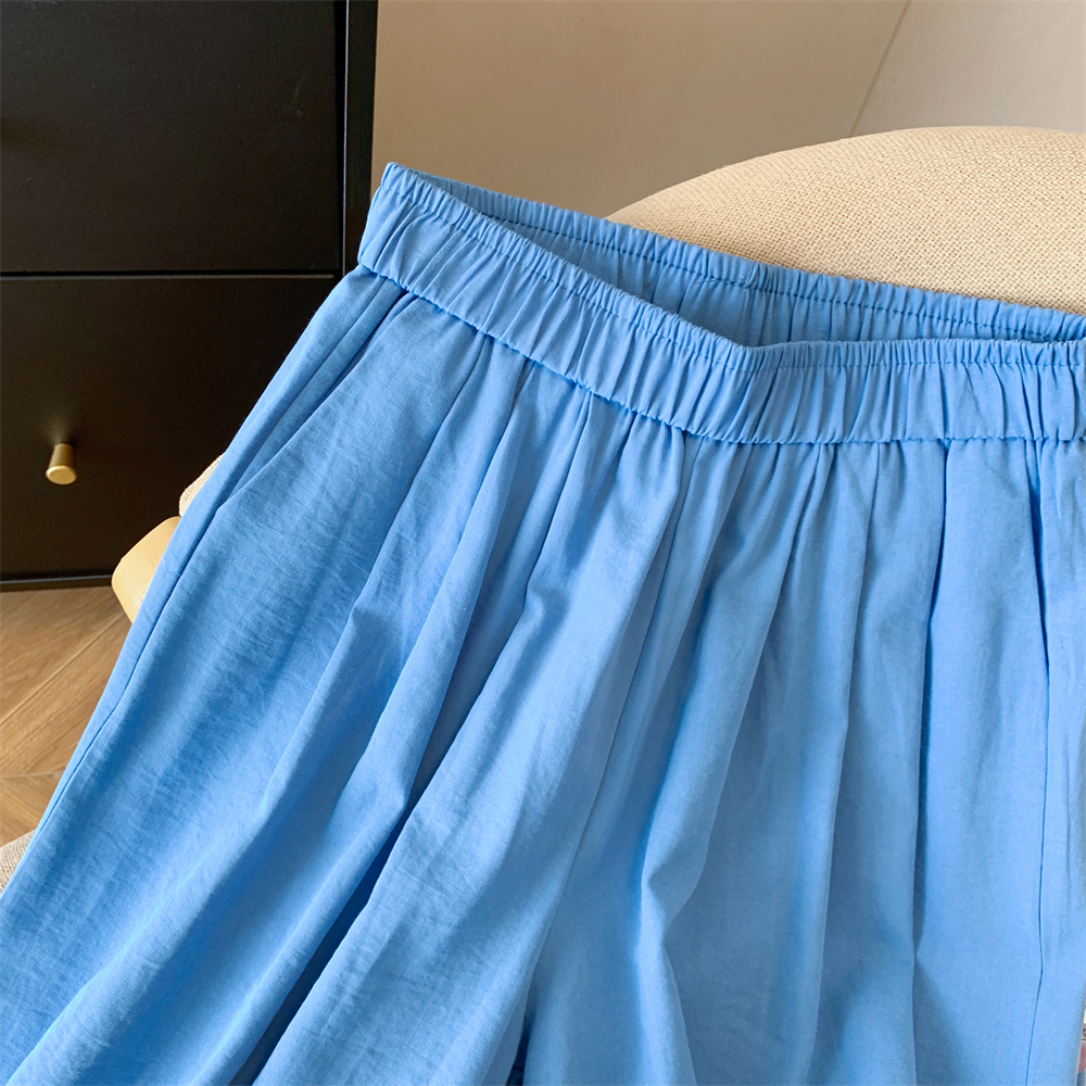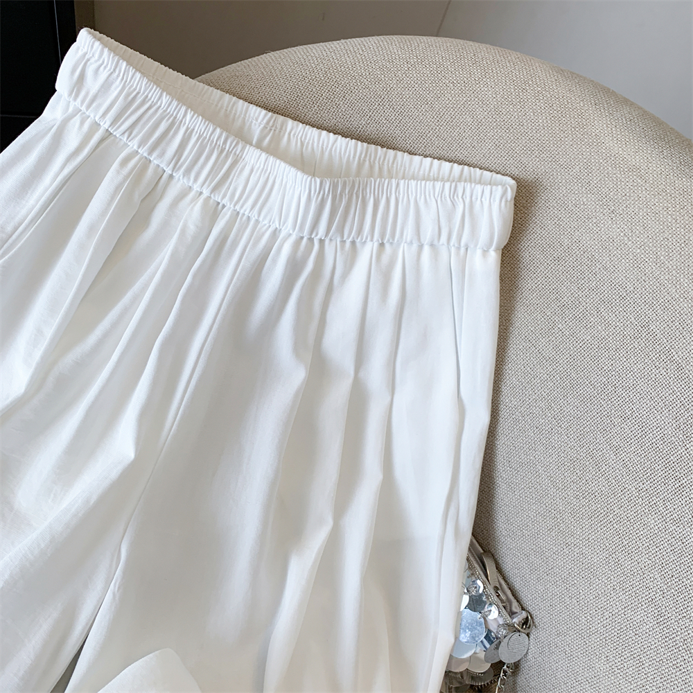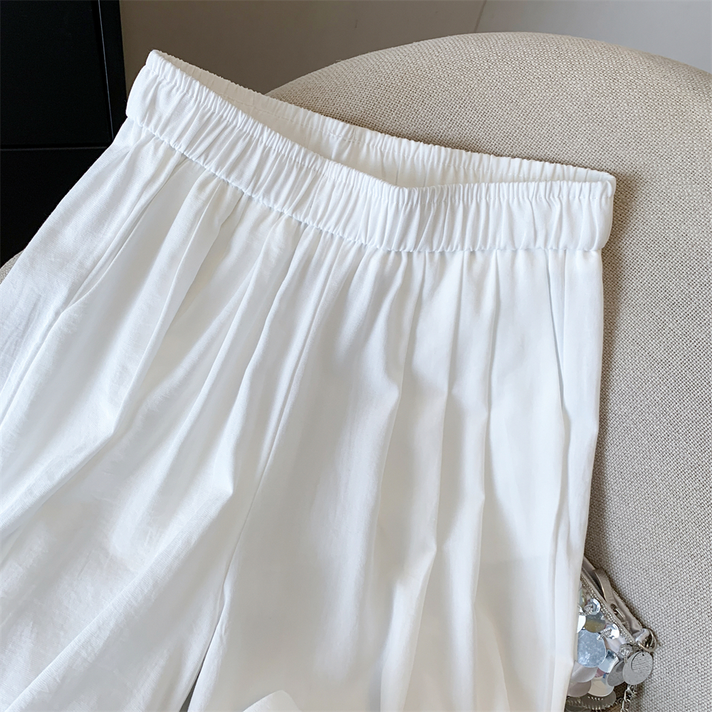 RY2814# 实拍蕾丝系带拼接洗水棉西装阔腿裤女夏季高腰宽松九分休闲直筒...