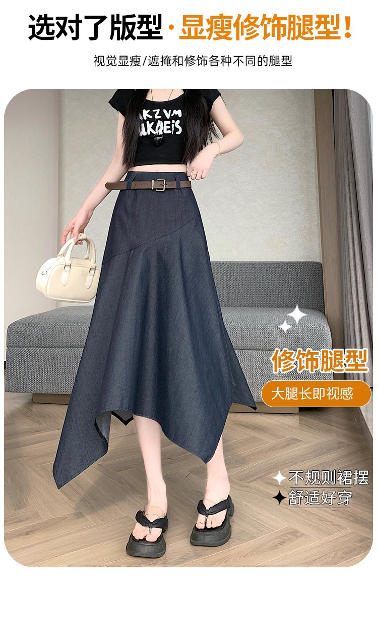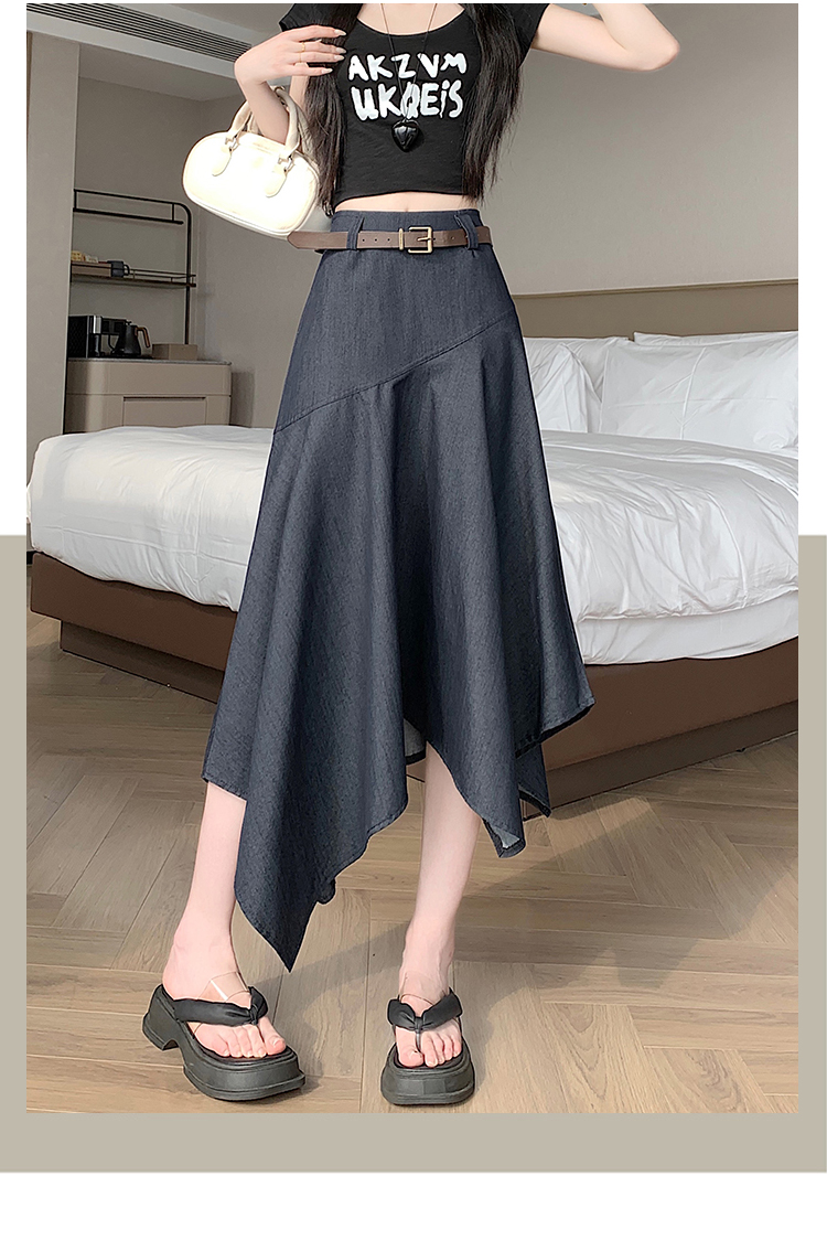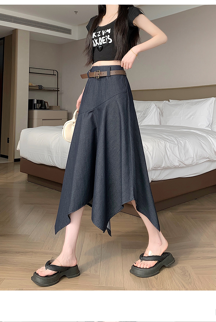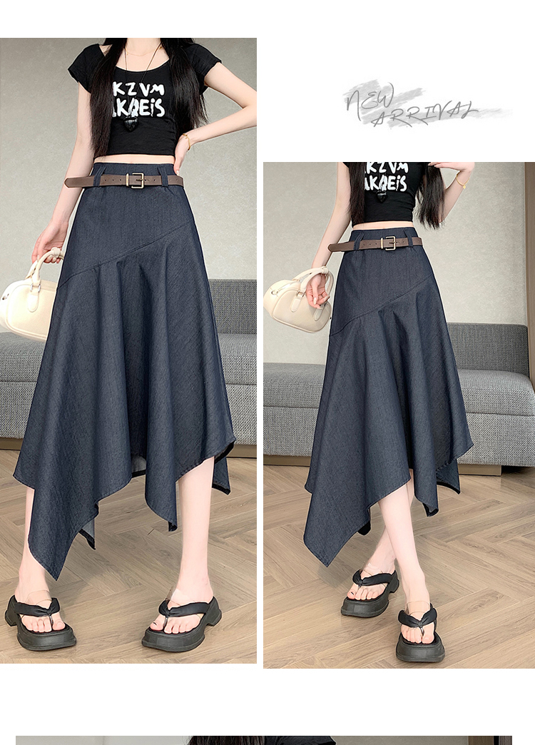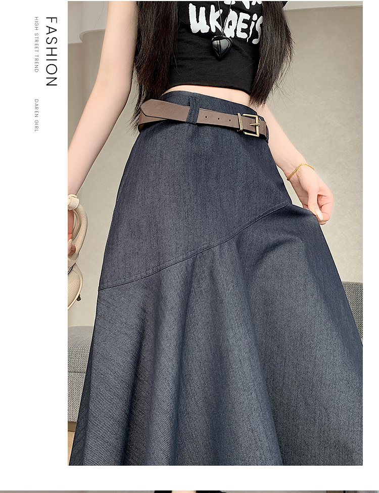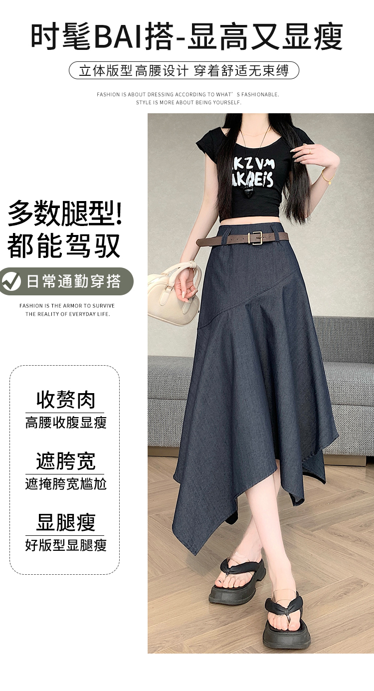 RY2808# 实拍 2026夏美式复古不规则腰带设计仿牛仔遮胯显瘦a字半身裙中裙