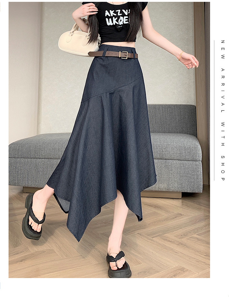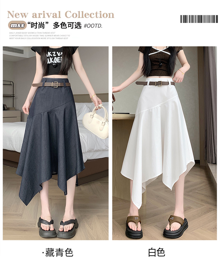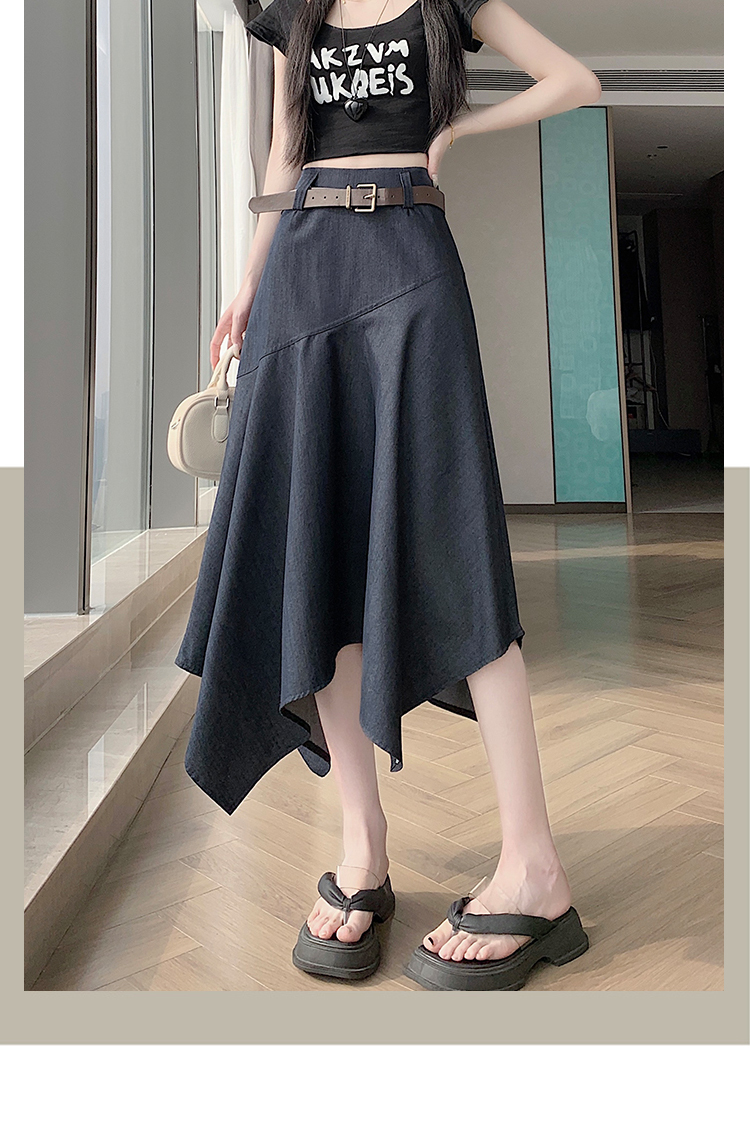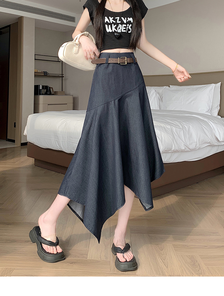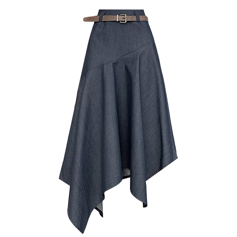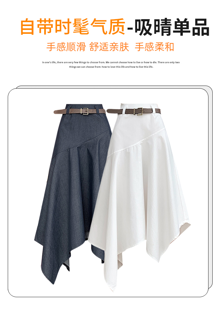 RY2808# 实拍 2026夏美式复古不规则腰带设计仿牛仔遮胯显瘦a字半身裙中裙