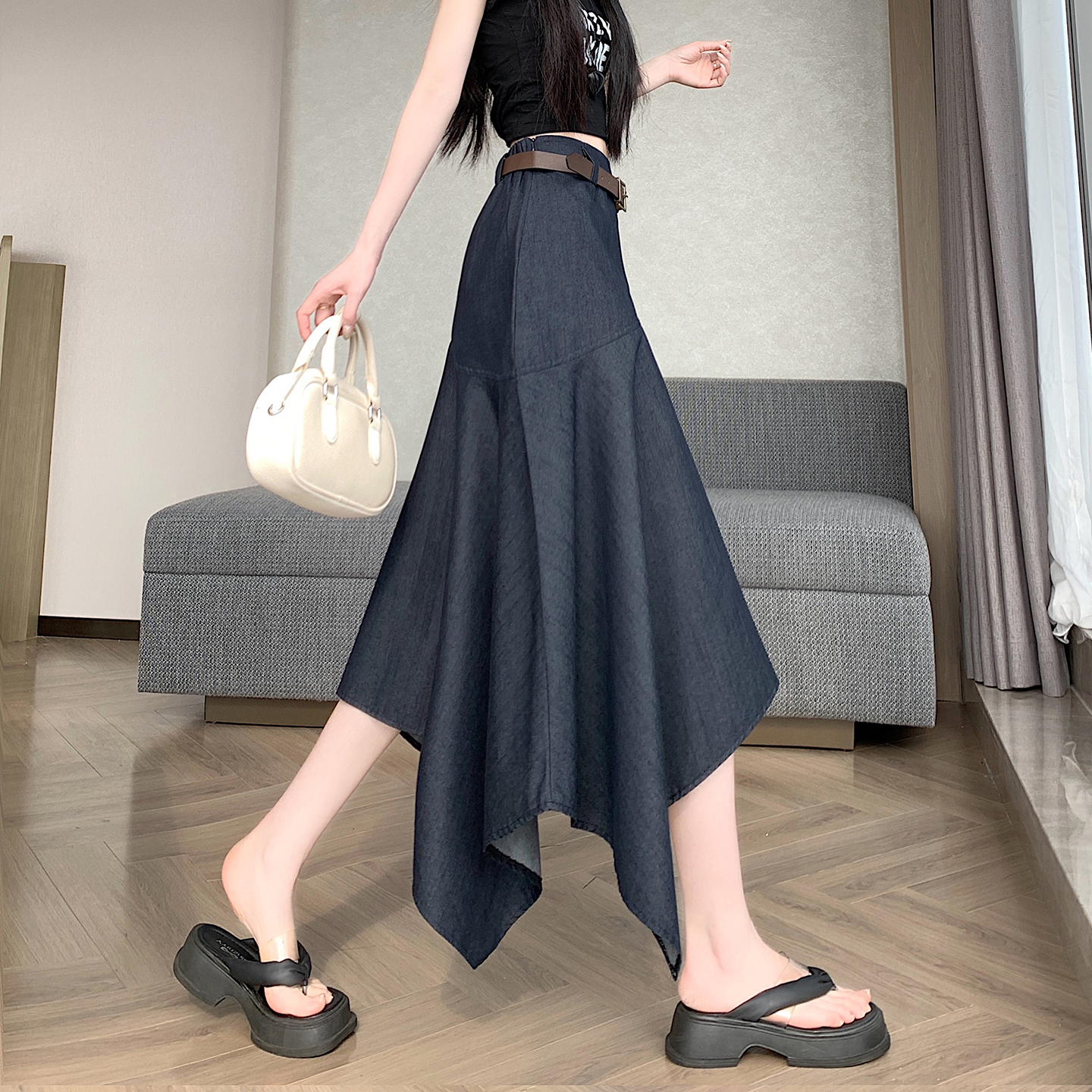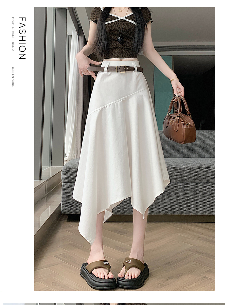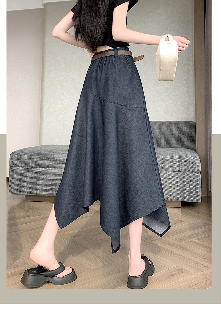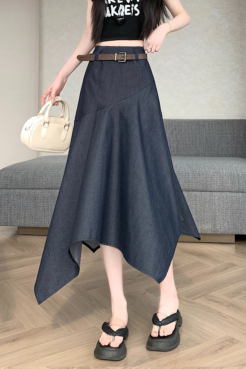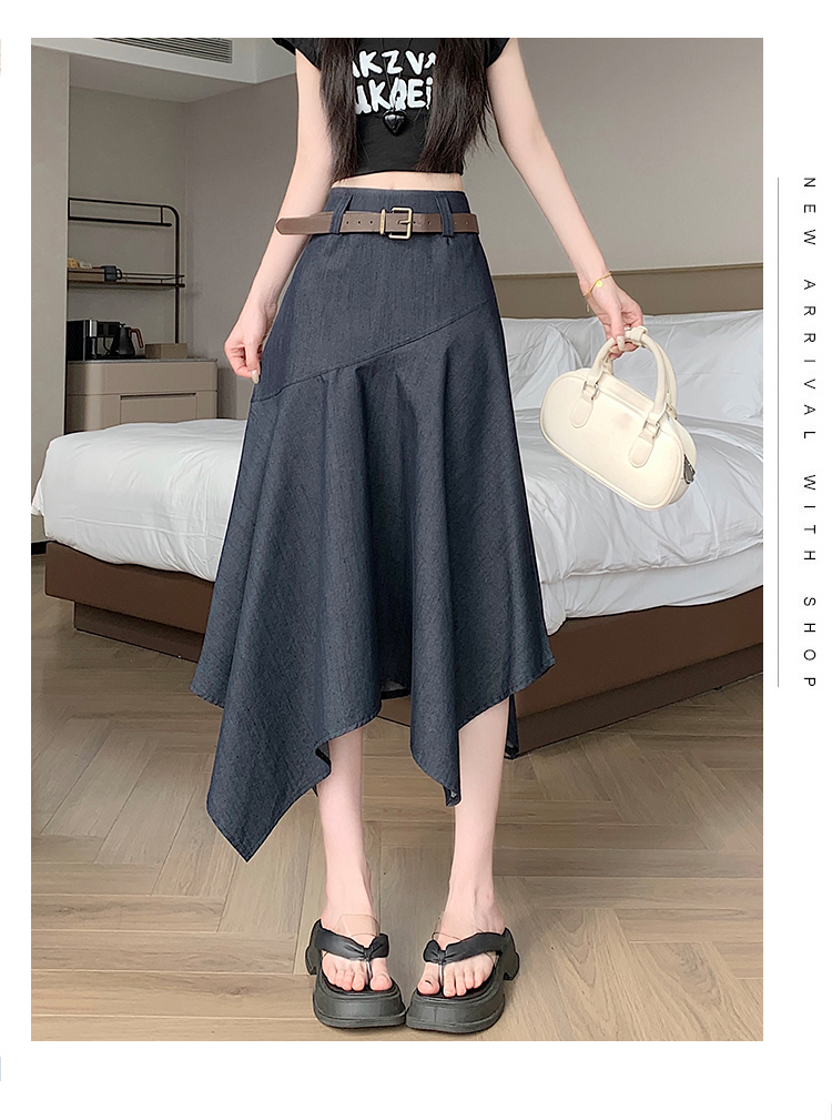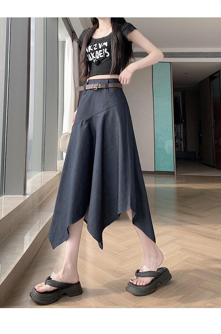 RY2808# 实拍 2026夏美式复古不规则腰带设计仿牛仔遮胯显瘦a字半身裙中裙