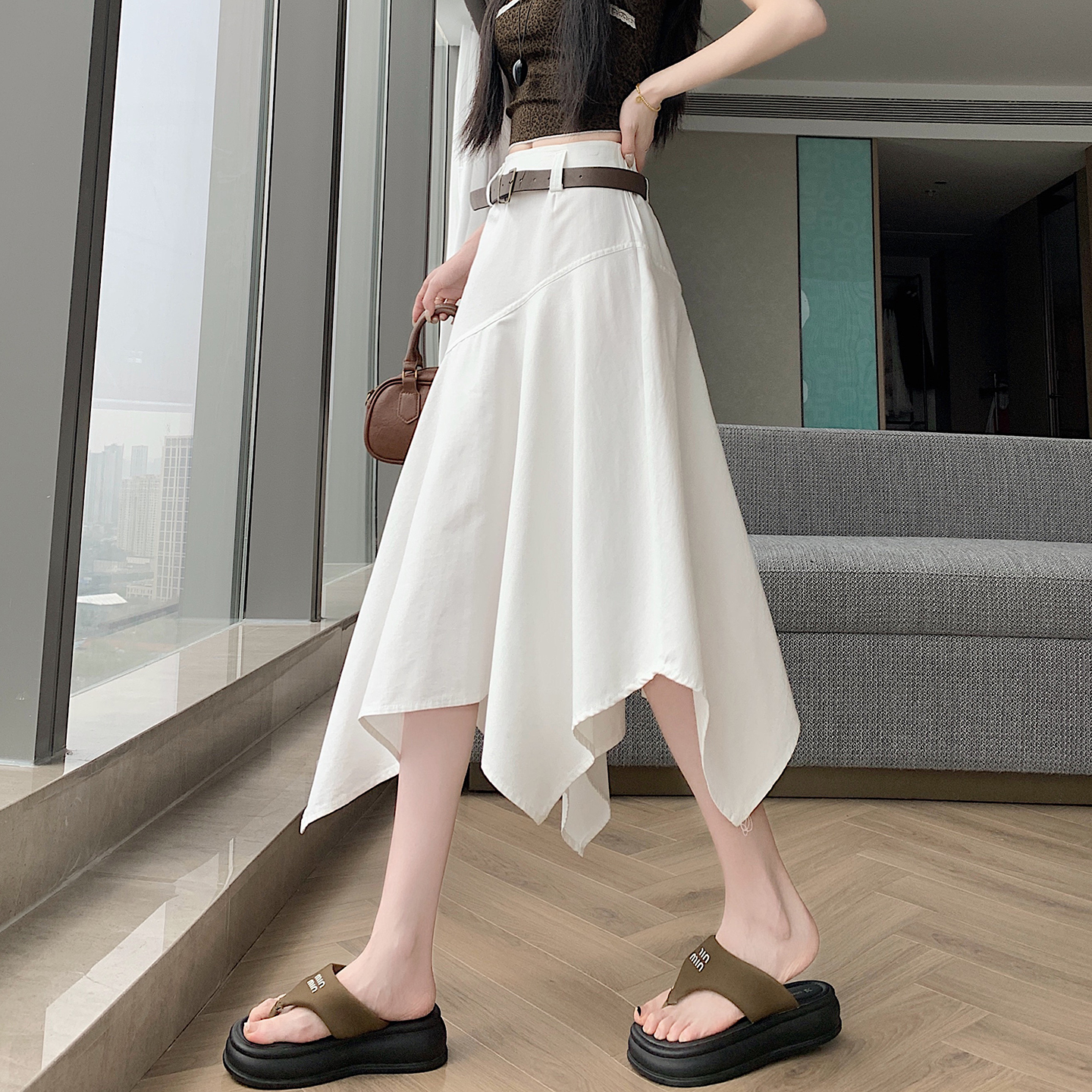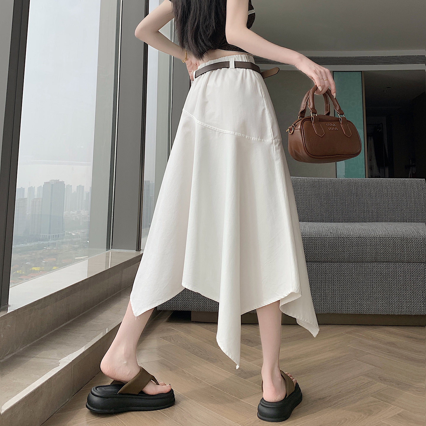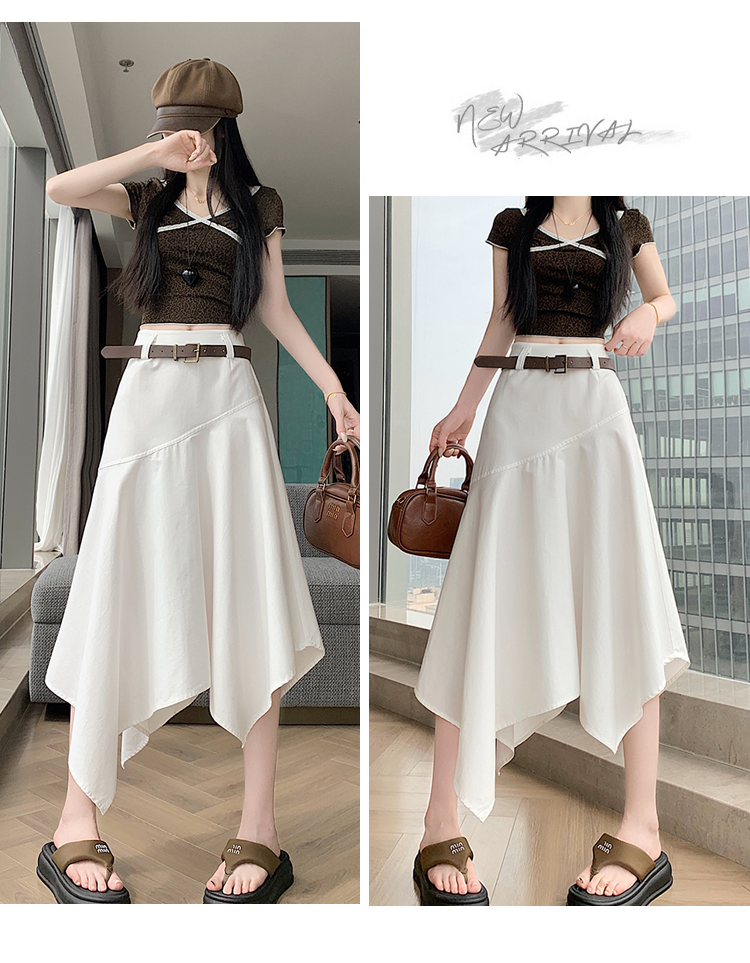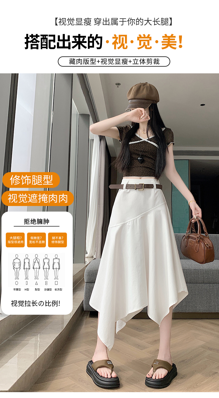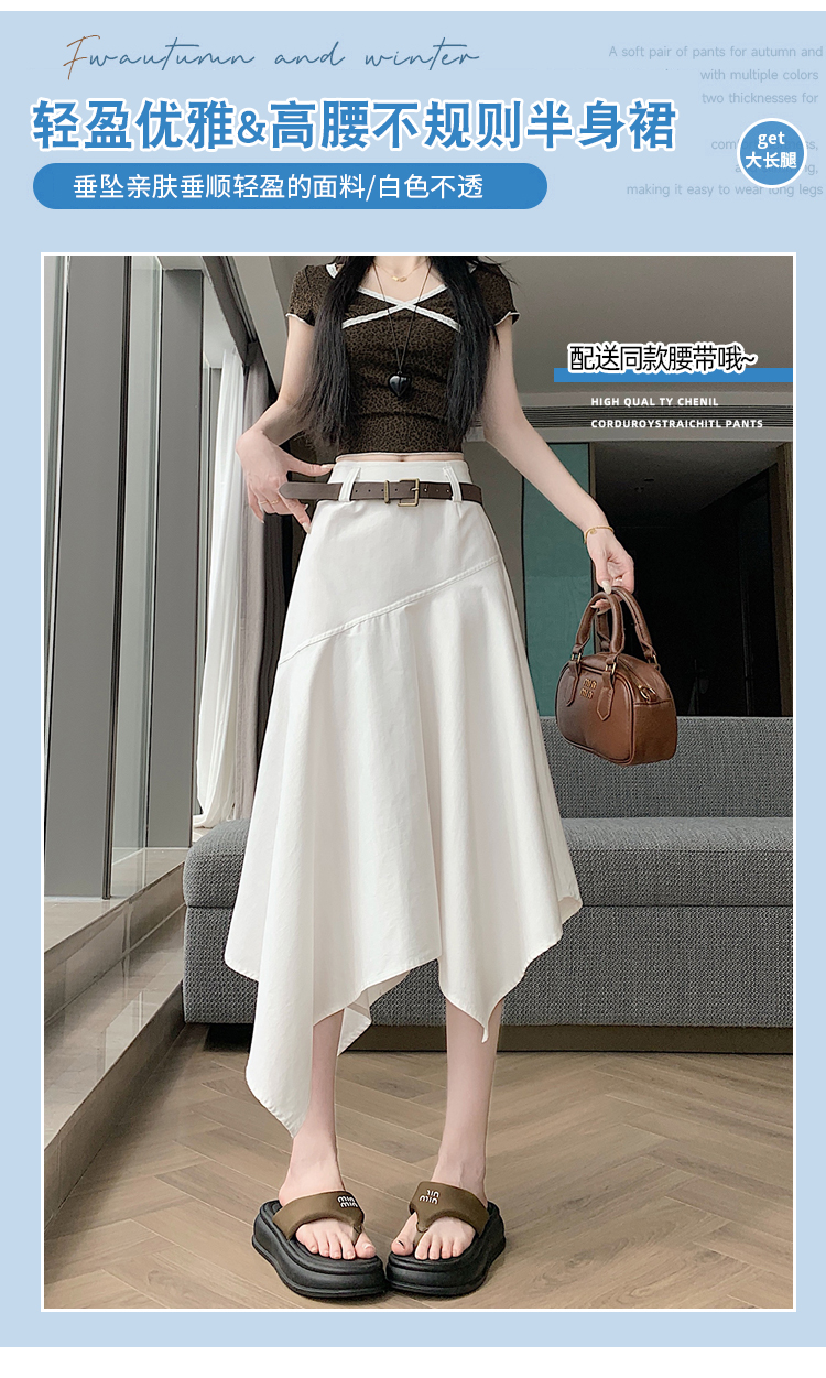 RY2808# 实拍 2026夏美式复古不规则腰带设计仿牛仔遮胯显瘦a字半身裙中裙