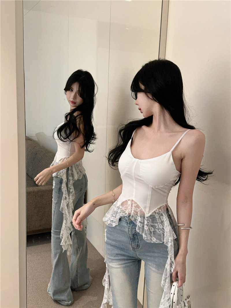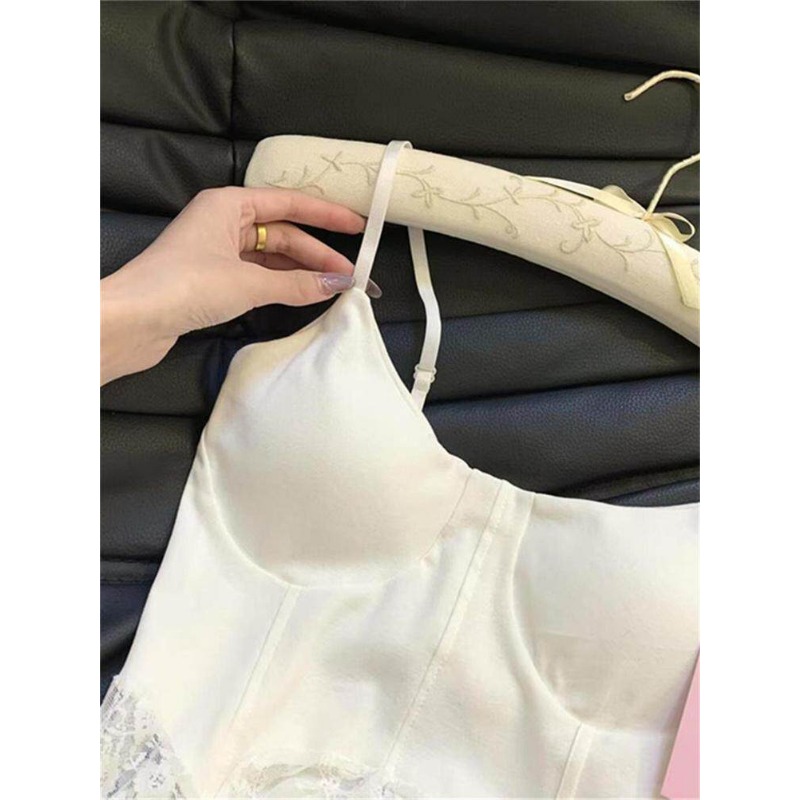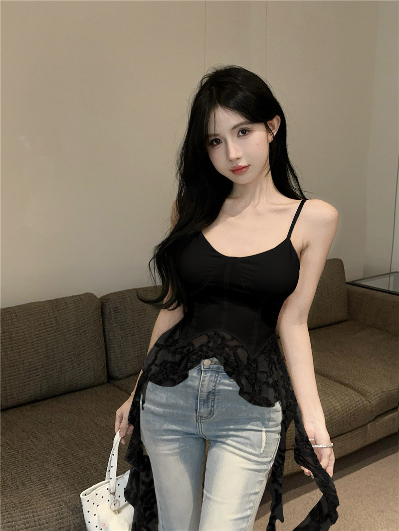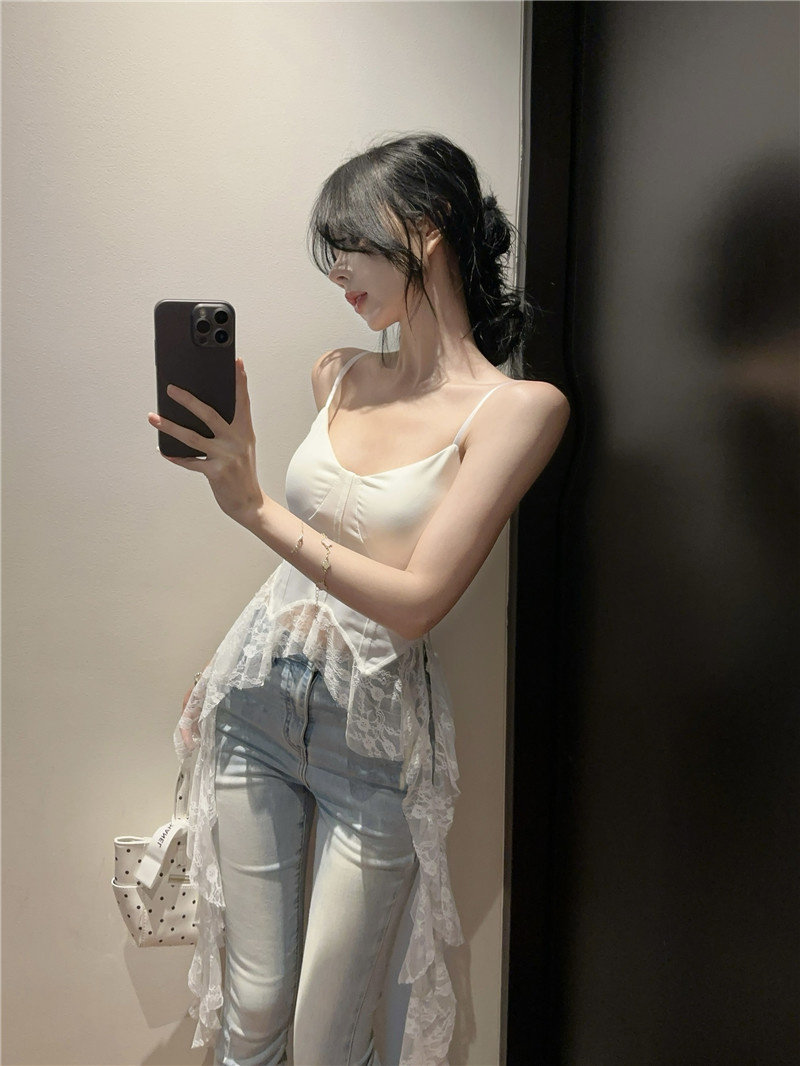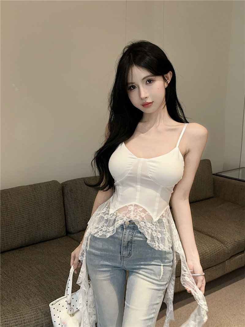 RY2811# 独特绝美白色不规则蕾丝下摆吊带背心带胸垫女内搭打底小上衣