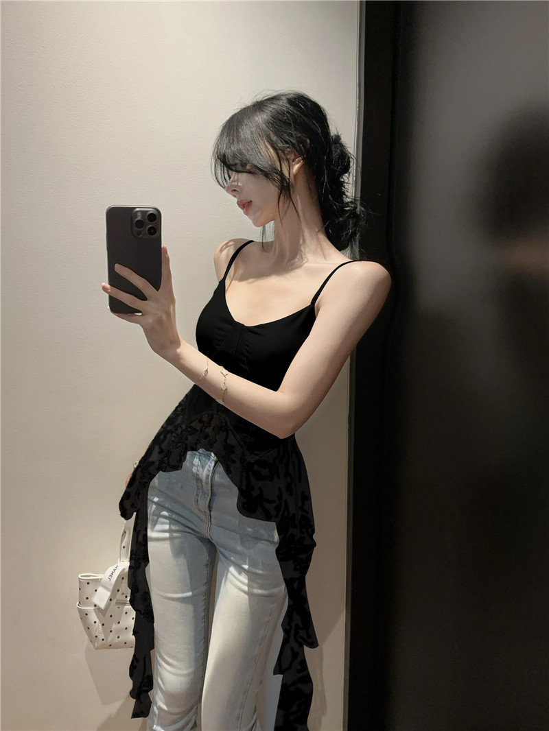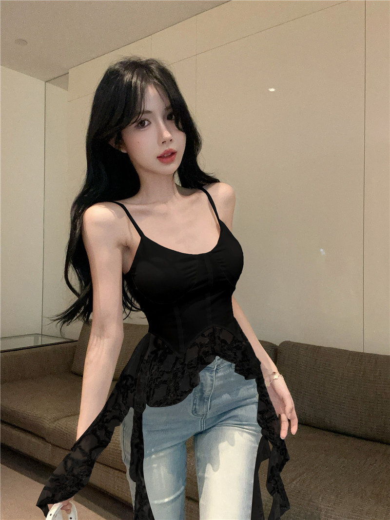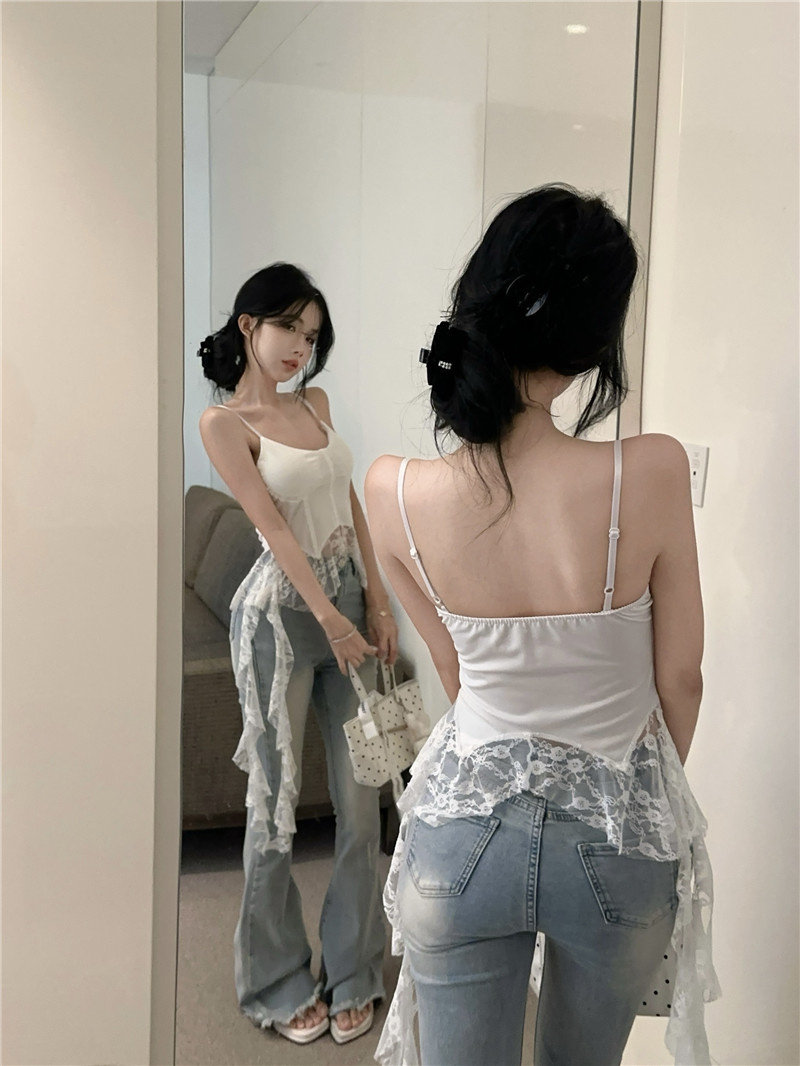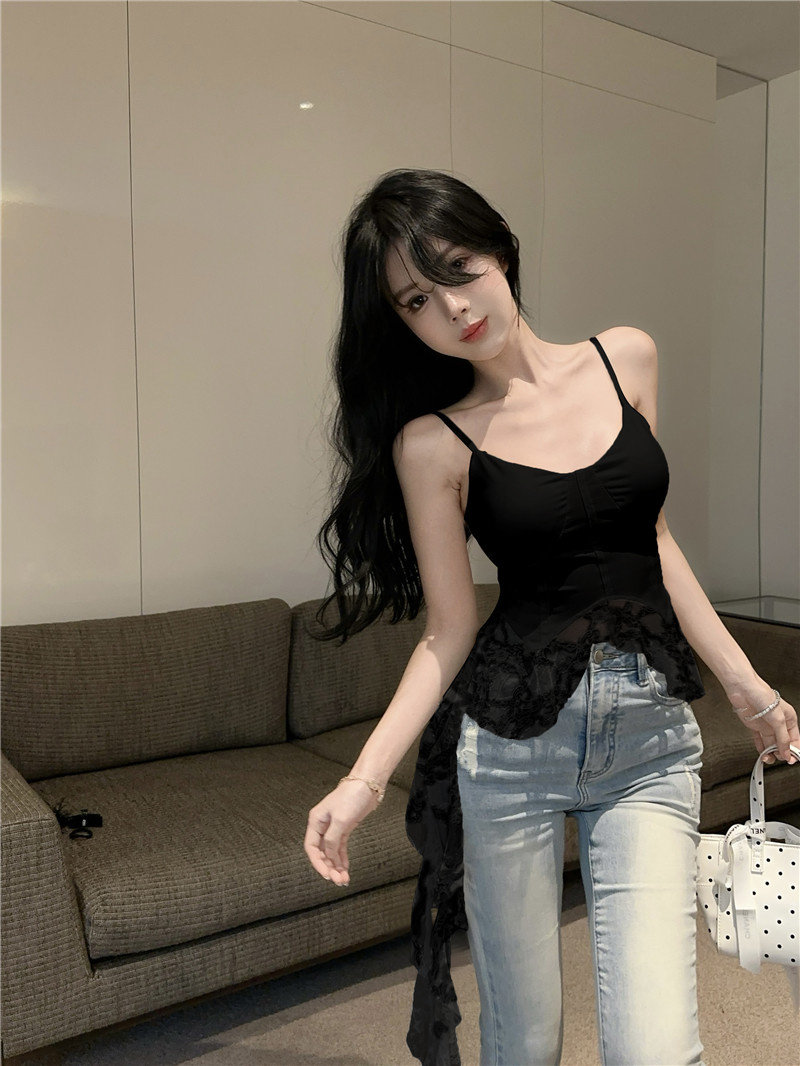 RY2811# 独特绝美白色不规则蕾丝下摆吊带背心带胸垫女内搭打底小上衣