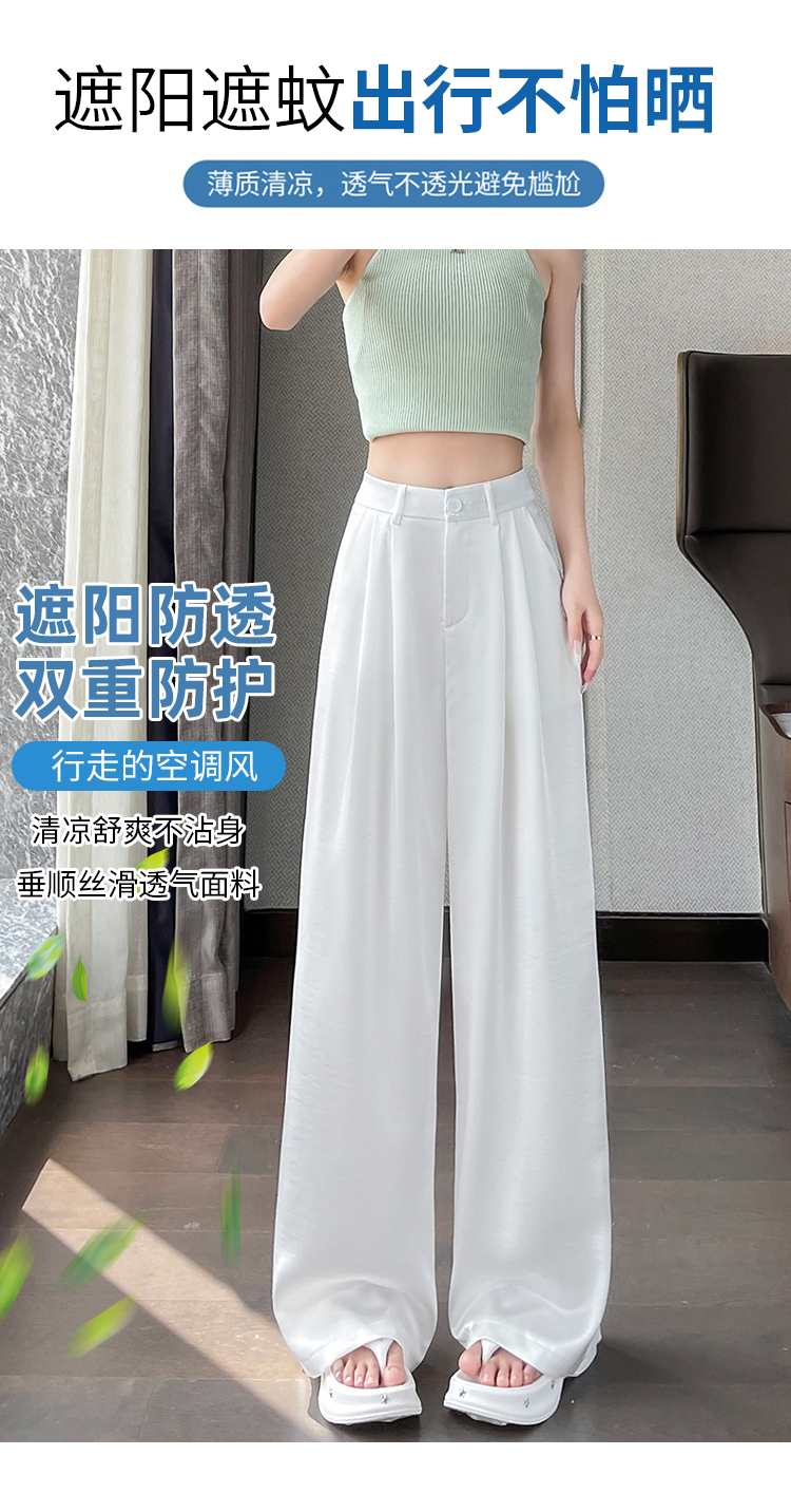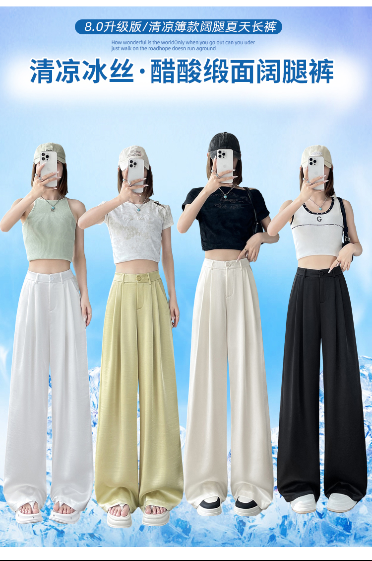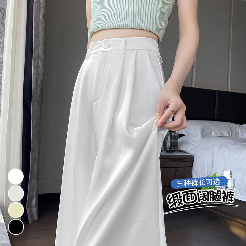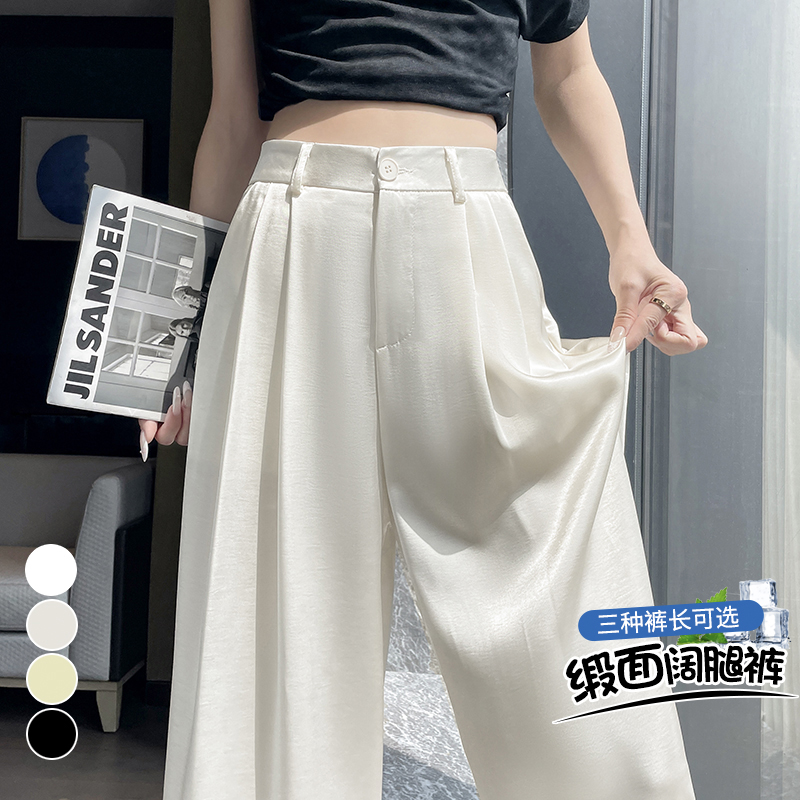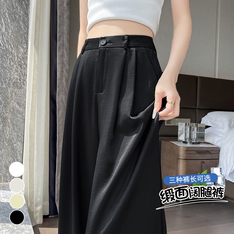 RY2812# 实拍 冰丝醋酸缎面阔腿裤女2026夏季高腰防晒休闲直筒拖地西装裤