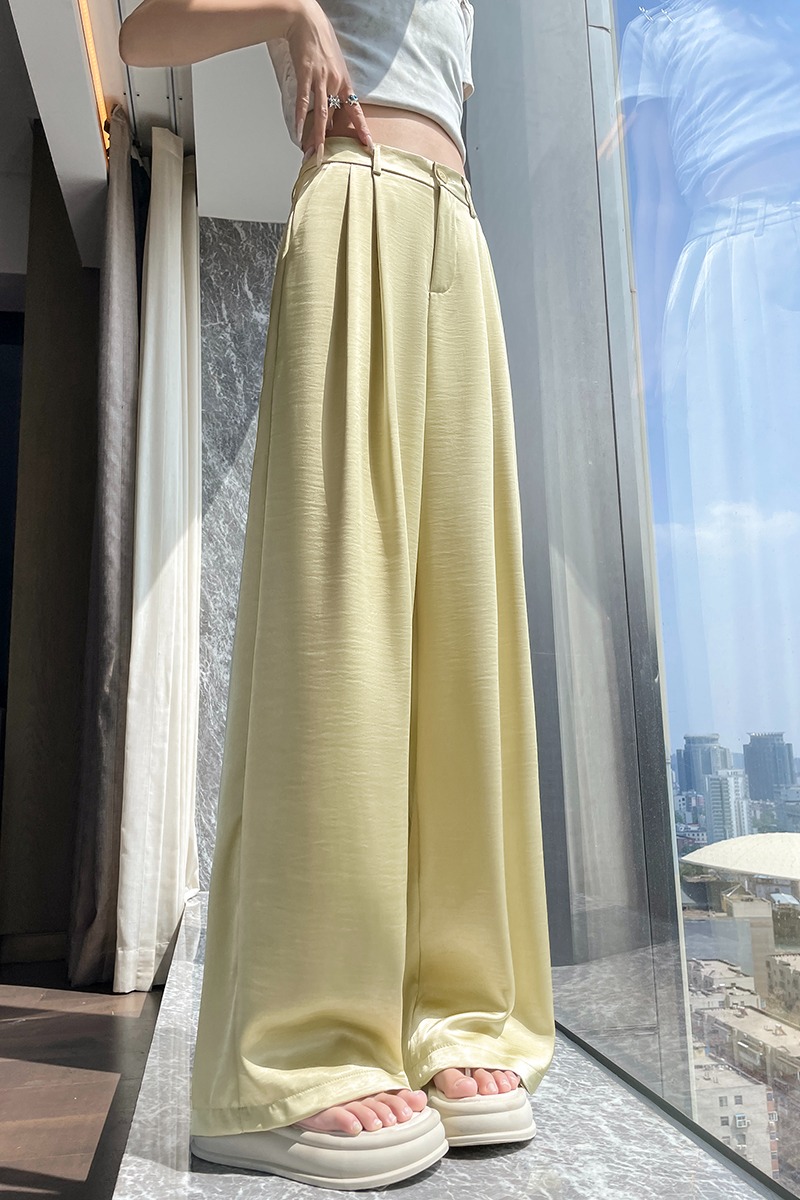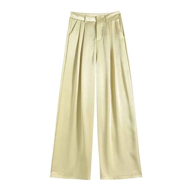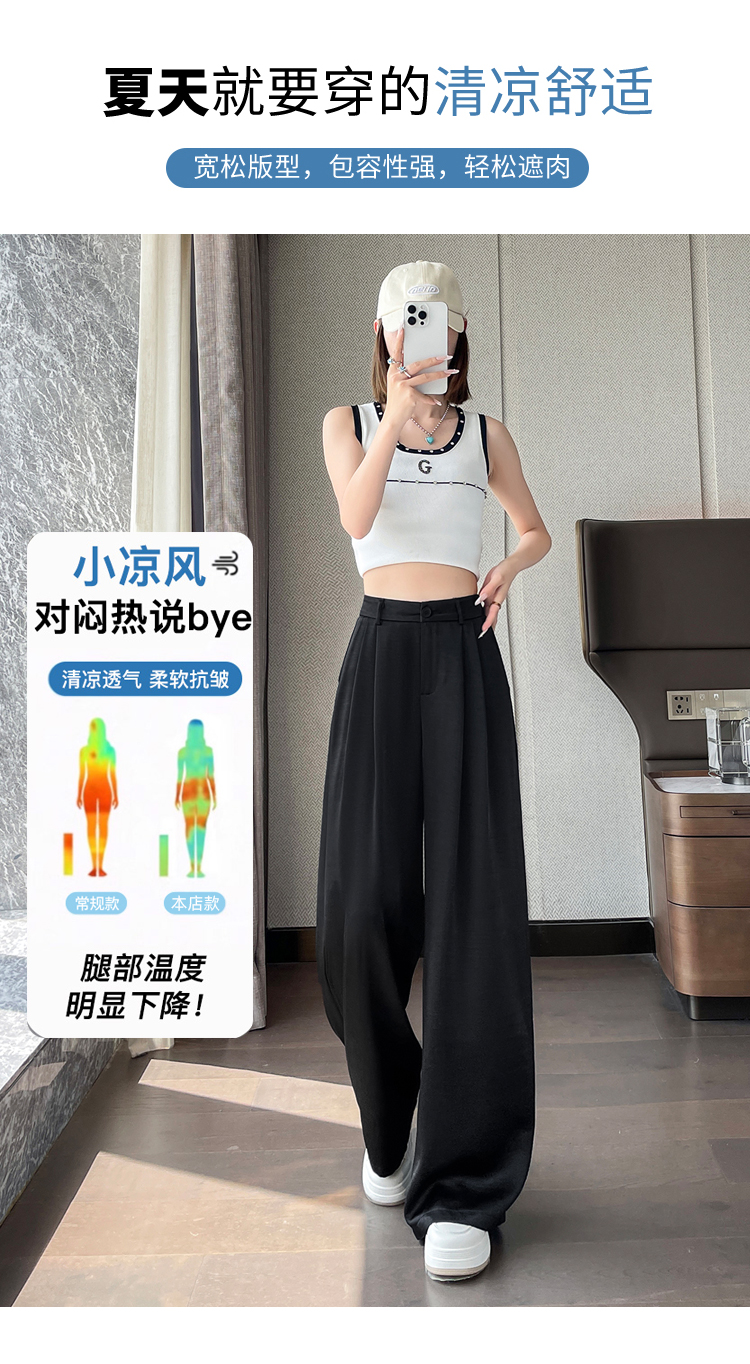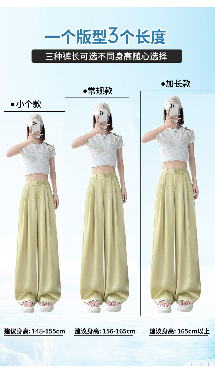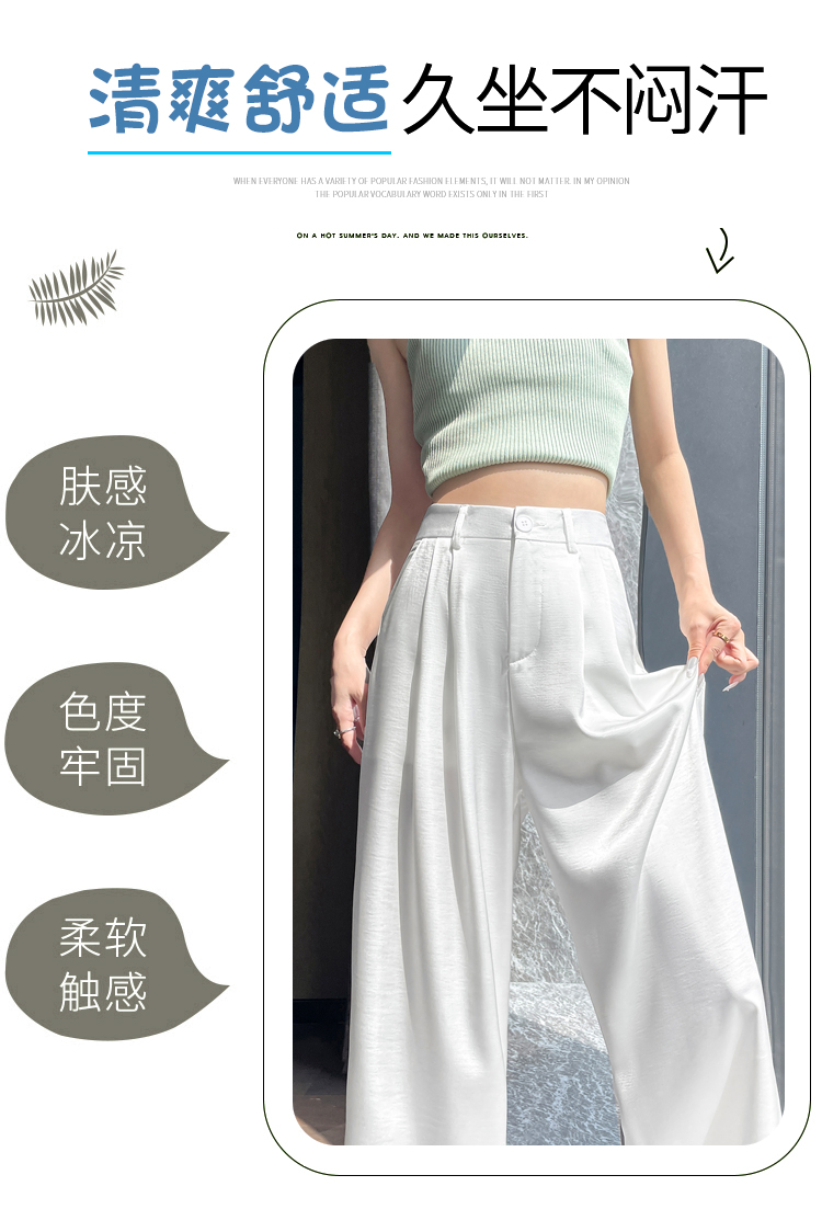RY2812# 实拍 冰丝醋酸缎面阔腿裤女2026夏季高腰防晒休闲直筒拖地西装裤