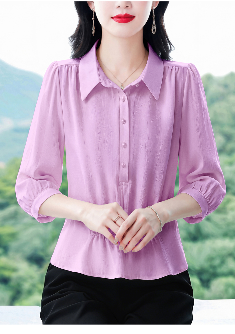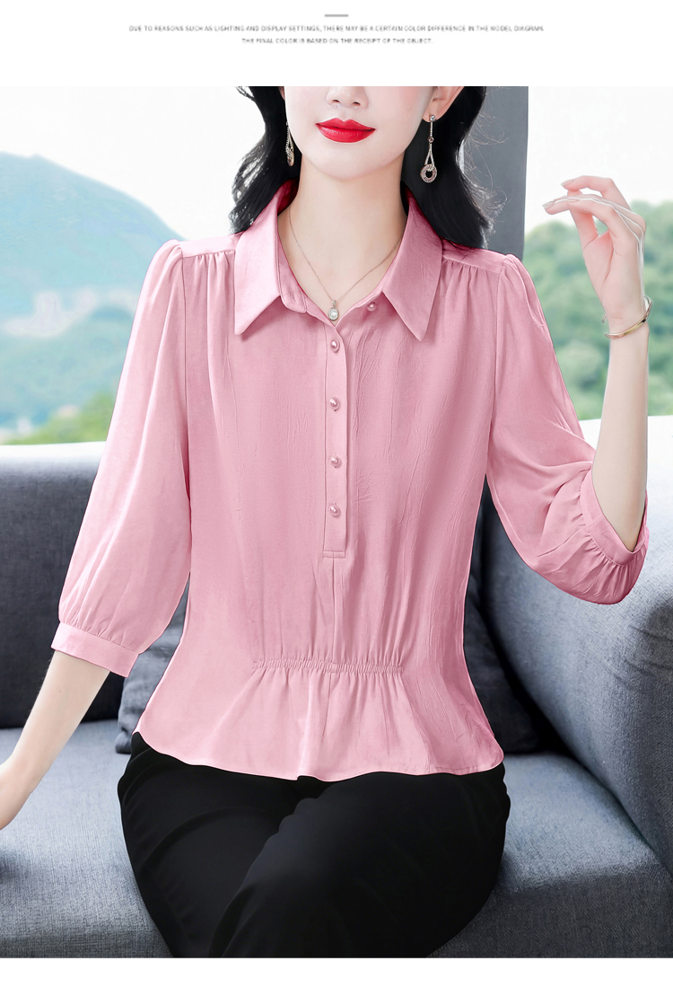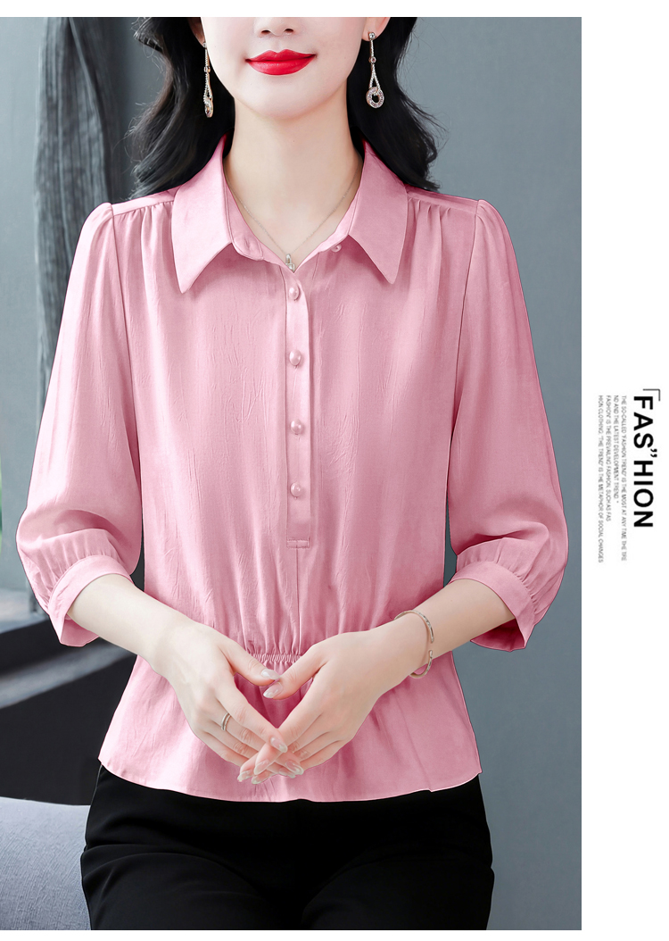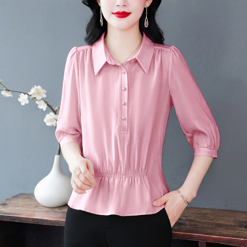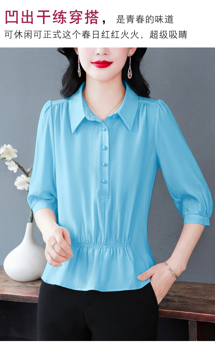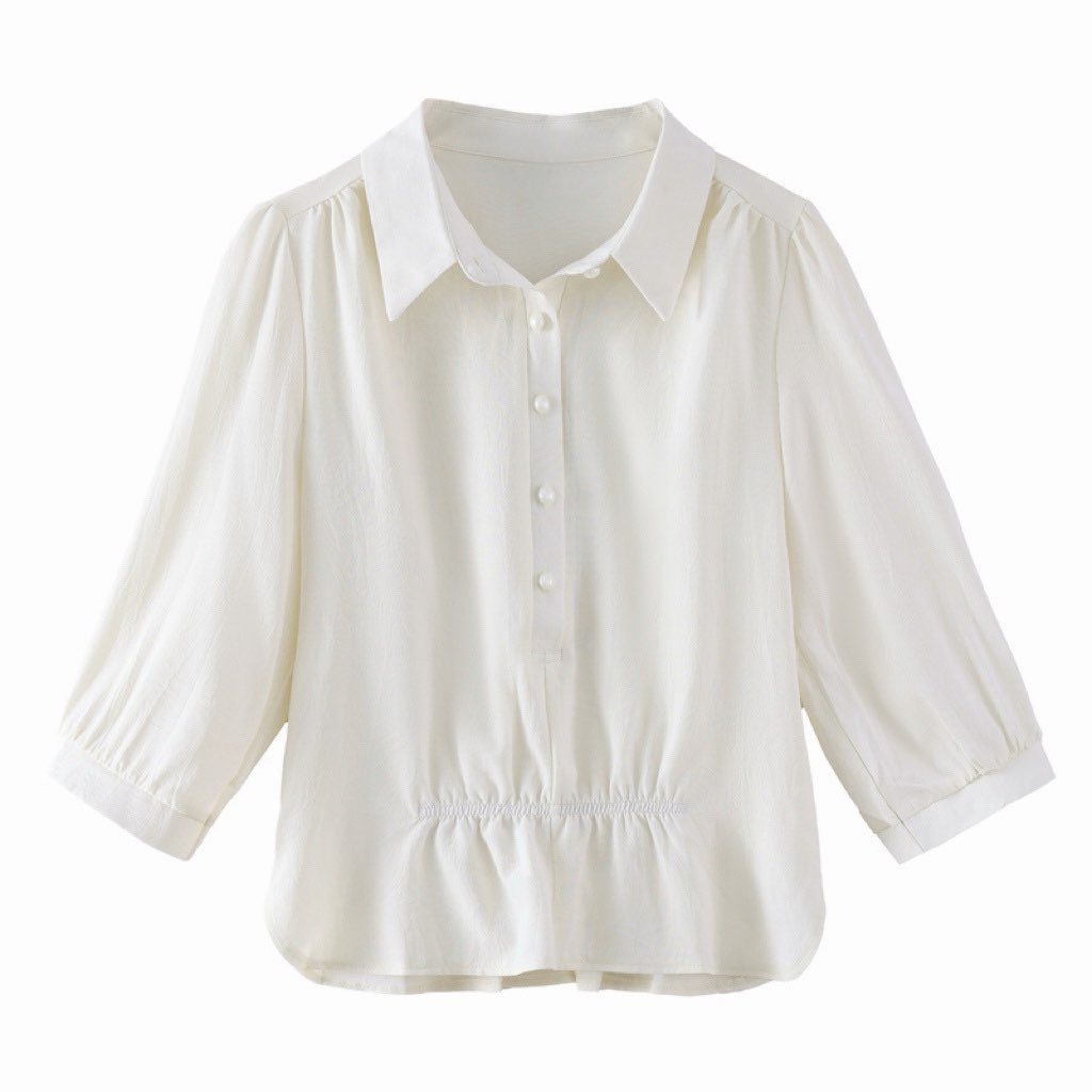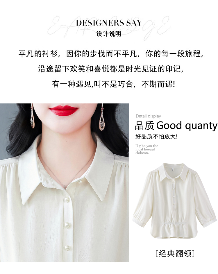 RY2826# 2026新款夏款宽松中袖薄款收腰设计显瘦百搭气质女衬衫上衣