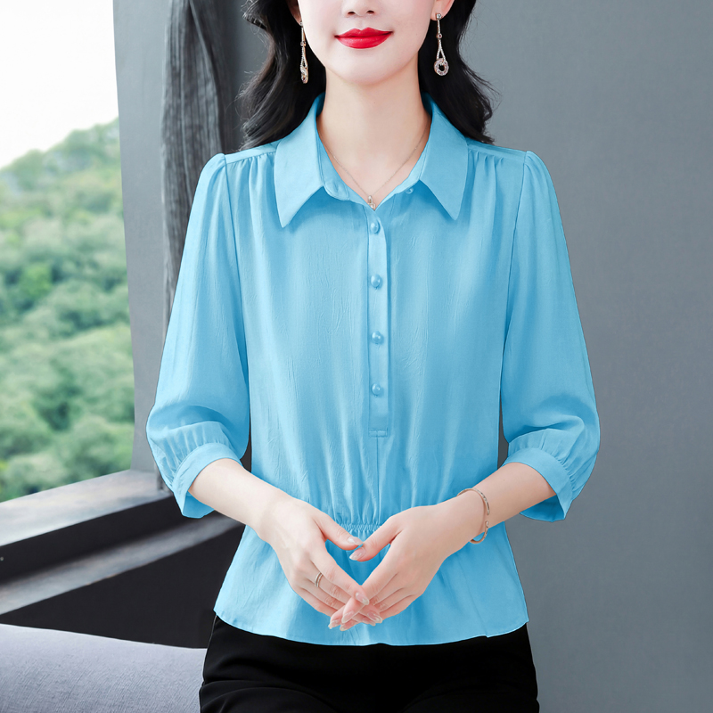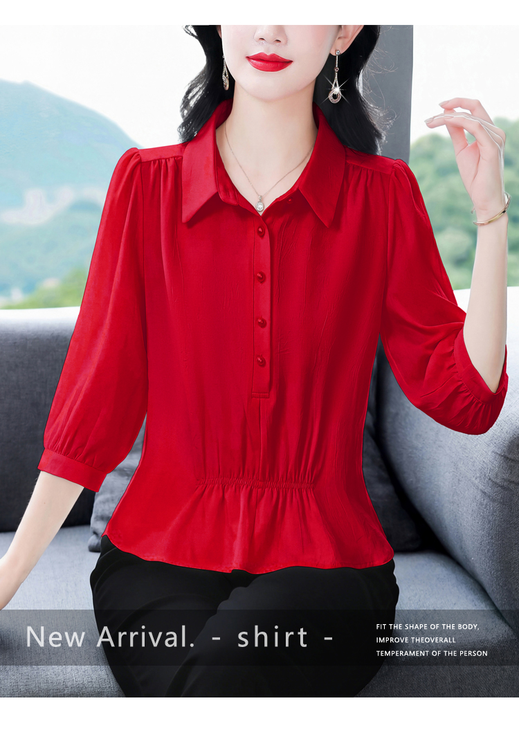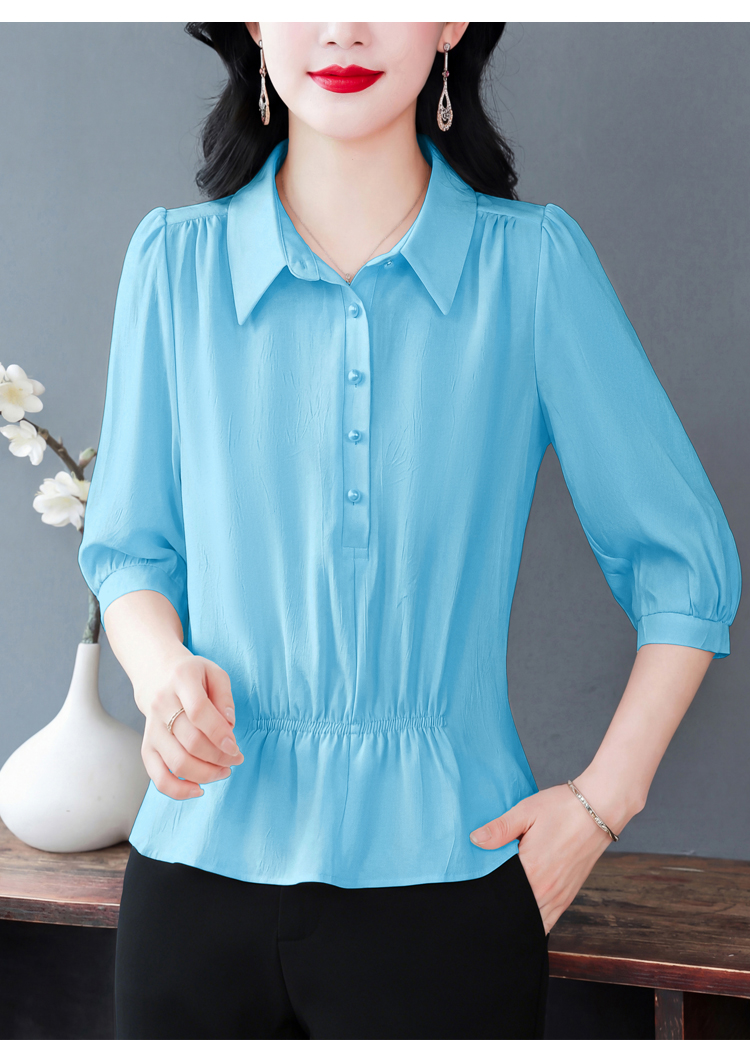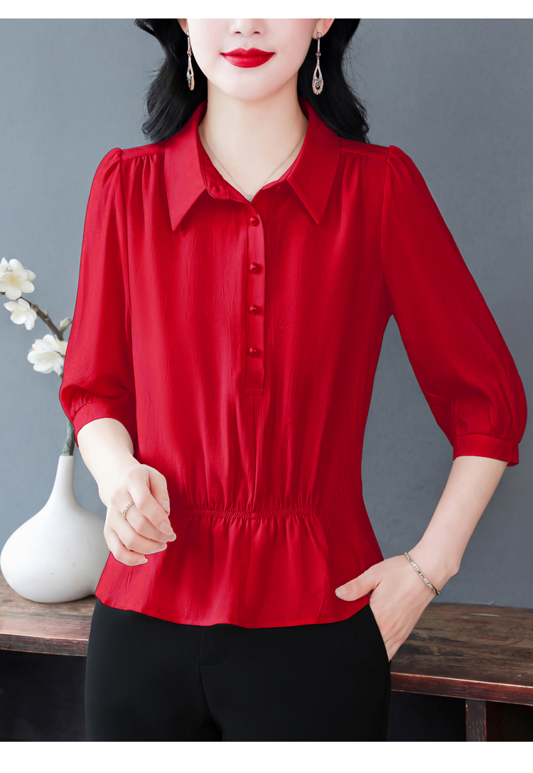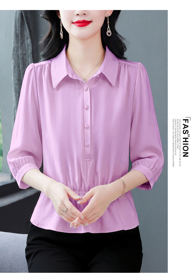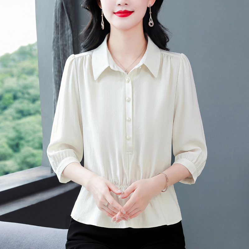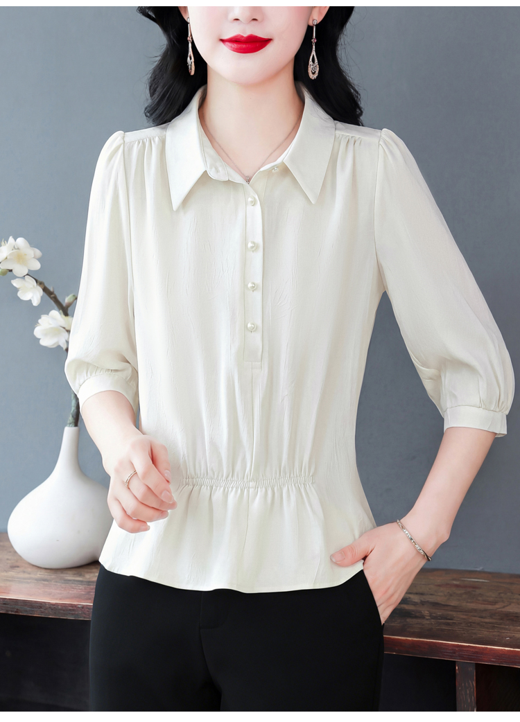 RY2826# 2026新款夏款宽松中袖薄款收腰设计显瘦百搭气质女衬衫上衣