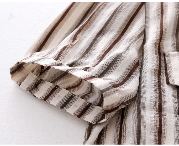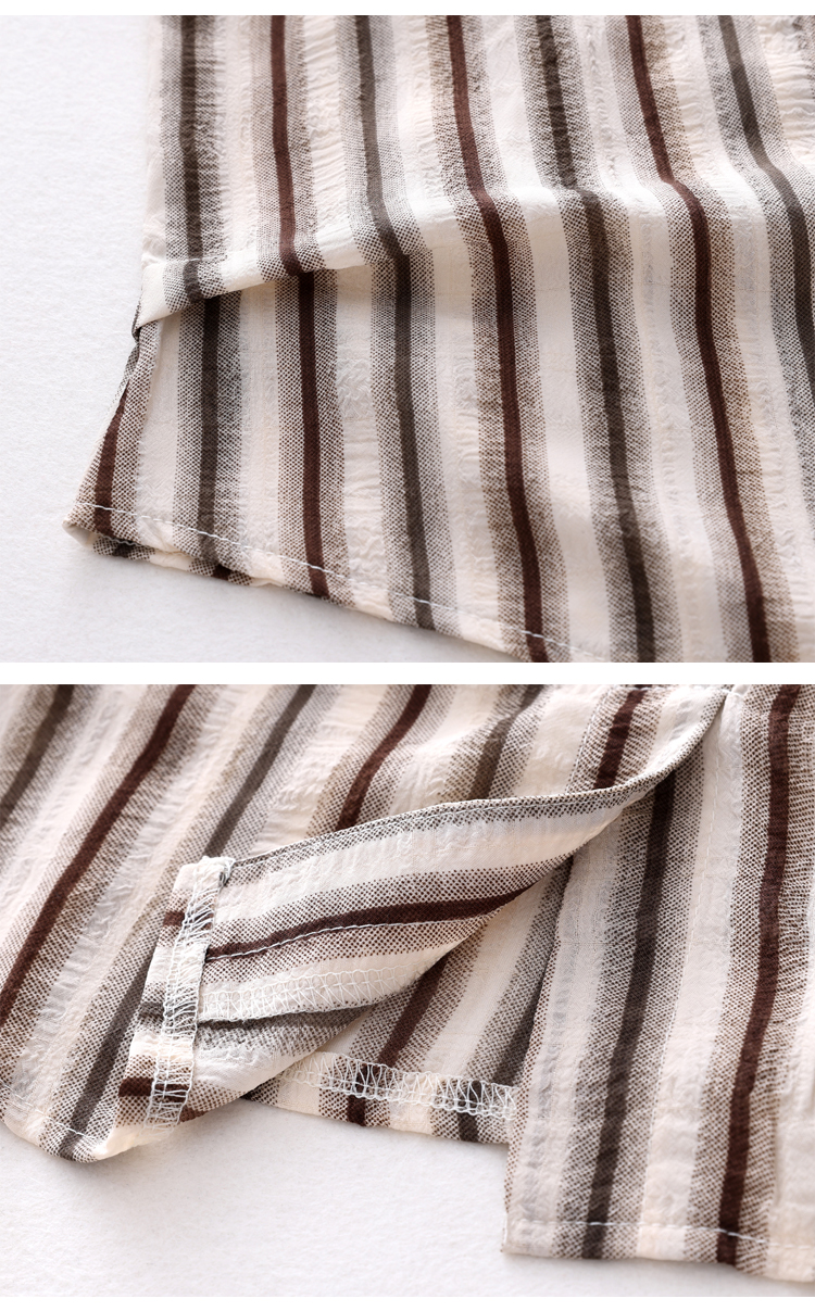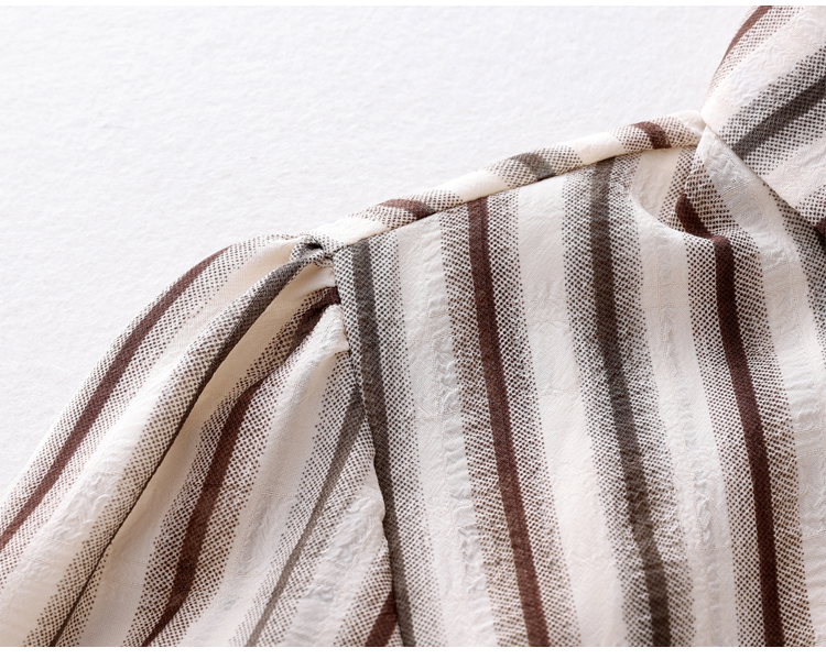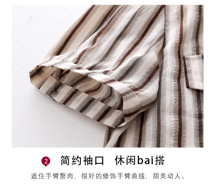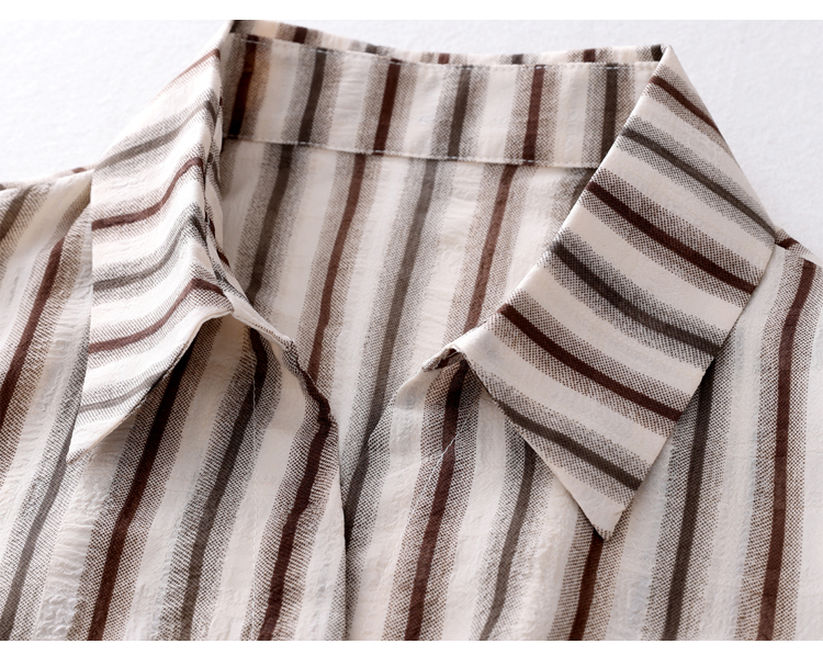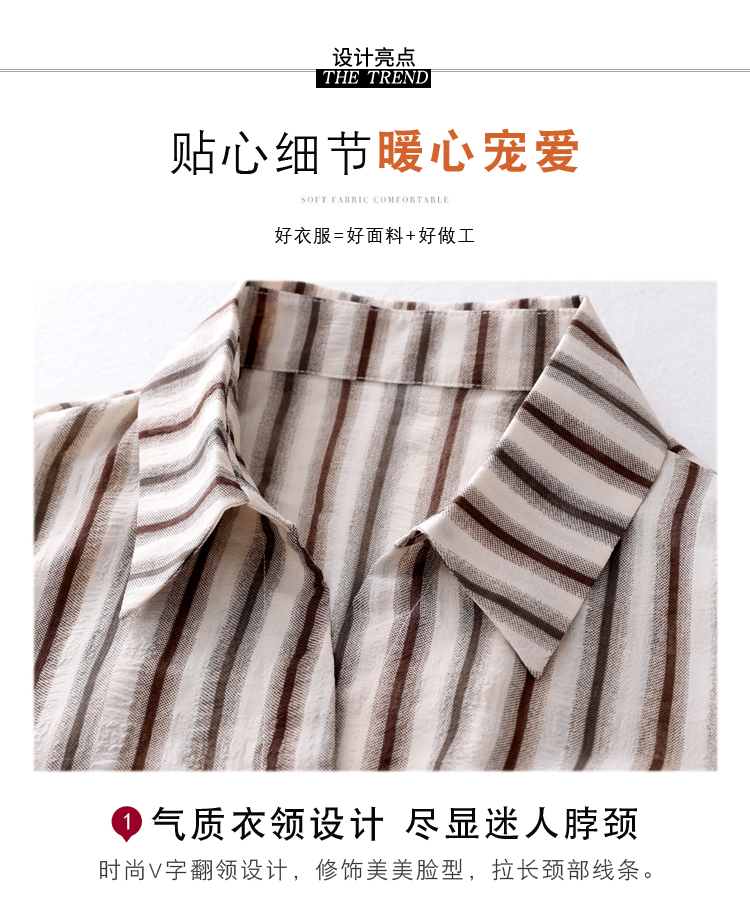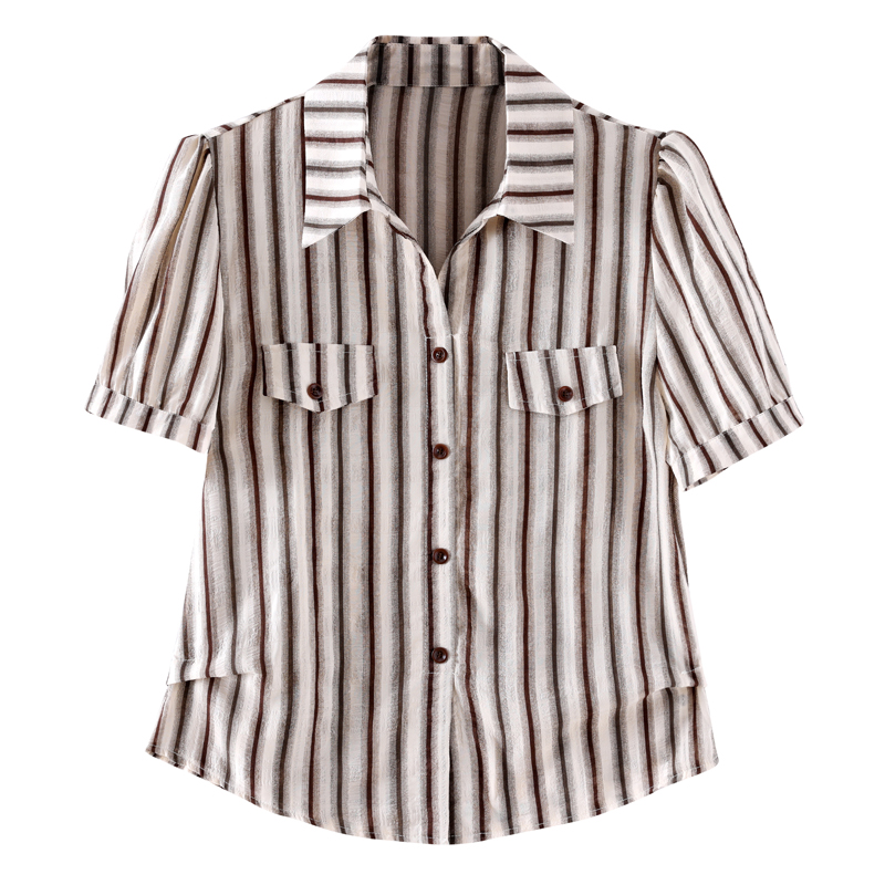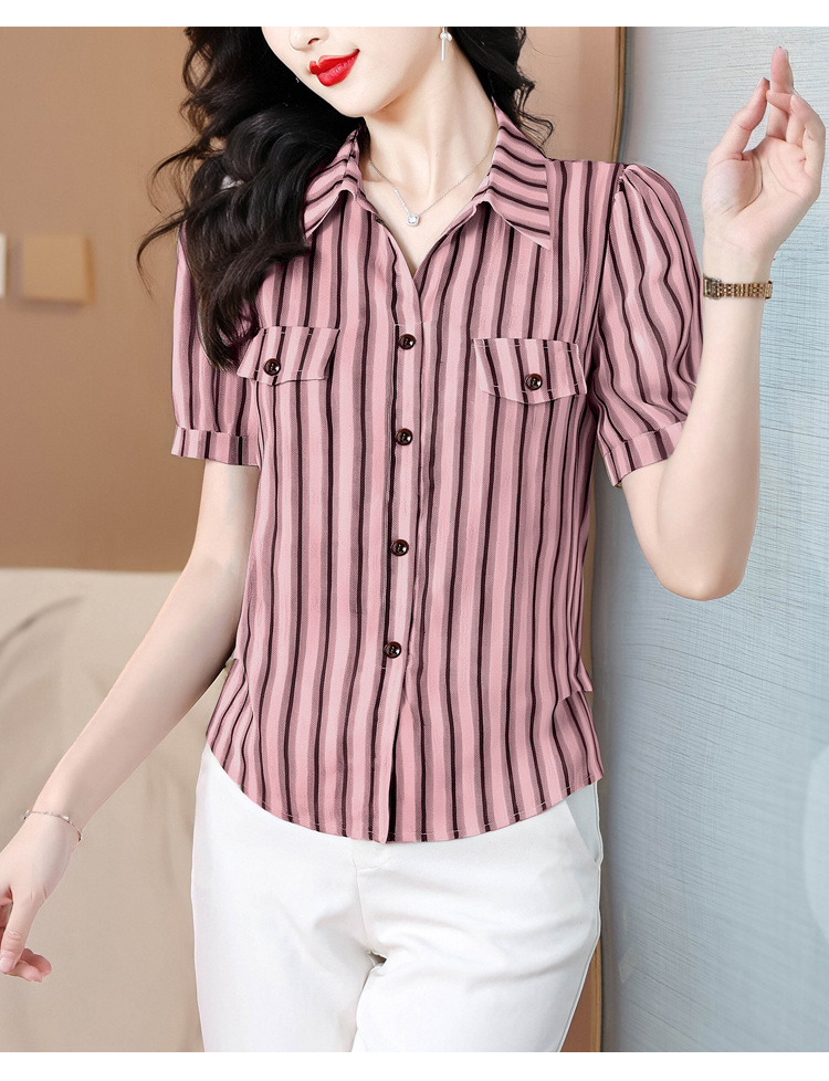 RY2828# 条纹半袖衬衫上衣洋气时尚夏季透气雪纺衫宽松百搭气质衬衣小衫