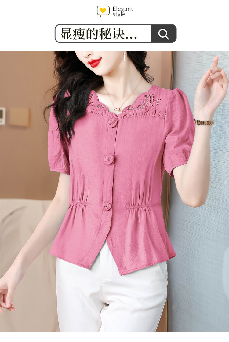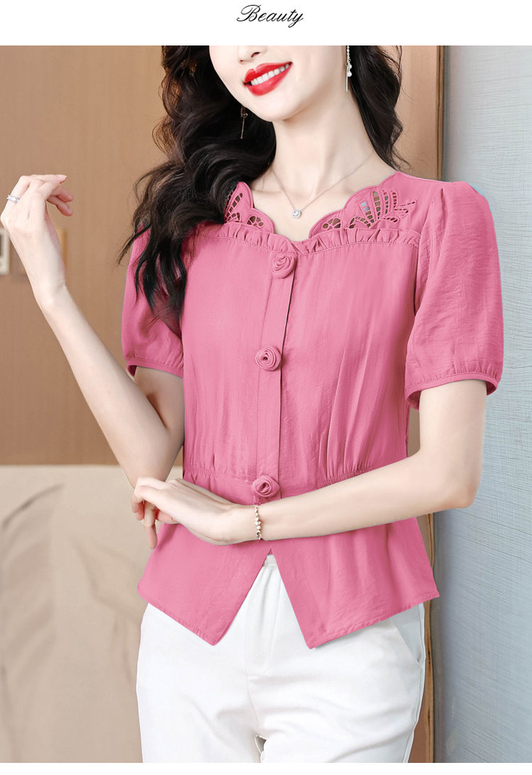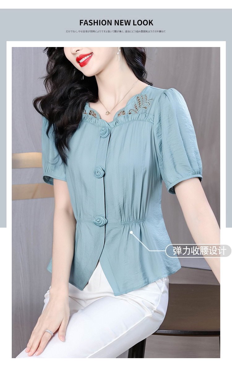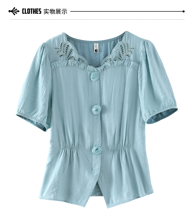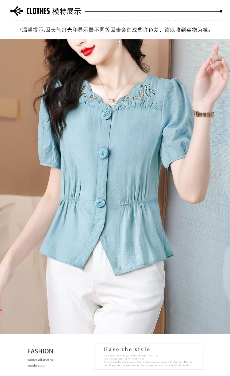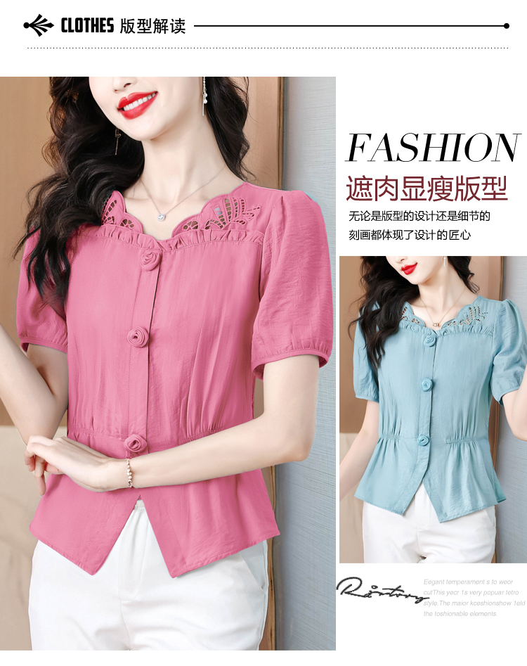 RY2829# 时尚气质短袖衬衫女2026年夏季新款减龄洋气镂空收腰显瘦百搭上衣