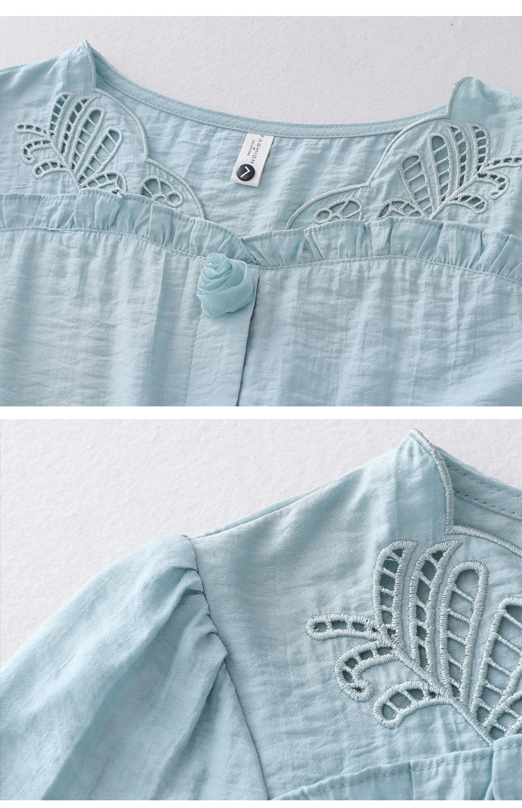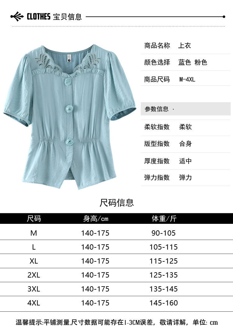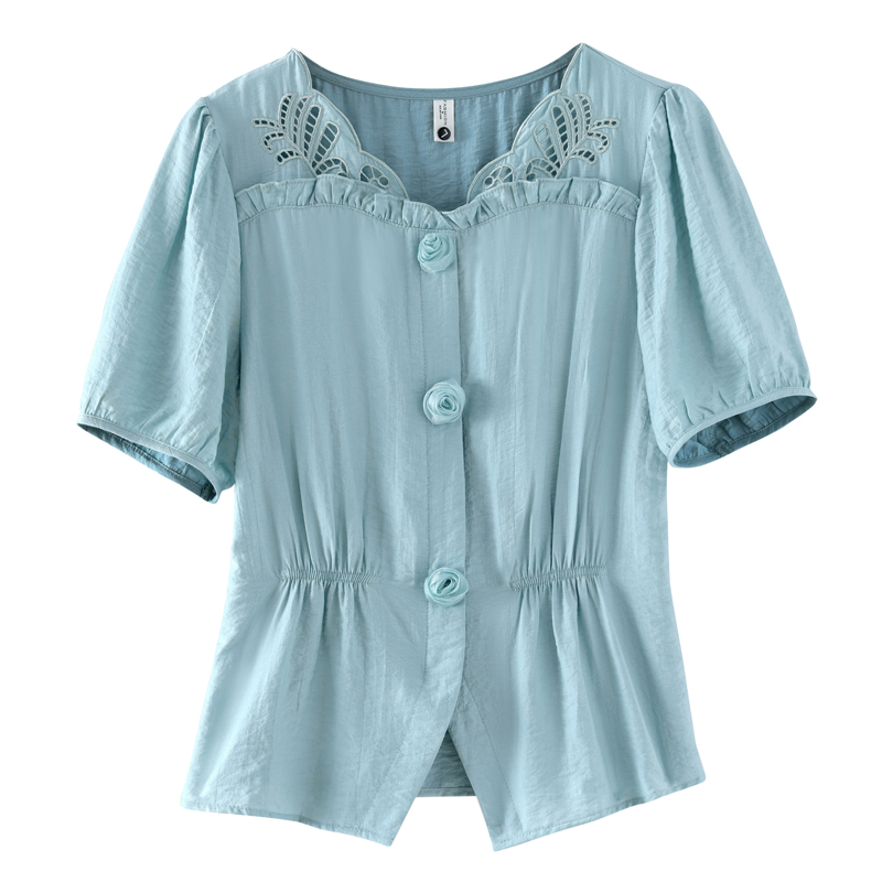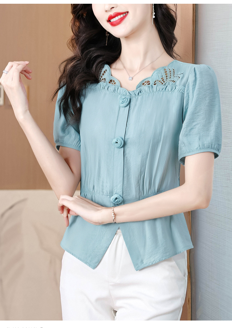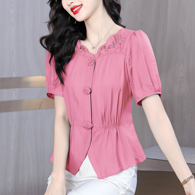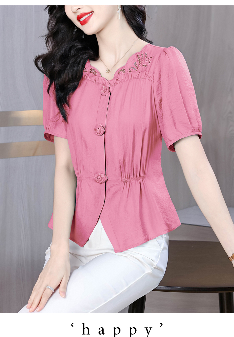 RY2829# 时尚气质短袖衬衫女2026年夏季新款减龄洋气镂空收腰显瘦百搭上衣