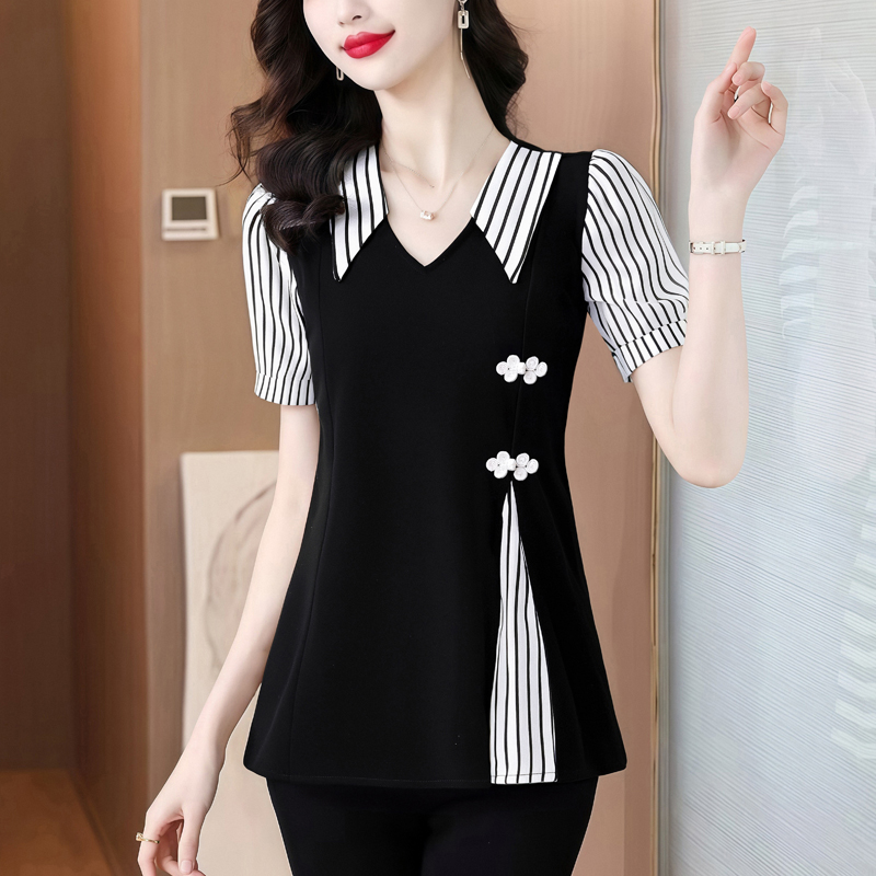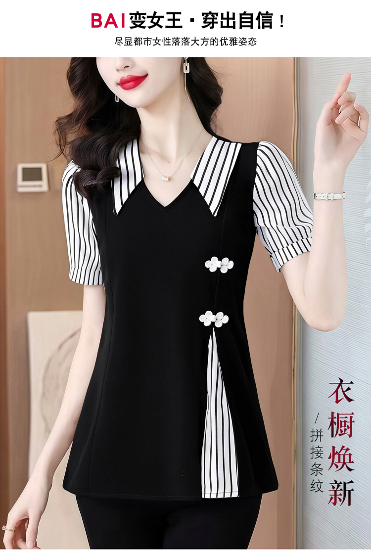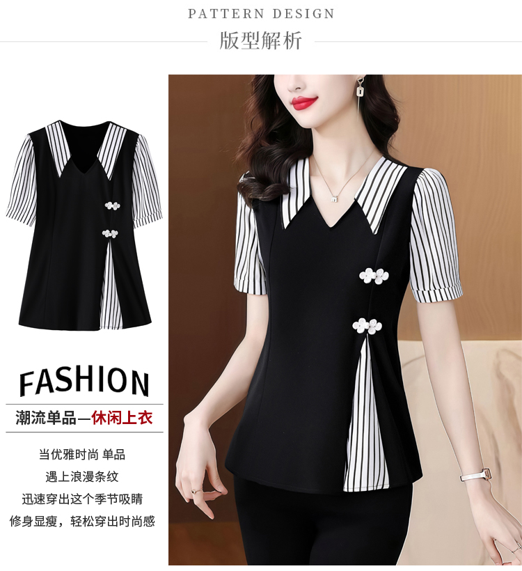 RY2837# 短袖t恤女2026年新款夏装洋气独特别致妈妈上衣大码胖mm遮肉显瘦