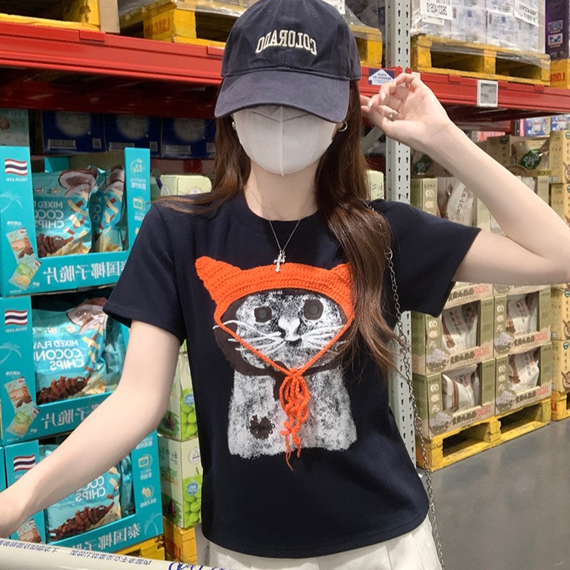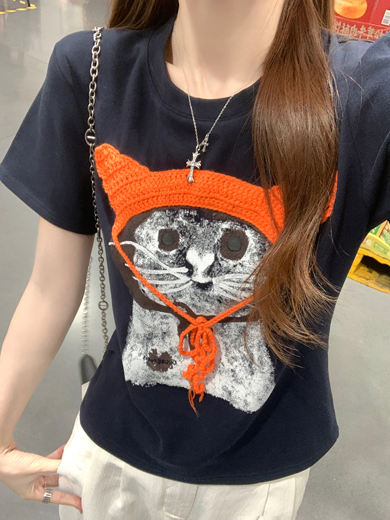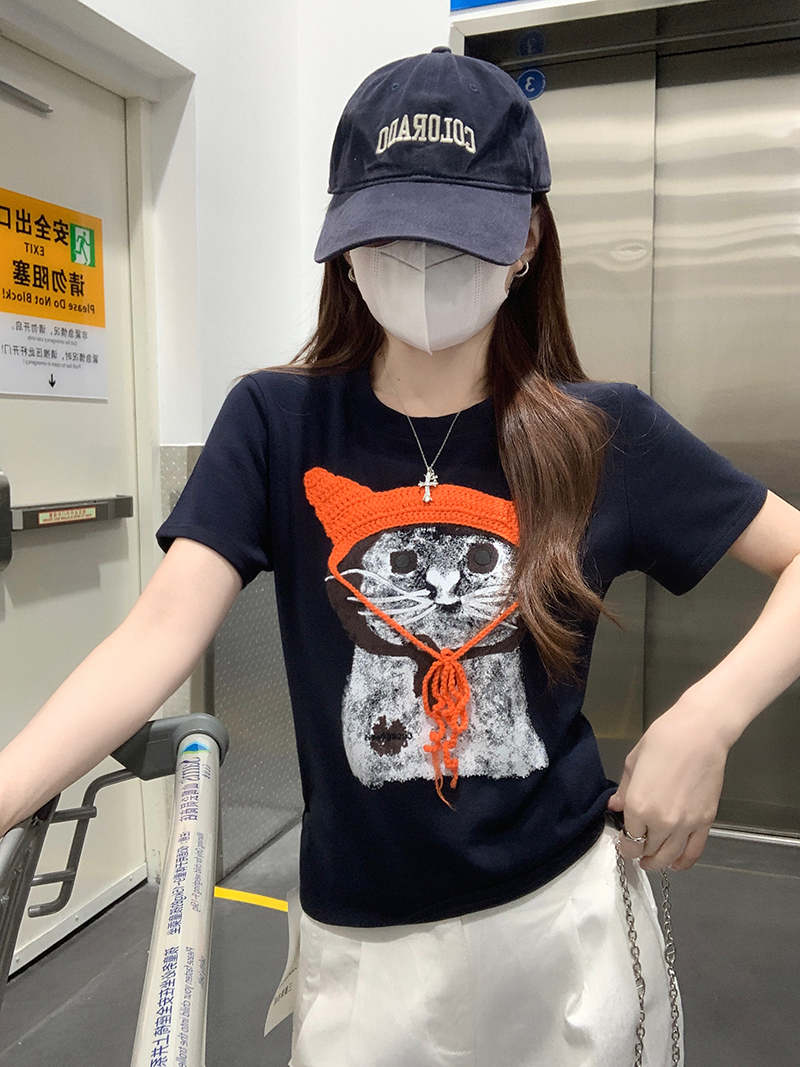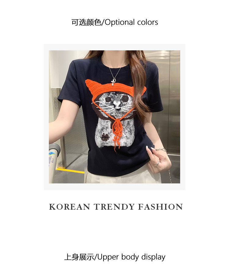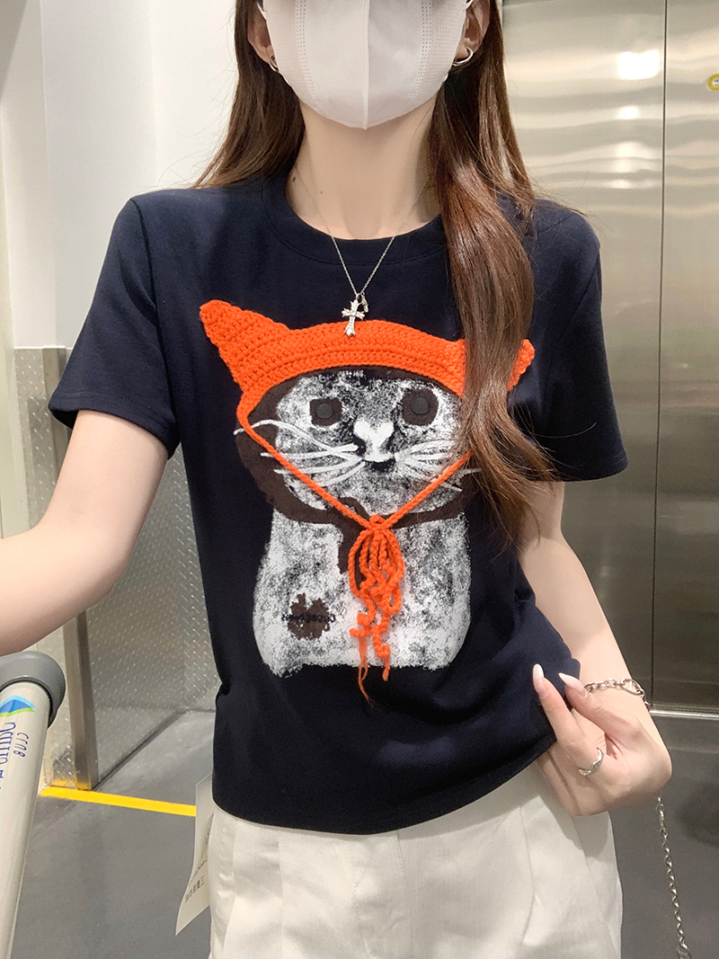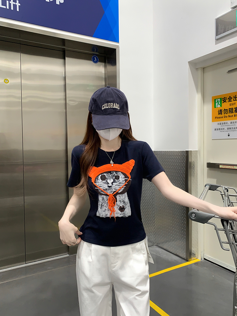 RY2880# 实拍 短袖t恤女夏新款韩系显瘦刺绣圆领上衣