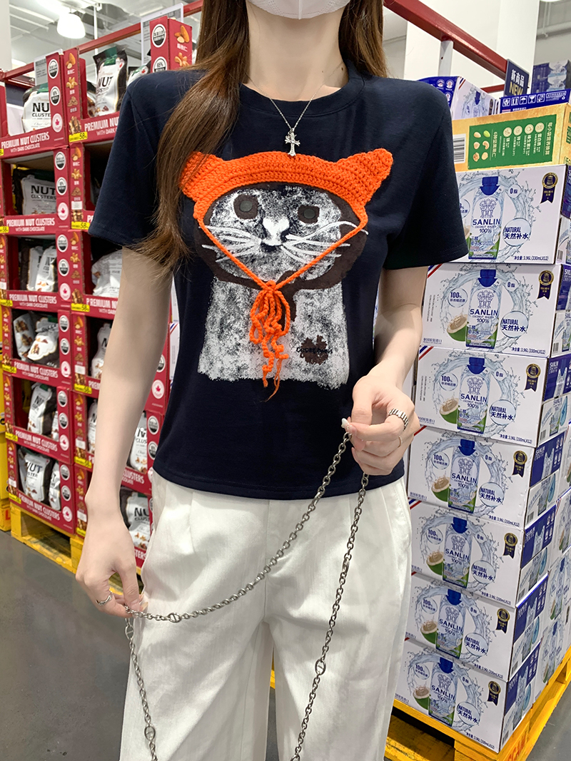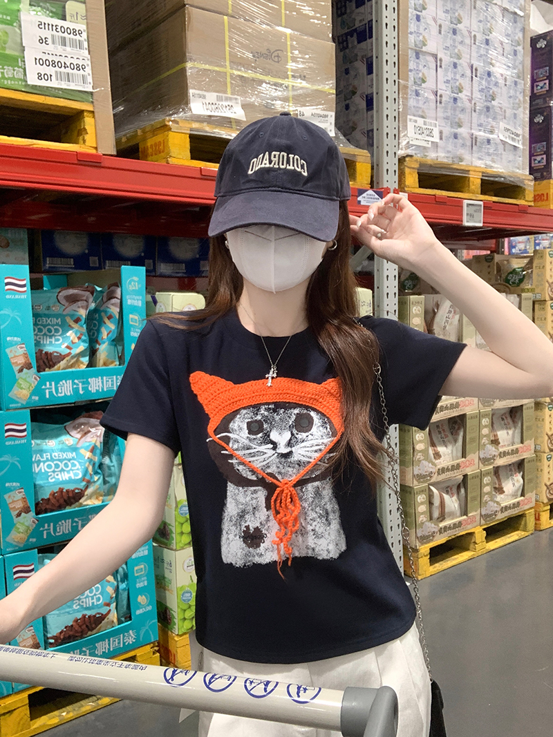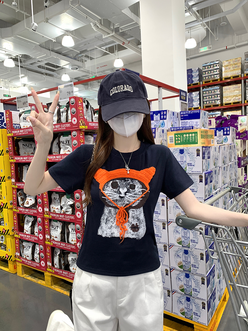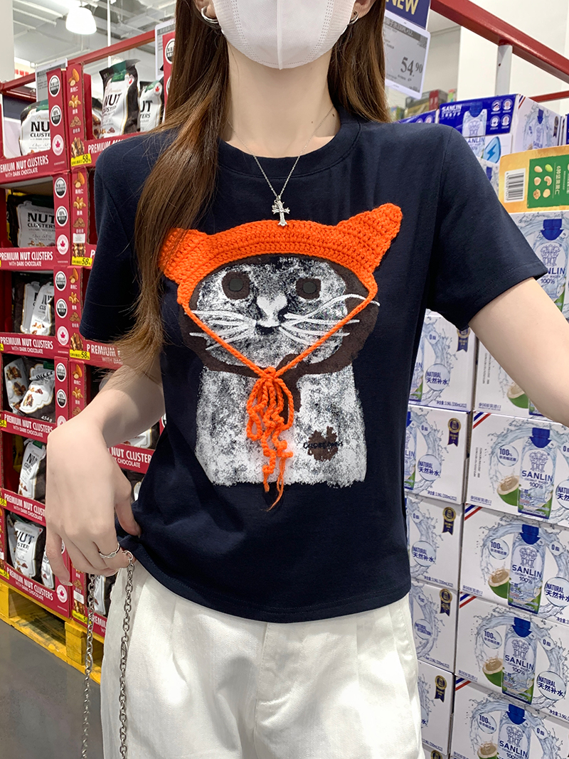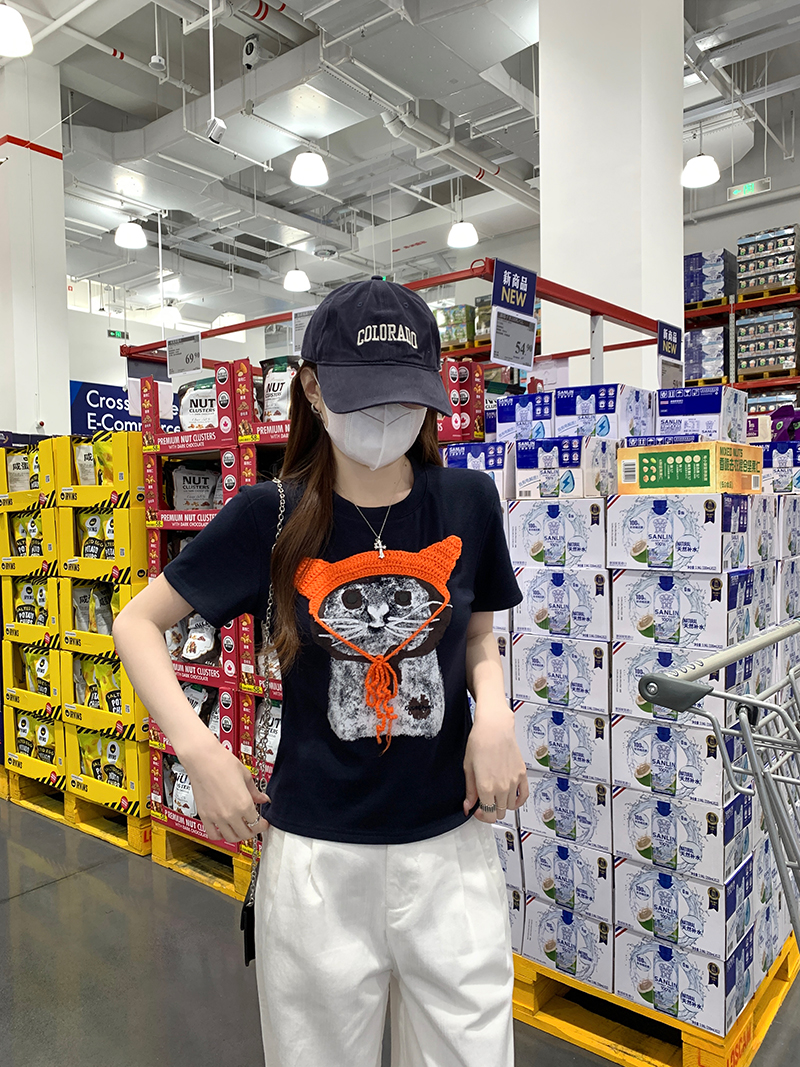 RY2880# 实拍 短袖t恤女夏新款韩系显瘦刺绣圆领上衣