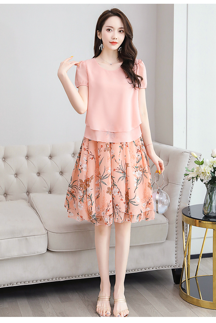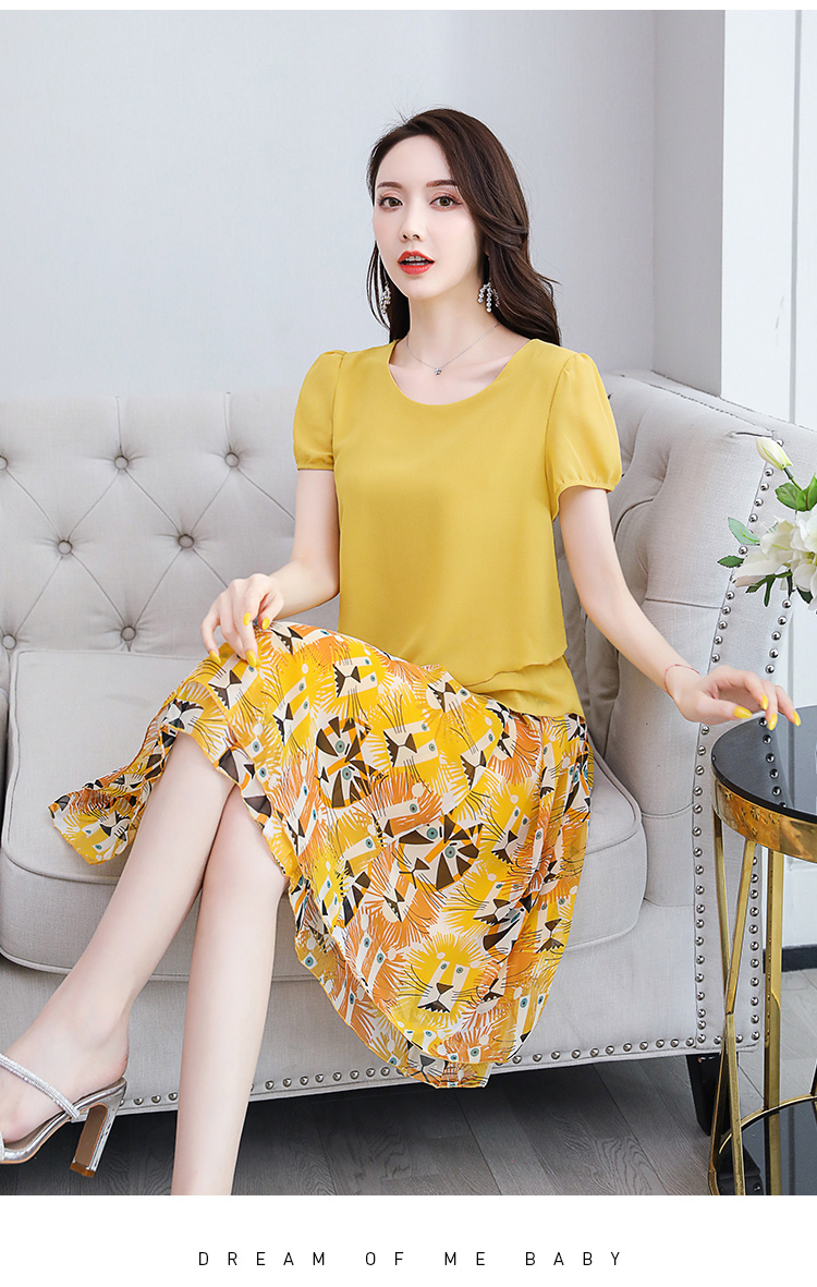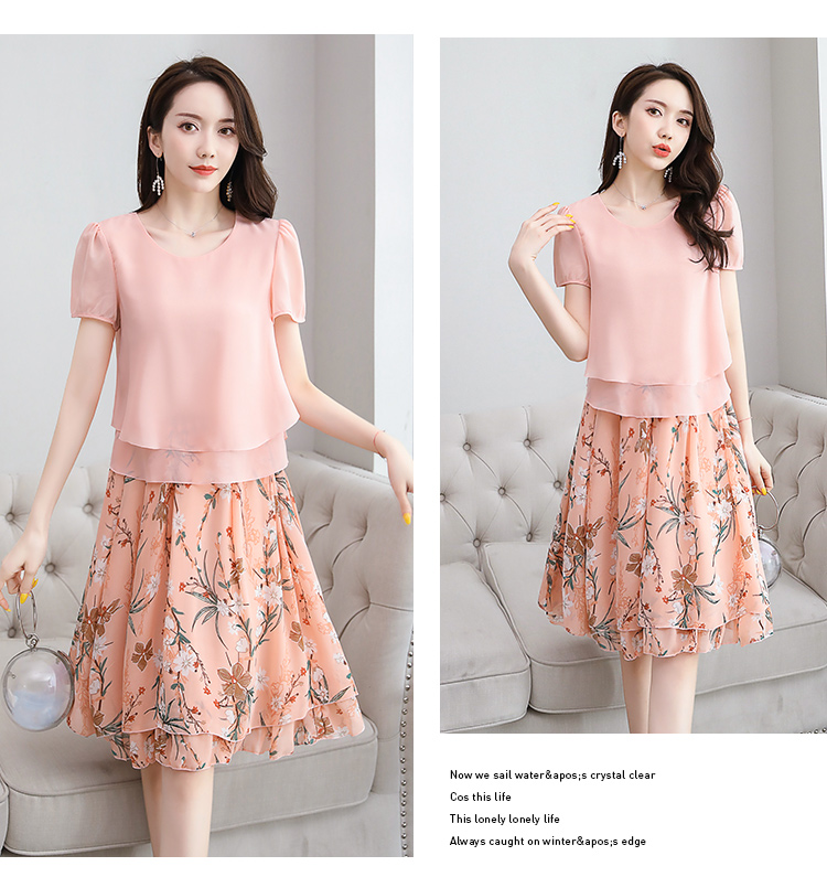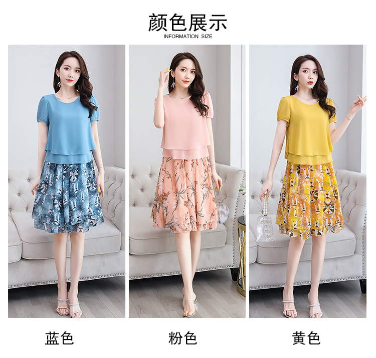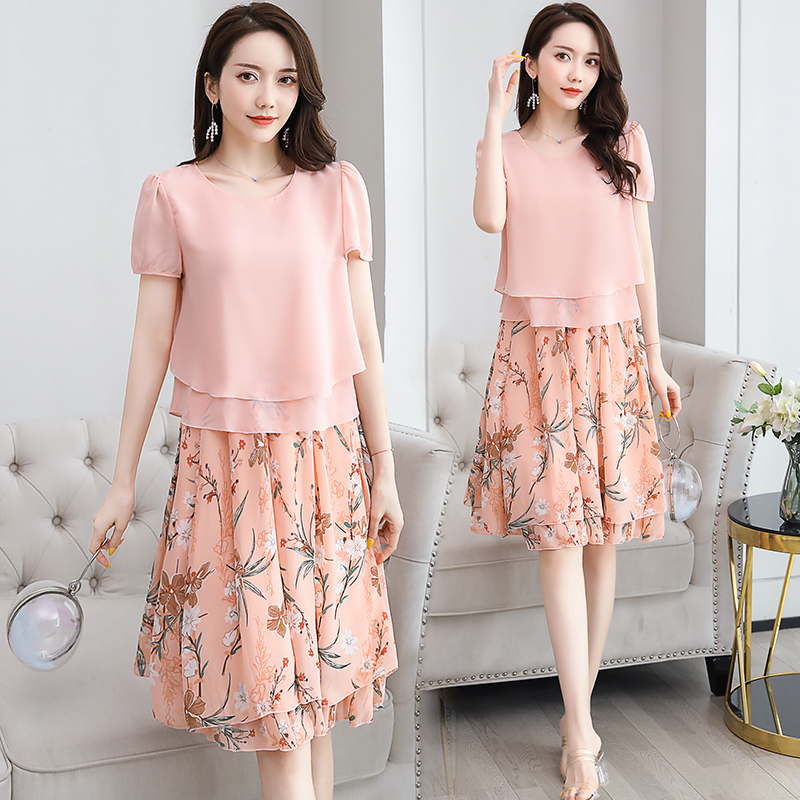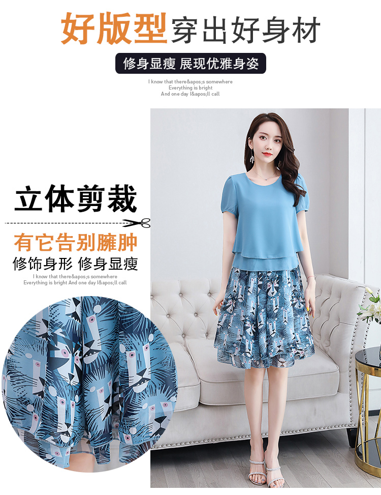 RY2962# 实拍2026夏季新雪纺连衣裙款韩版宽松遮肚子显瘦碎花洋气两件套裙