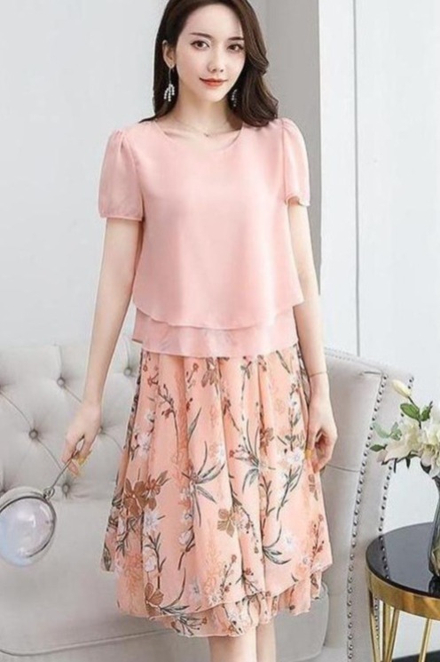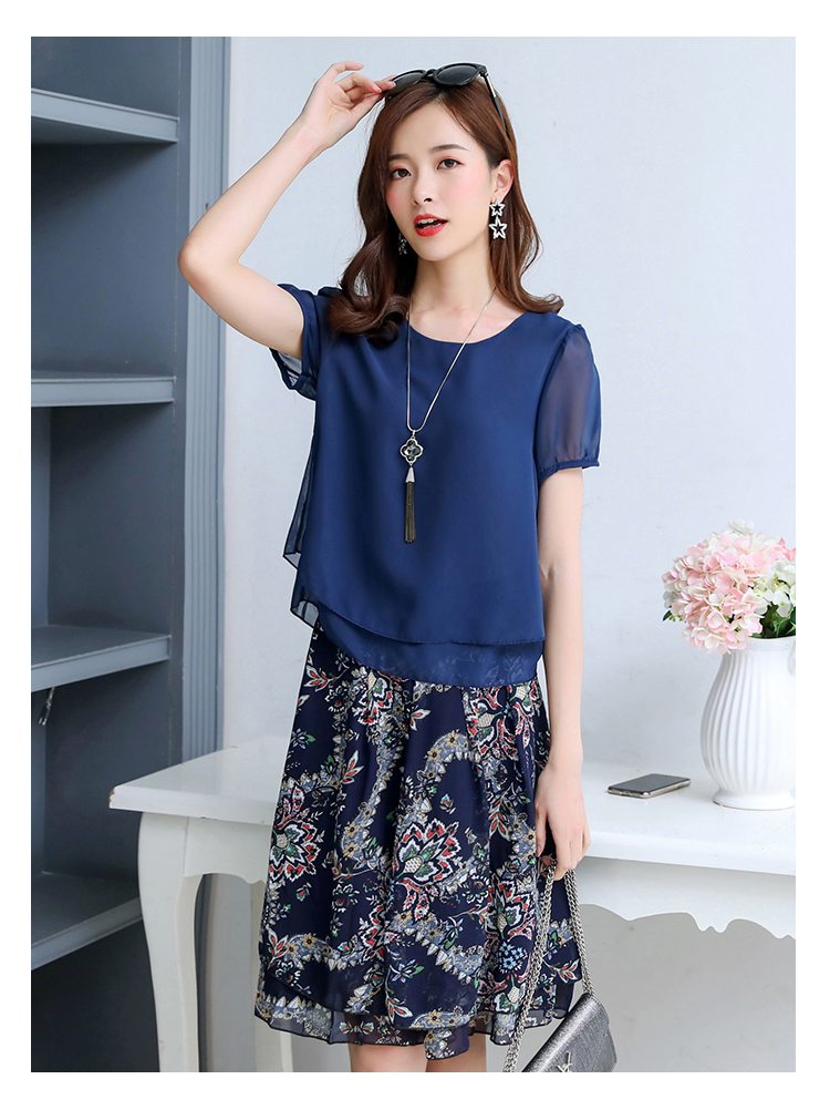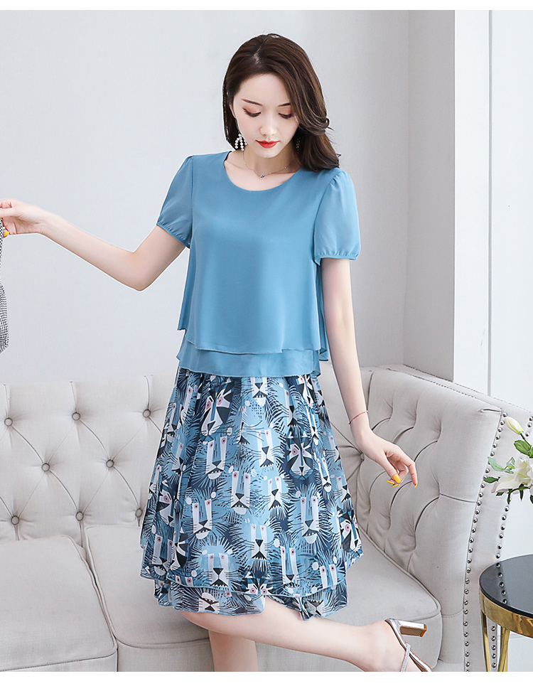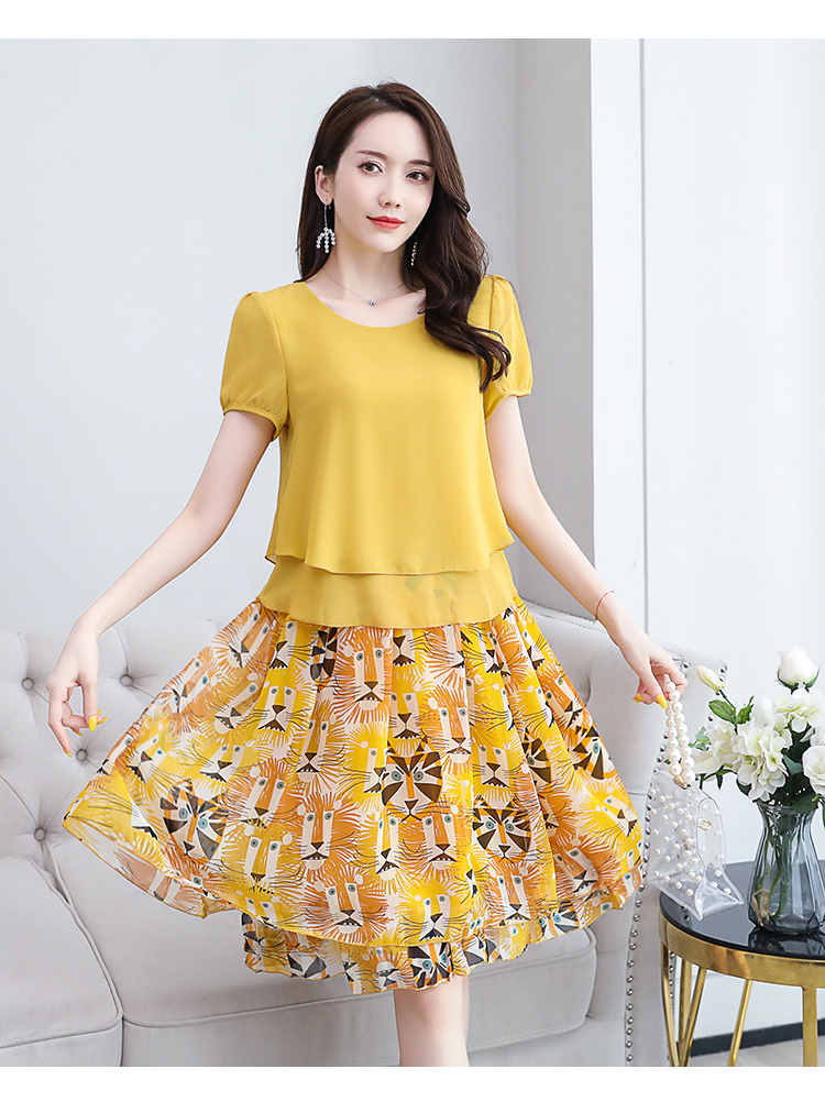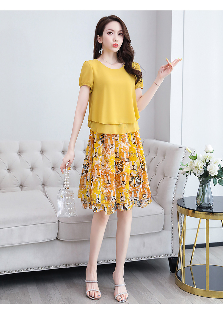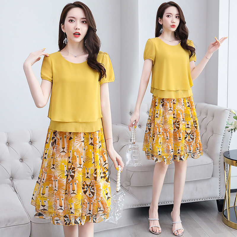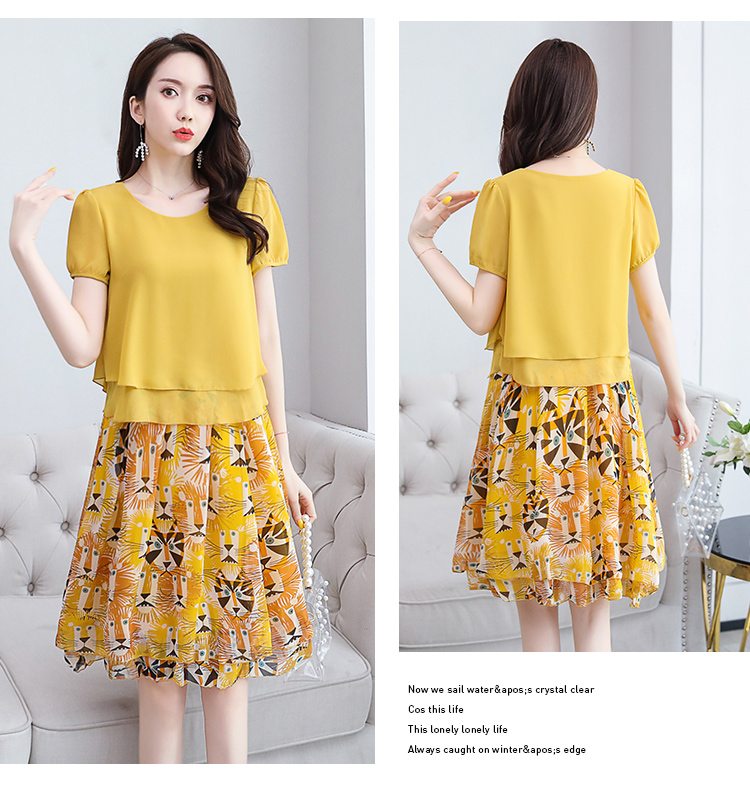 RY2962# 实拍2026夏季新雪纺连衣裙款韩版宽松遮肚子显瘦碎花洋气两件套裙