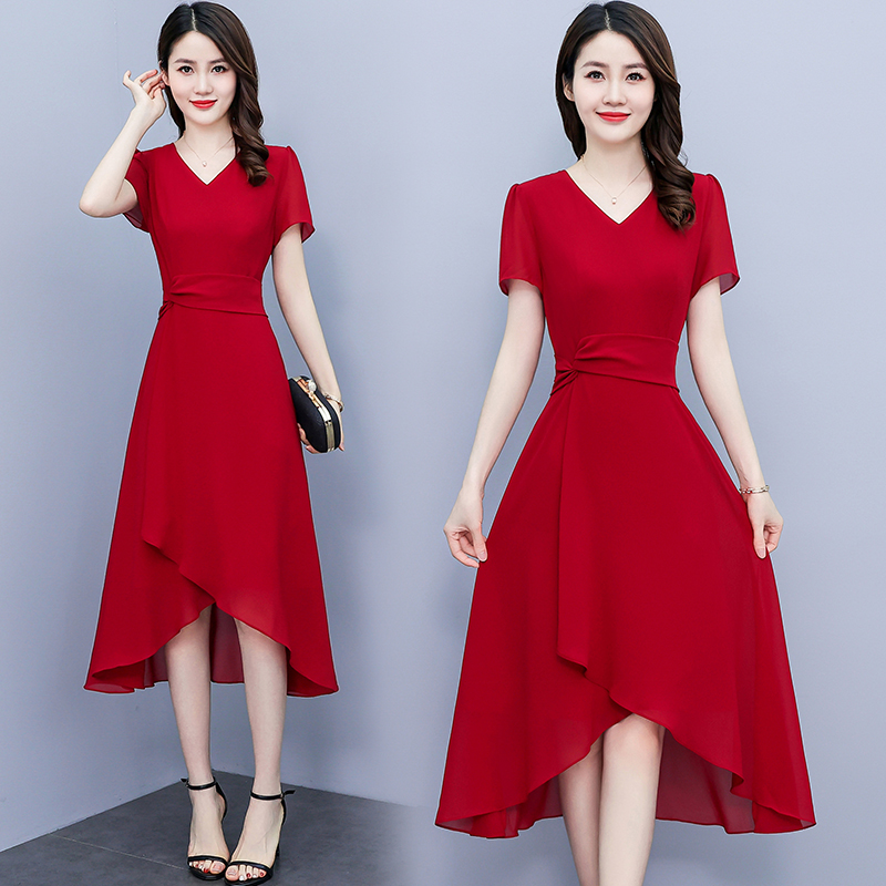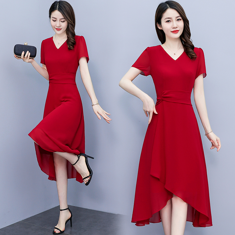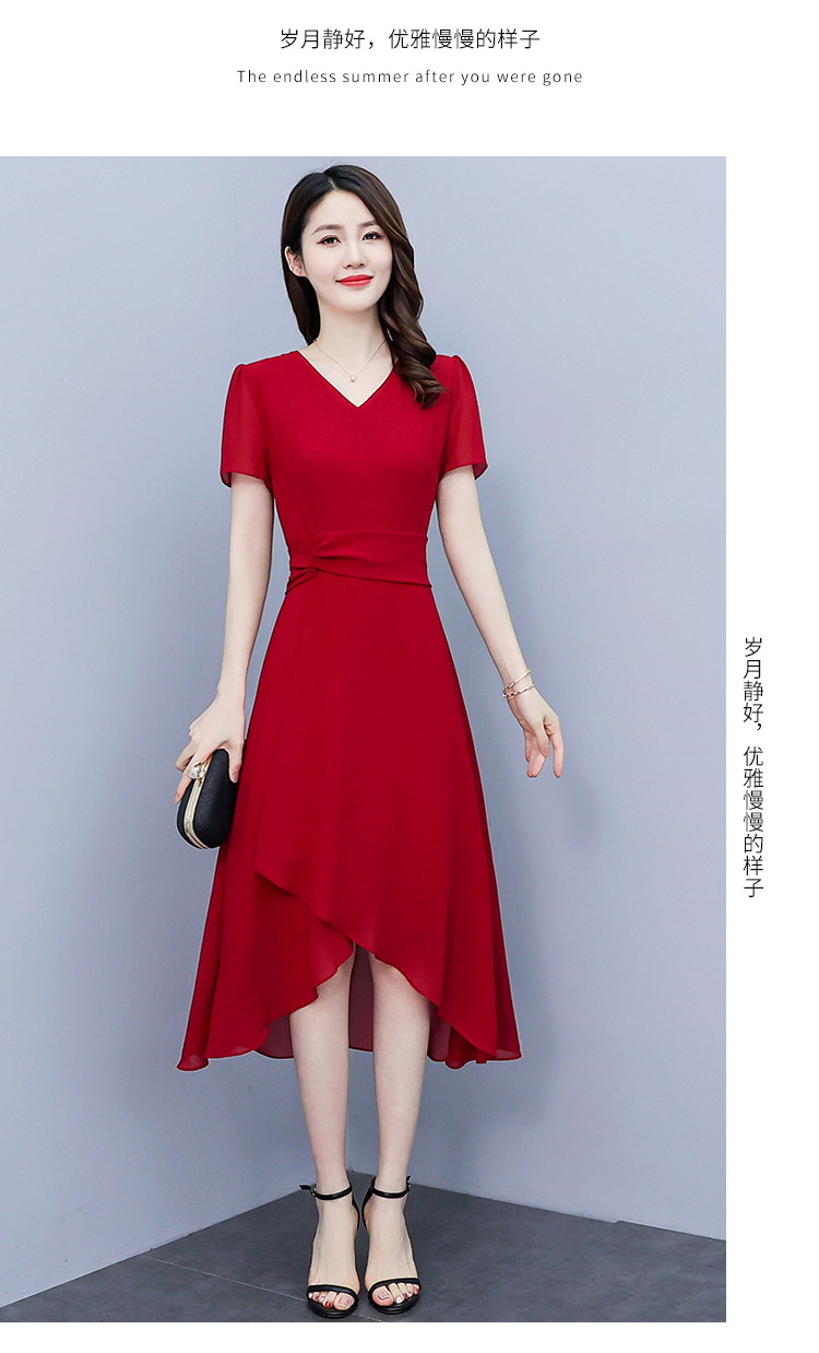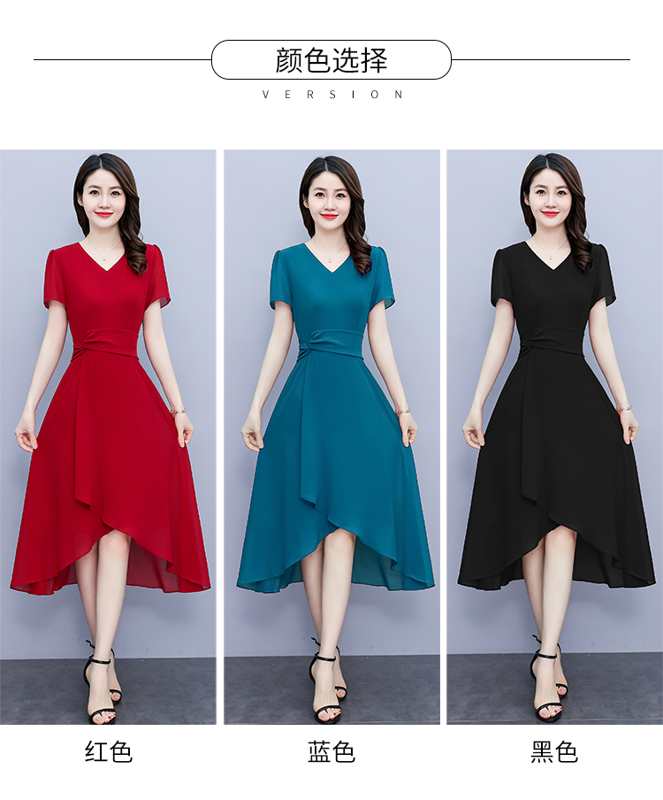 RY2986# 实拍有货 2026夏季新款短袖连衣裙雪纺拼接裙子洋气收腰大...