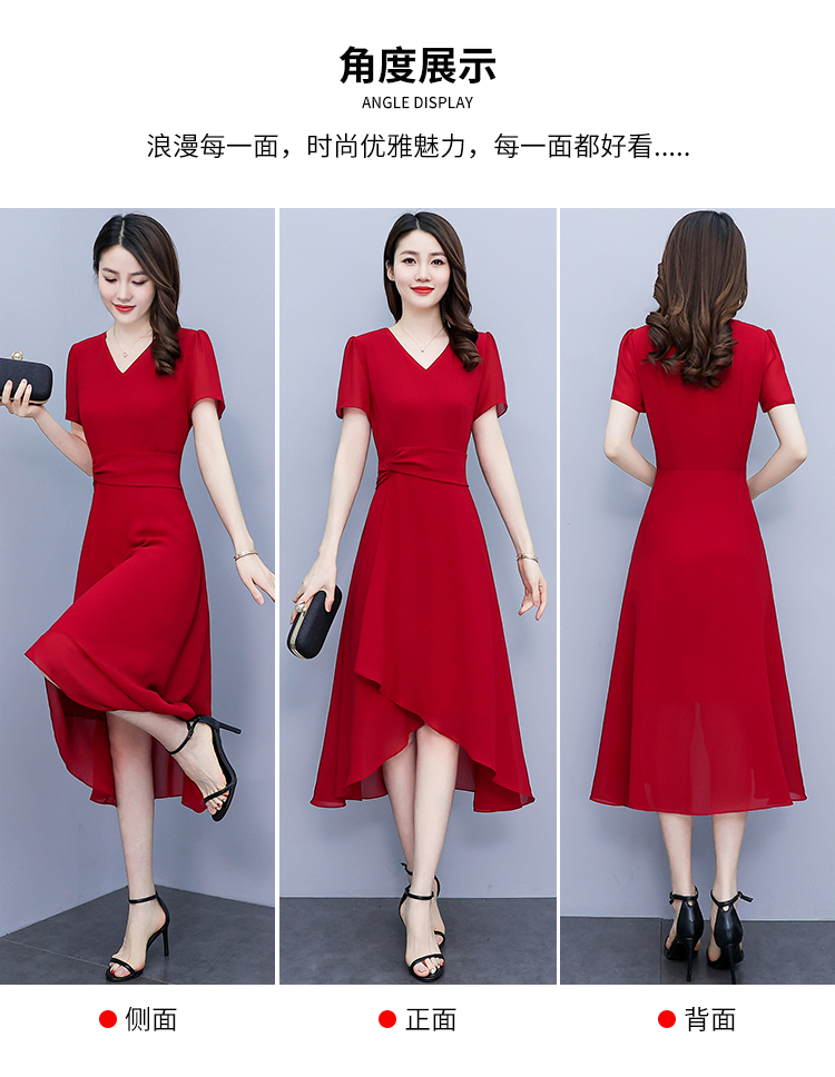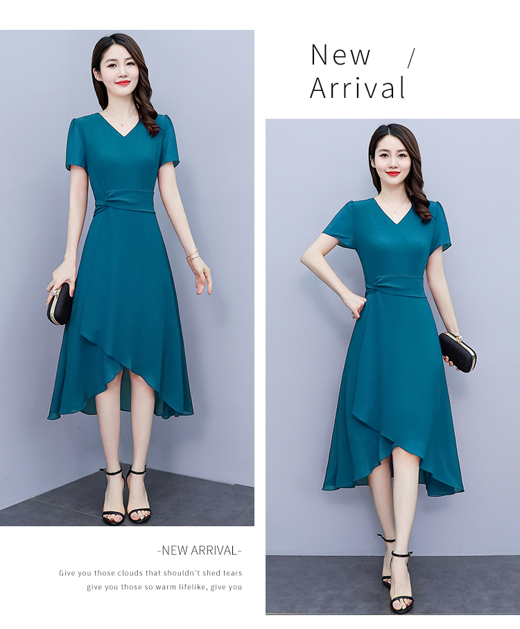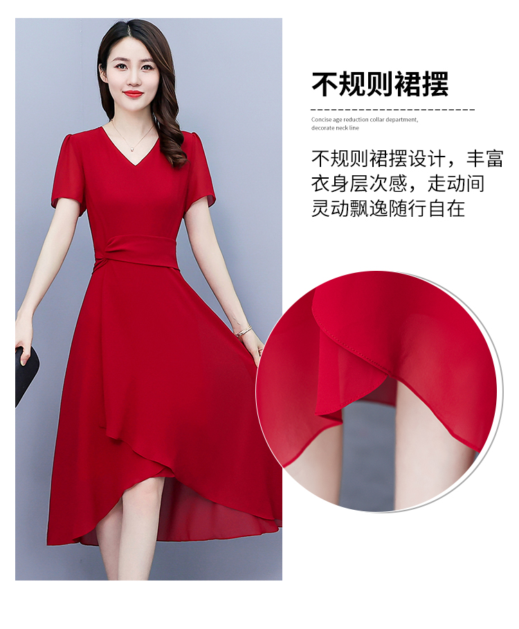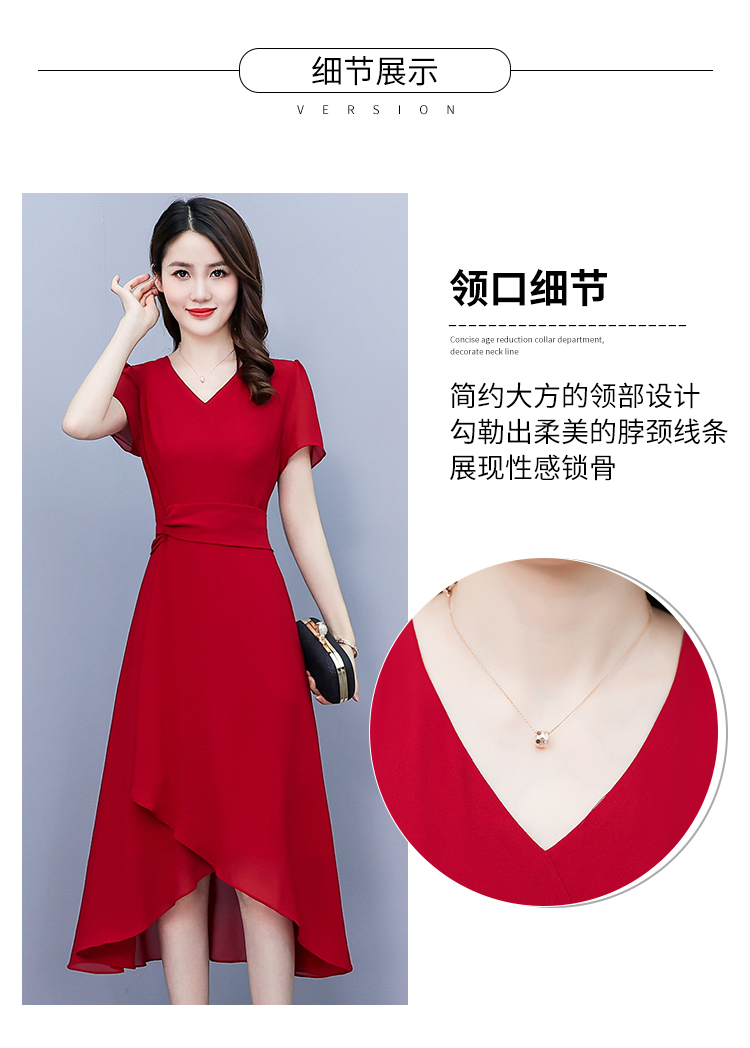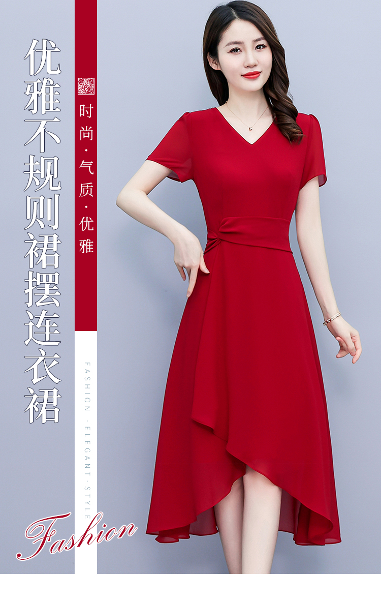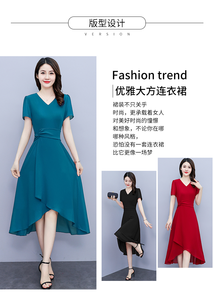 RY2969# 实拍v领纯色连衣裙女夏季2026新款潮流气质荷叶边高端过膝a字裙子