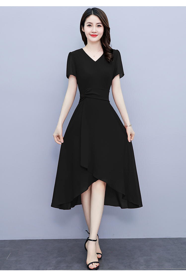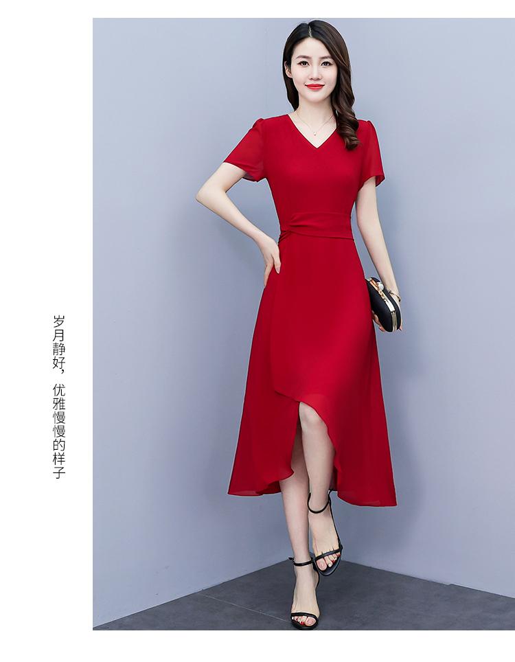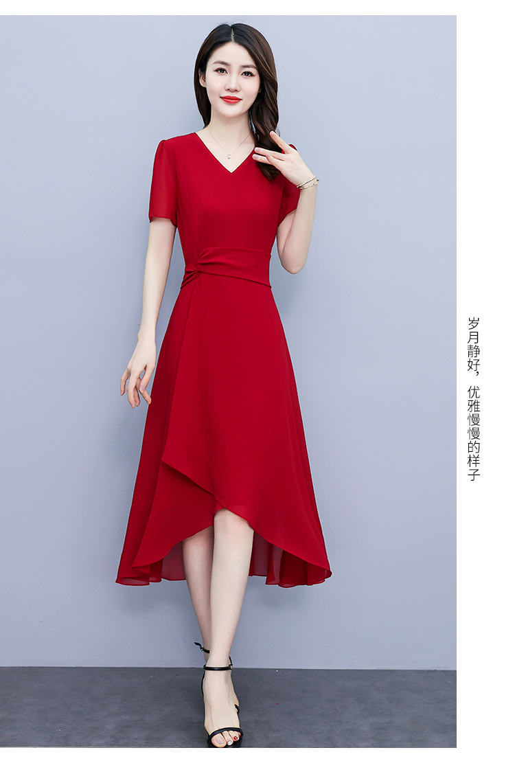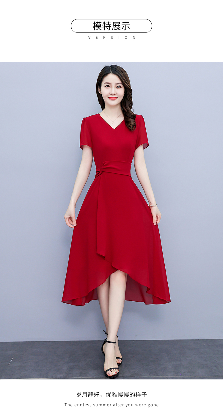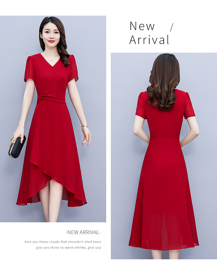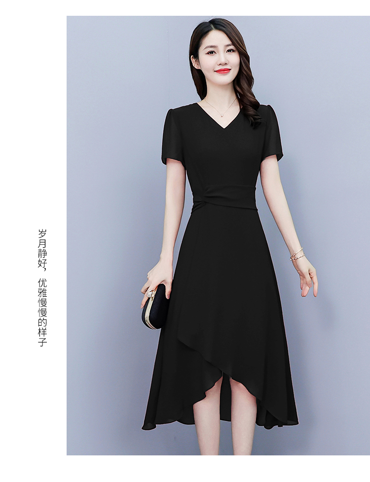 RY2969# 实拍v领纯色连衣裙女夏季2026新款潮流气质荷叶边高端过膝a字裙子