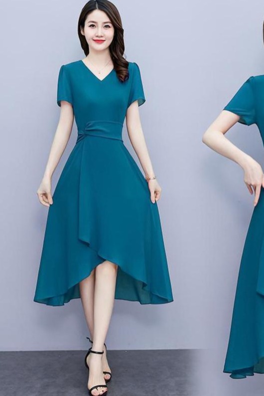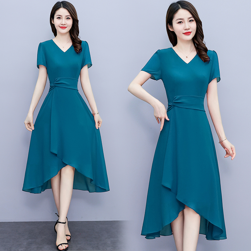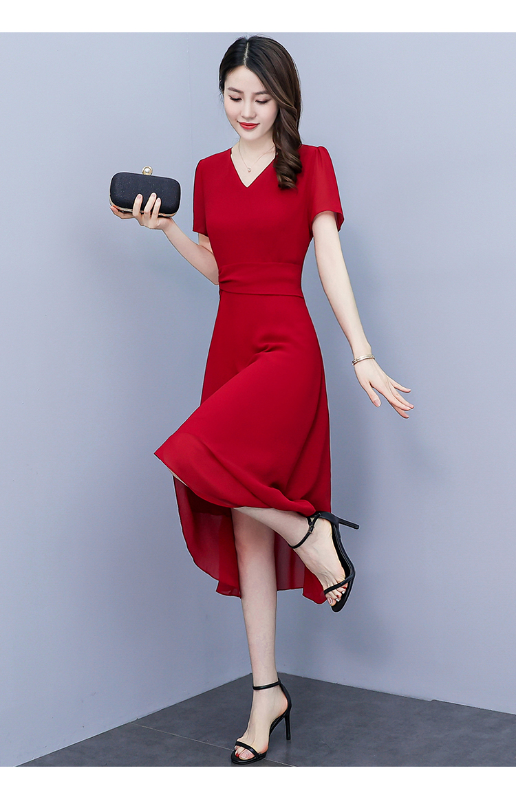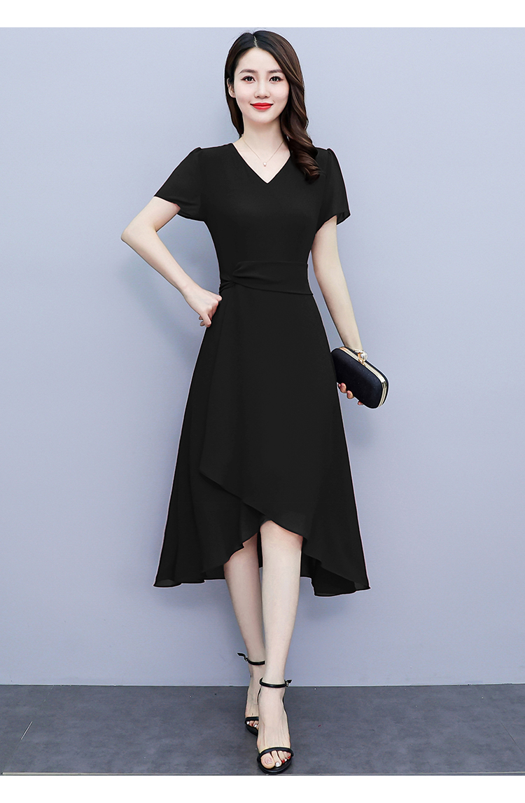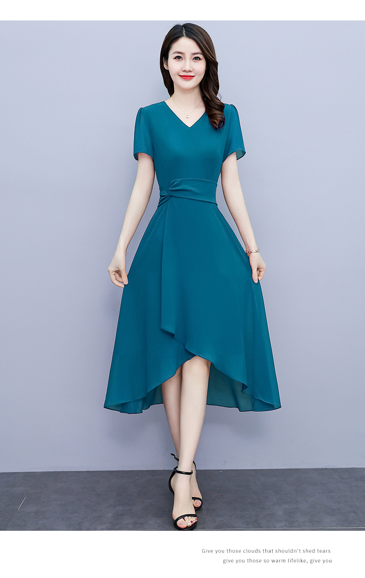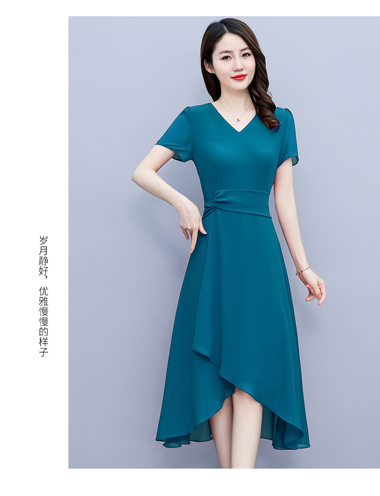 RY2969# 实拍v领纯色连衣裙女夏季2026新款潮流气质荷叶边高端过膝a字裙子