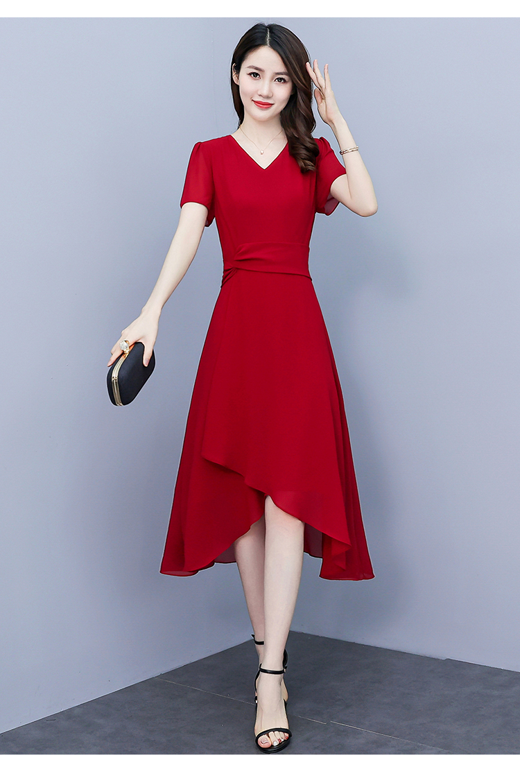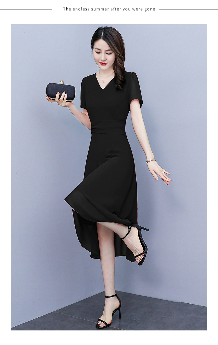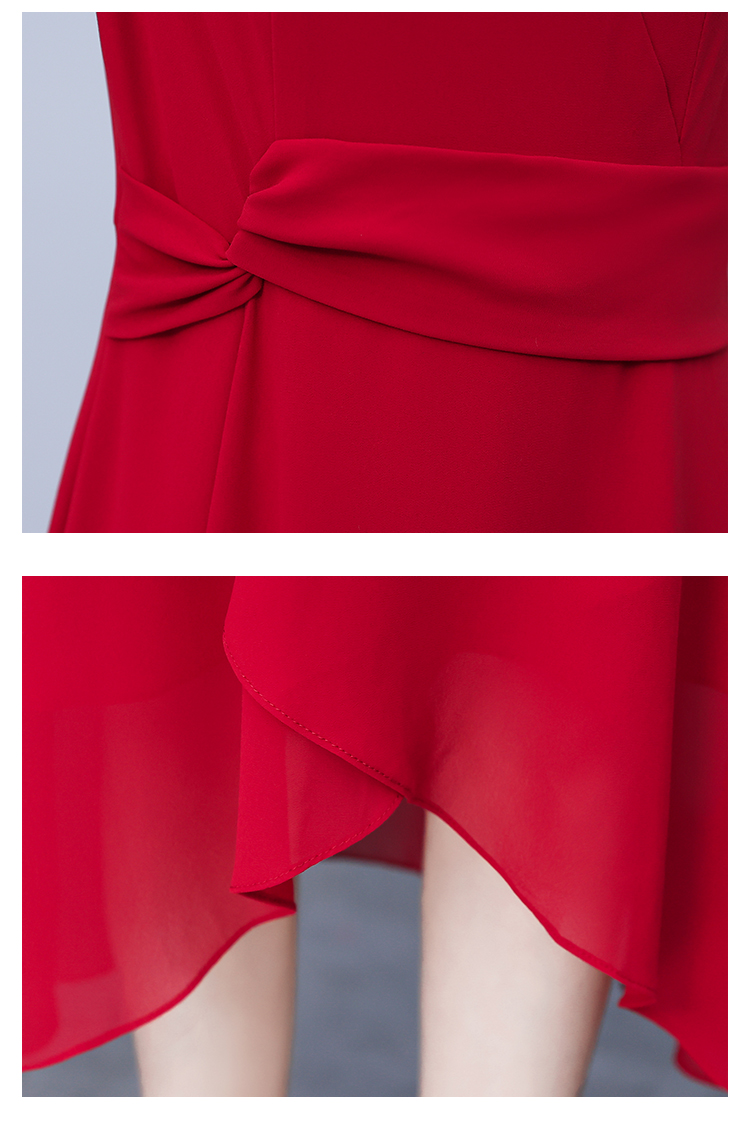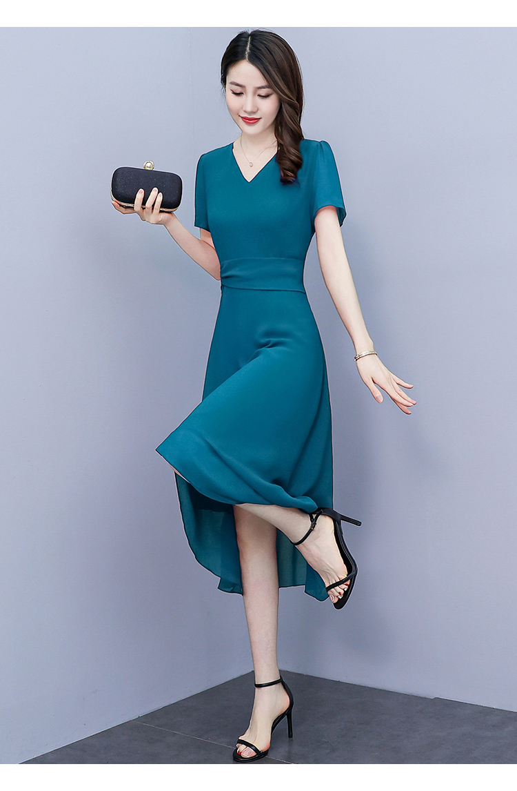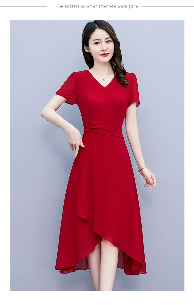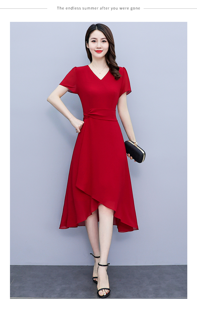 RY2969# 实拍v领纯色连衣裙女夏季2026新款潮流气质荷叶边高端过膝a字裙子
