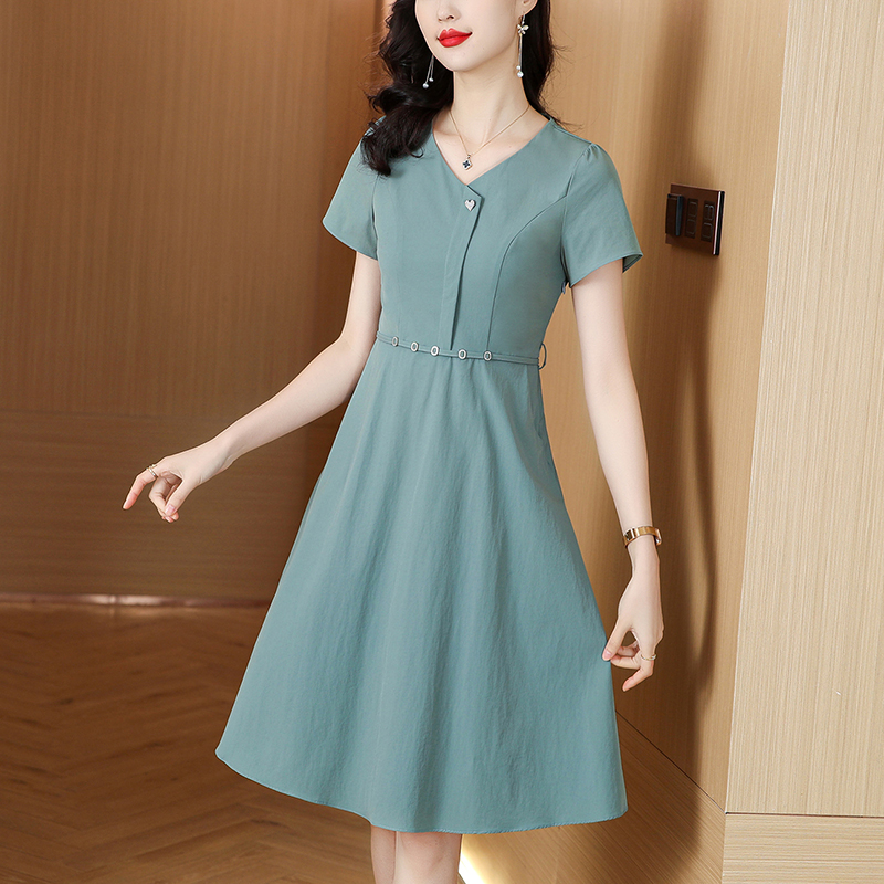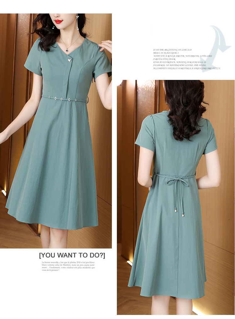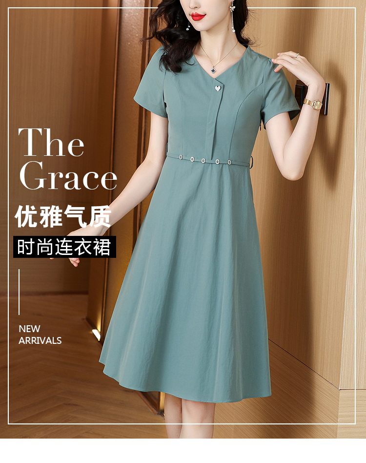 RY2974# 实拍气质时尚连衣裙女2026夏季新款优雅百搭显瘦修身a字裙中长款