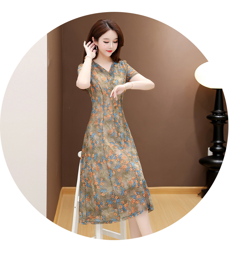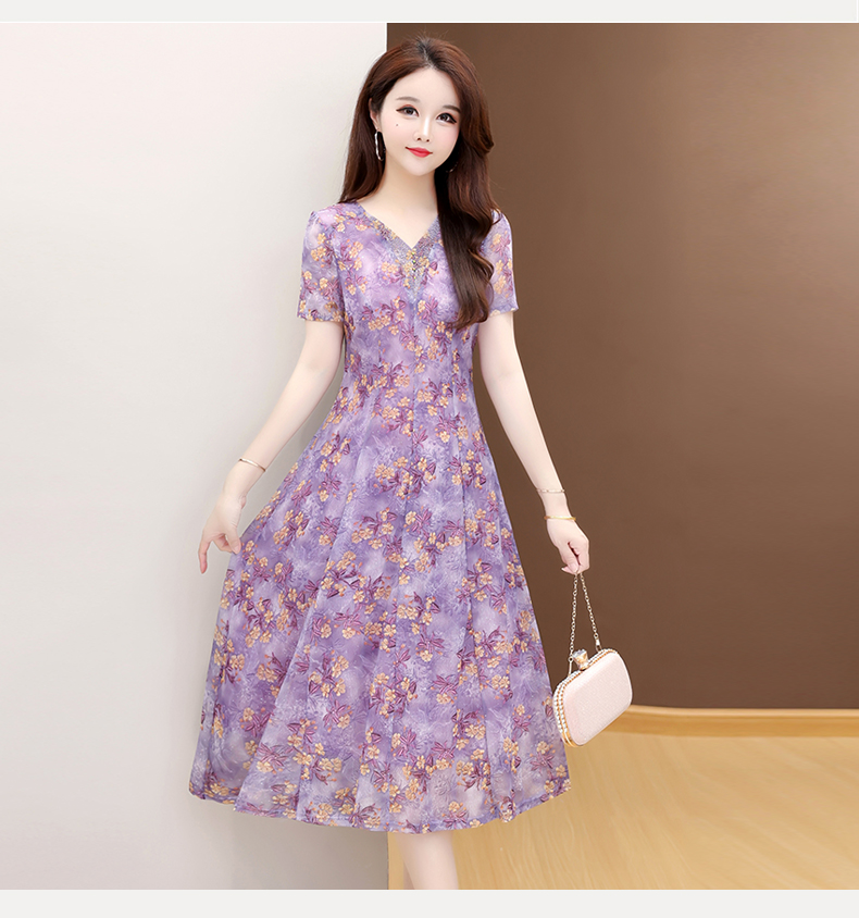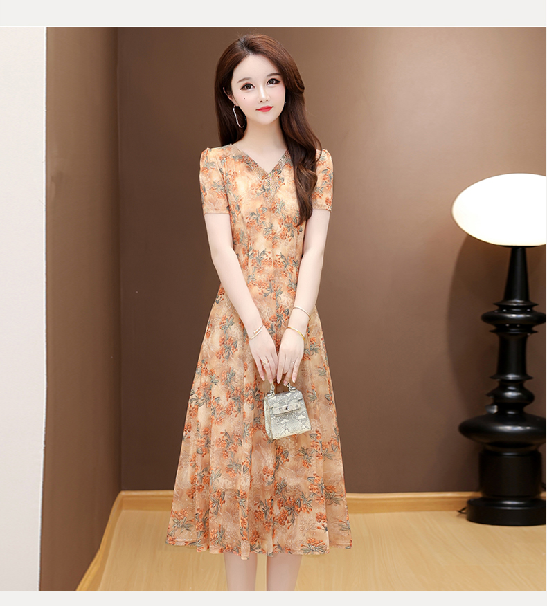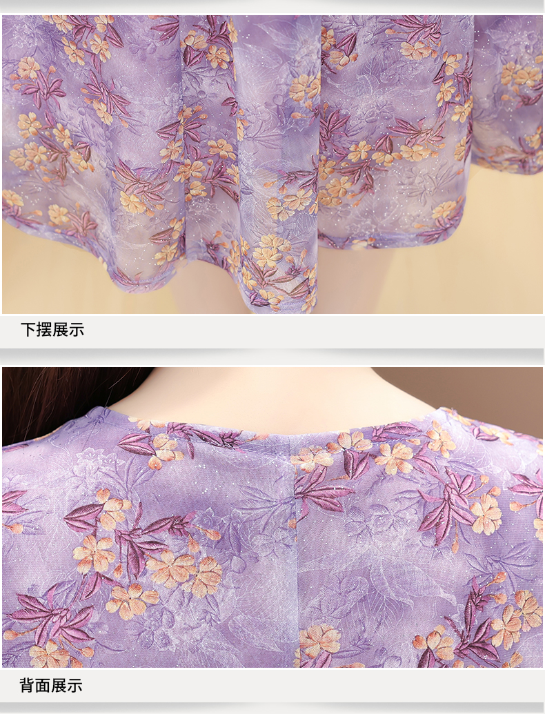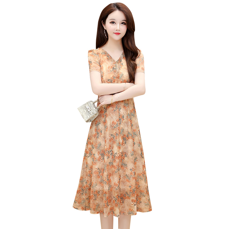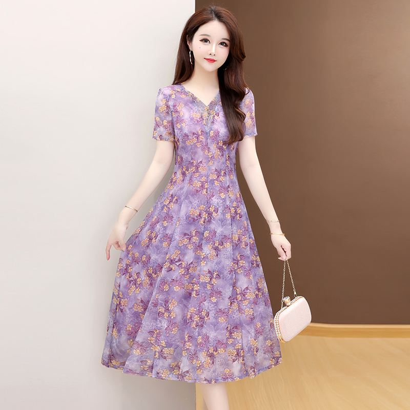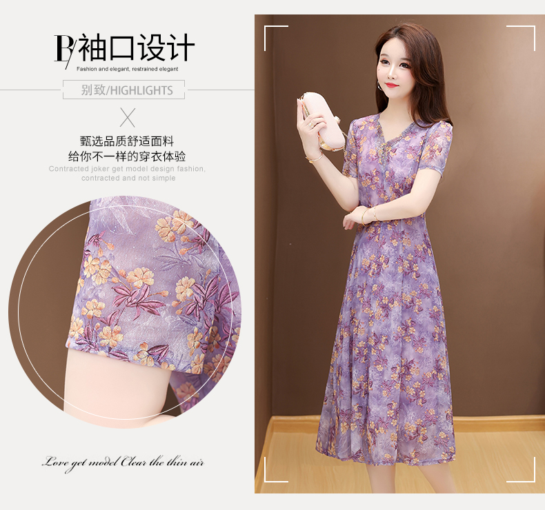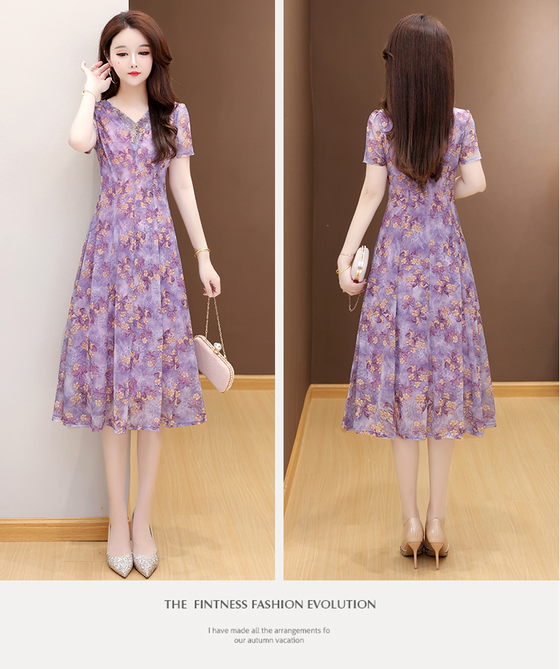 RY2990# 实拍有货 2026夏季新款短袖大码连衣裙印花网纱中长过膝收腰显瘦