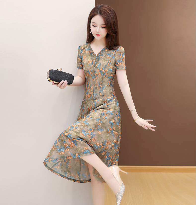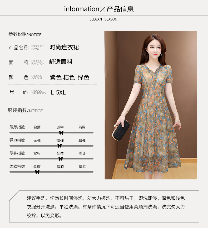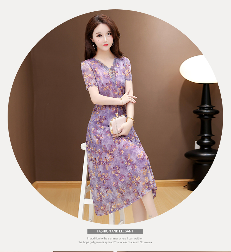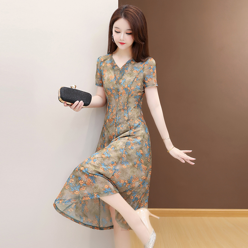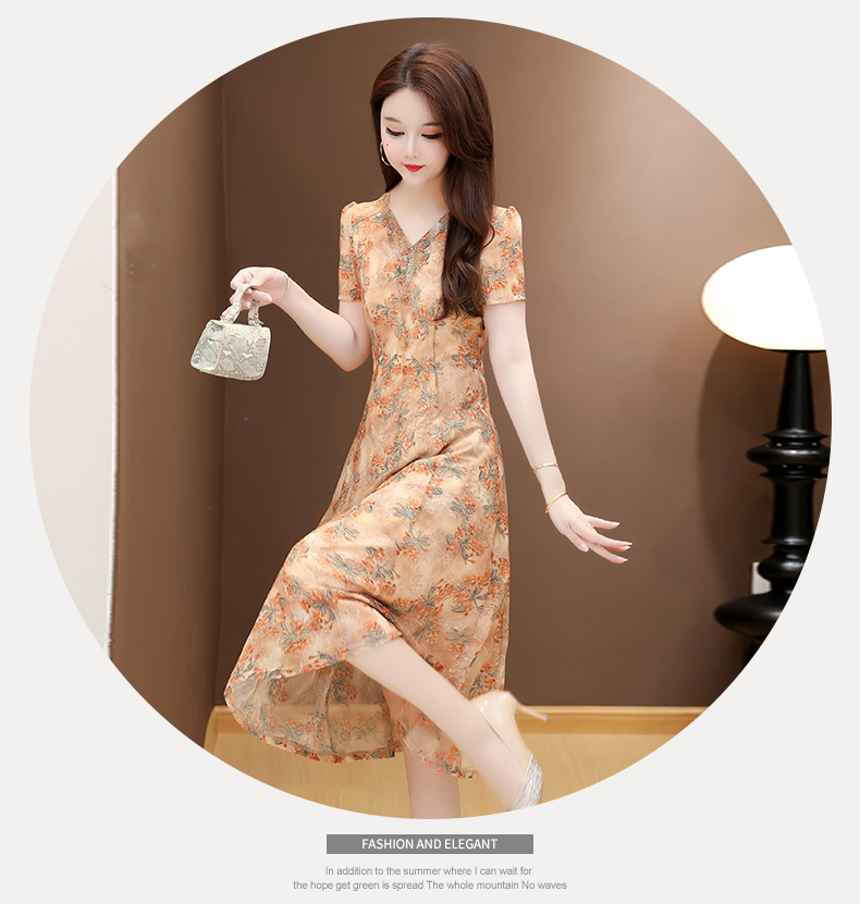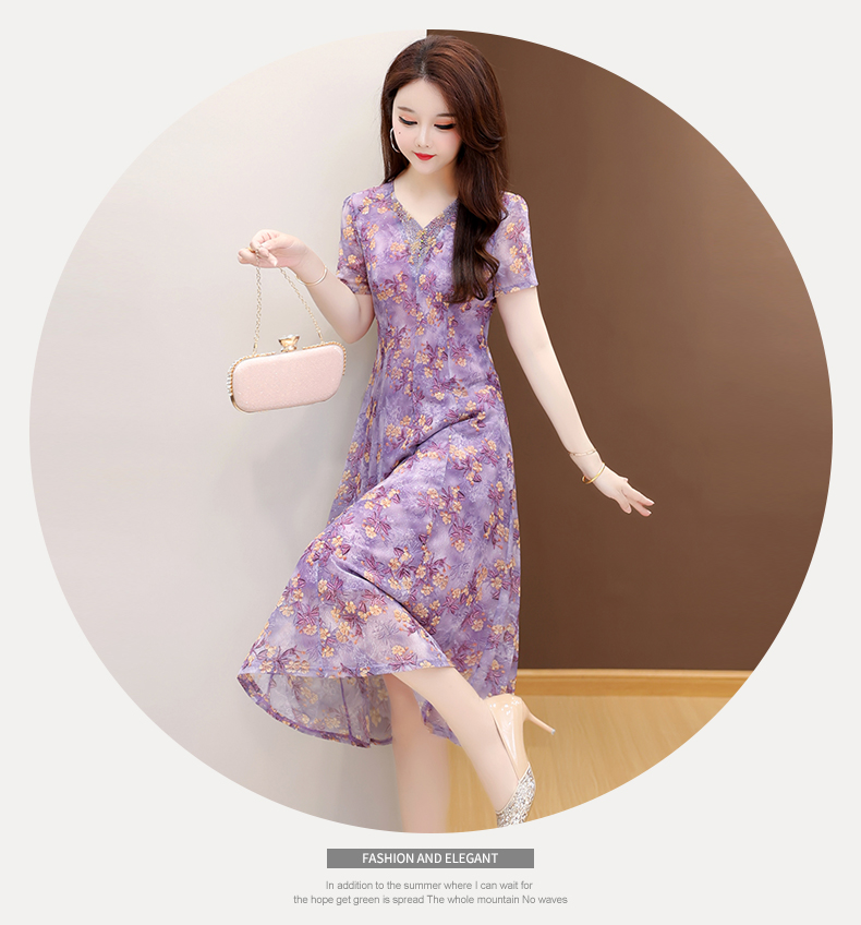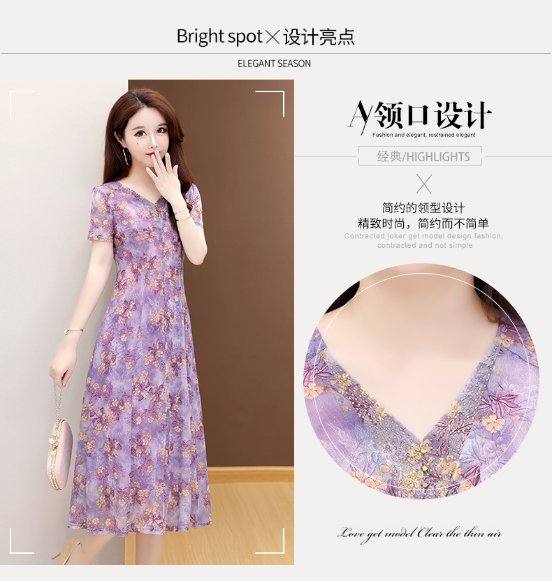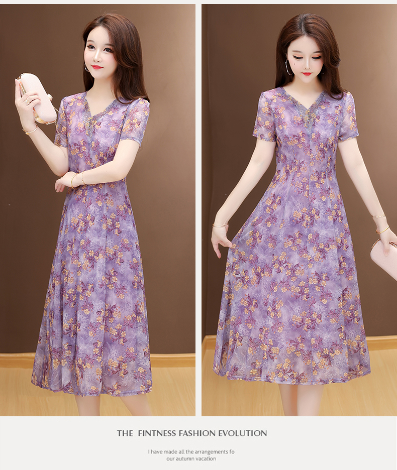 RY2990# 实拍有货 2026夏季新款短袖大码连衣裙印花网纱中长过膝收腰显瘦