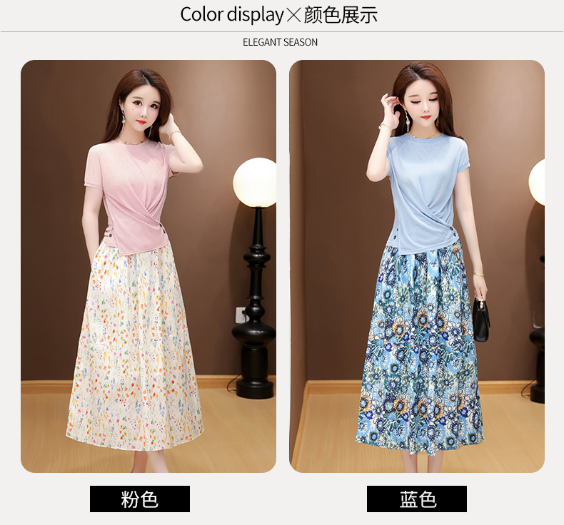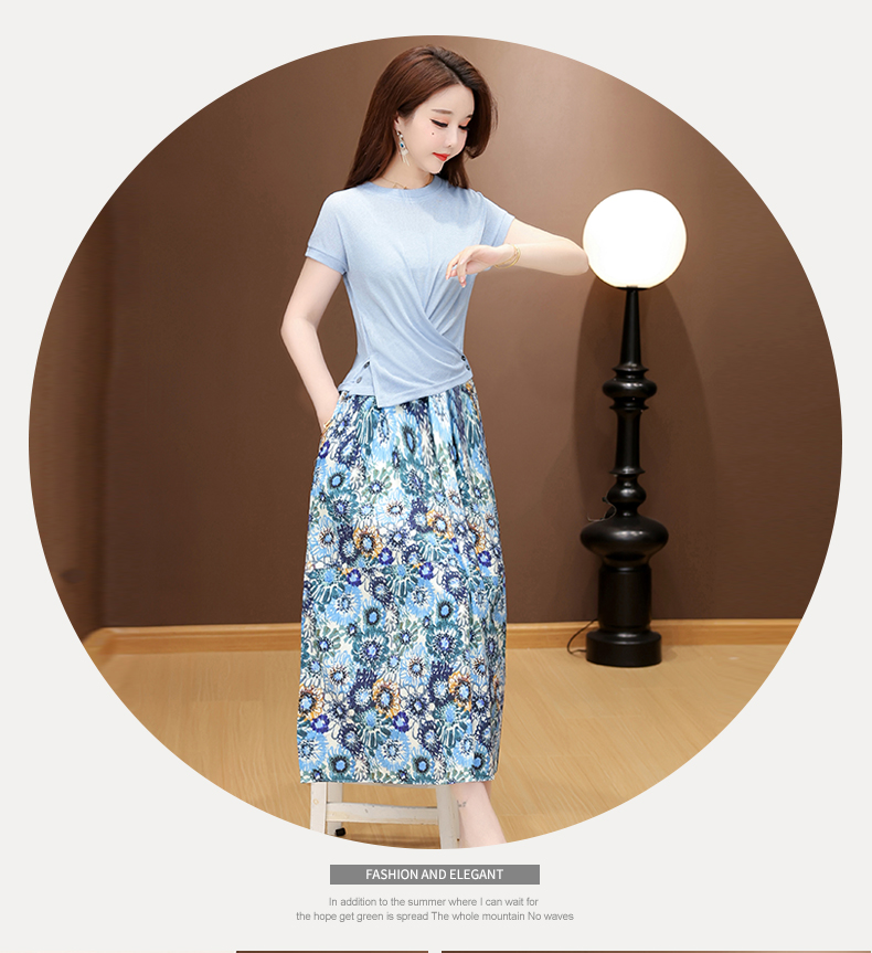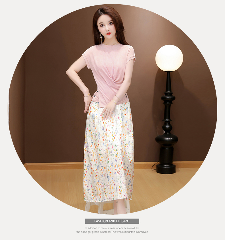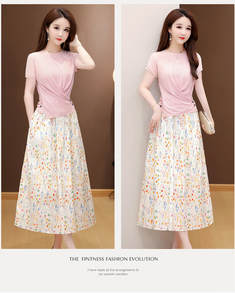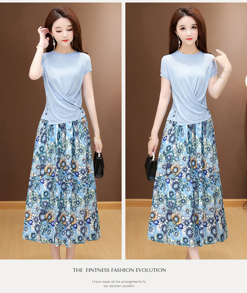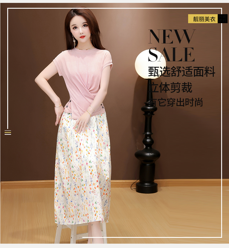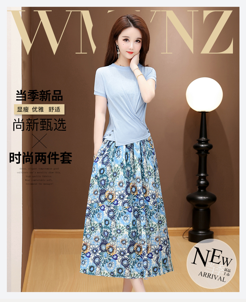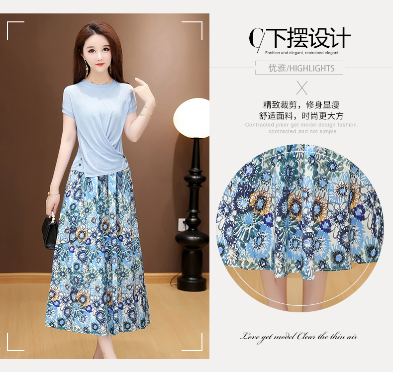 RY2994# 实拍有货 2026夏季新款大码套装套裙时尚洋气T恤+裙子遮肚显瘦