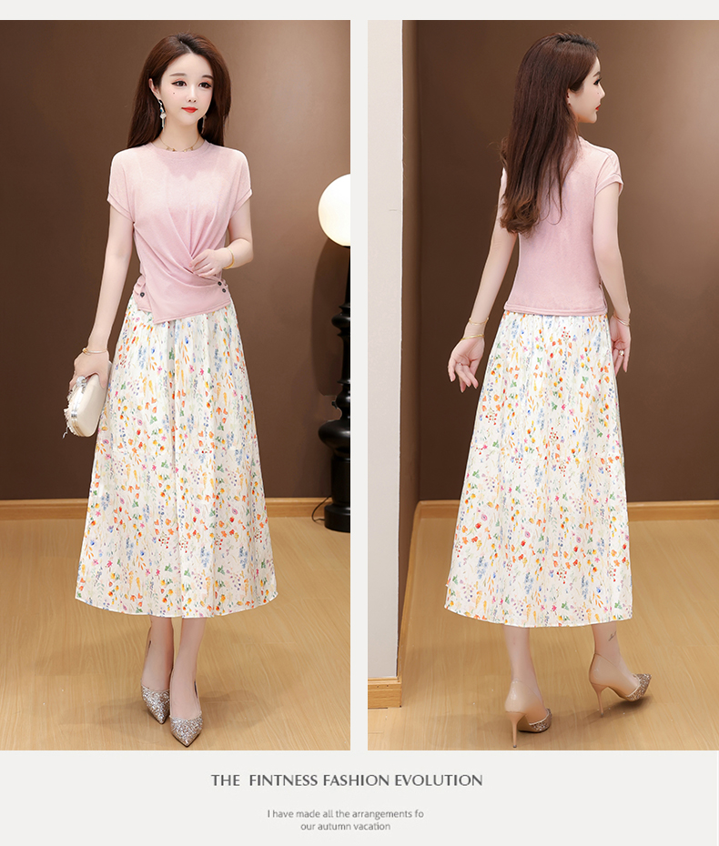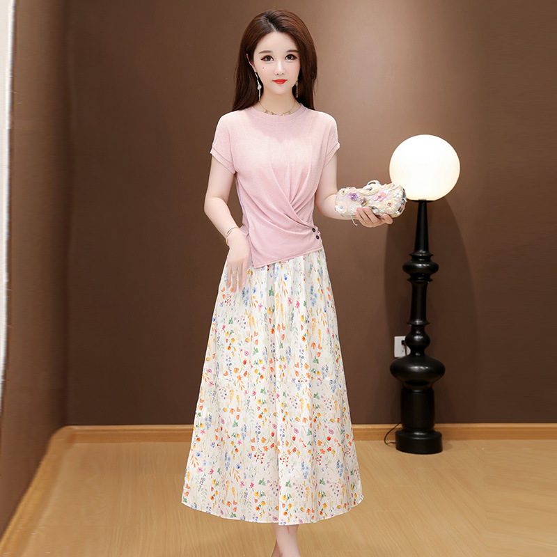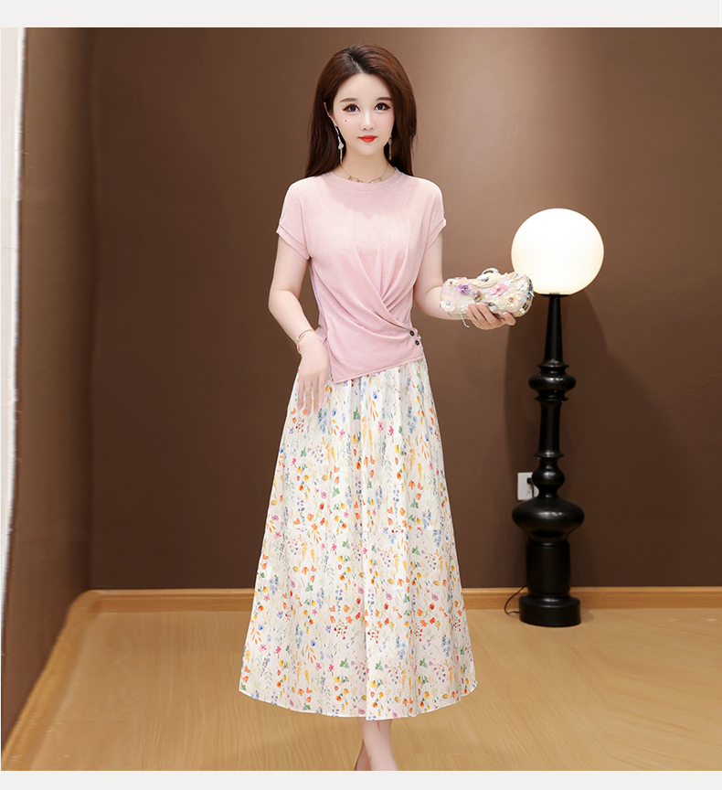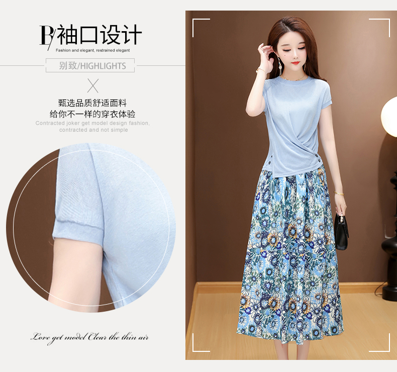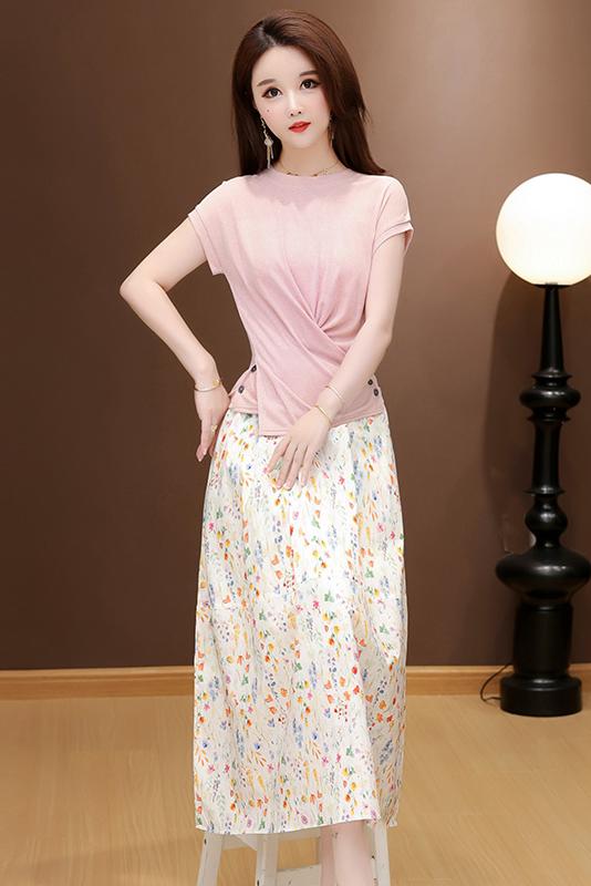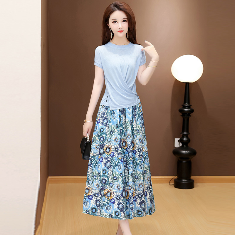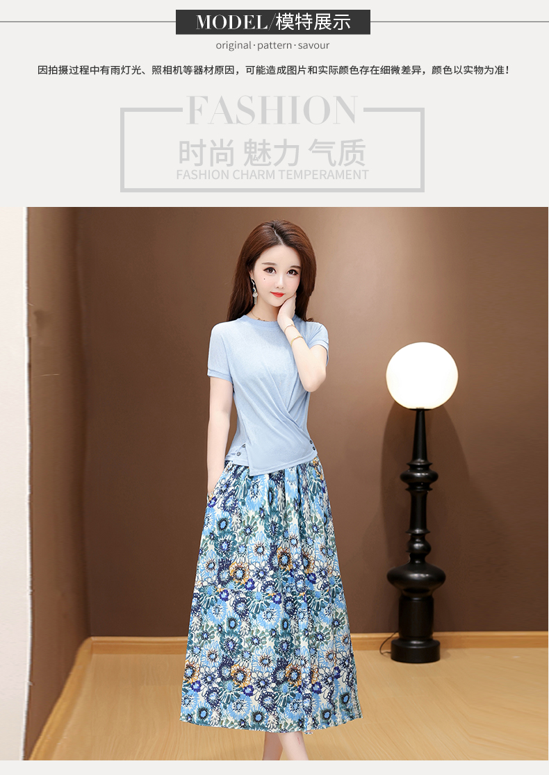 RY2994# 实拍有货 2026夏季新款大码套装套裙时尚洋气T恤+裙子遮肚显瘦