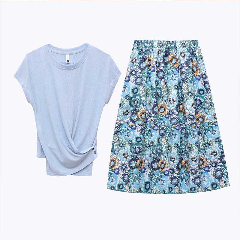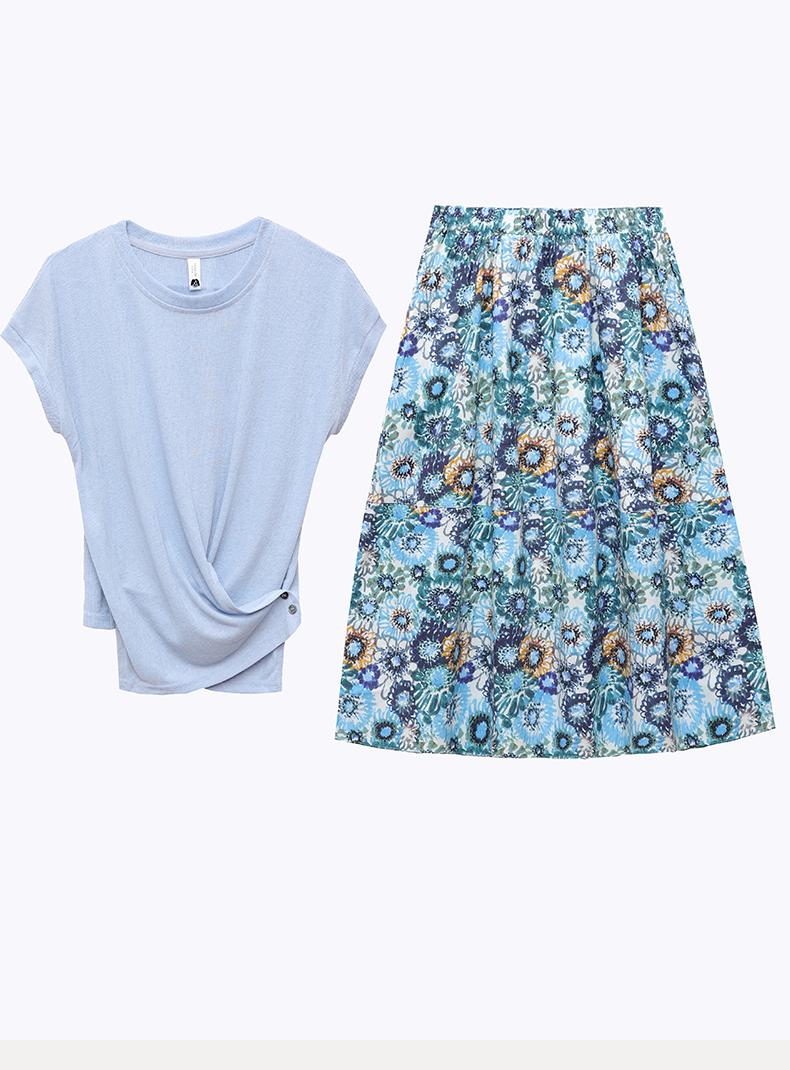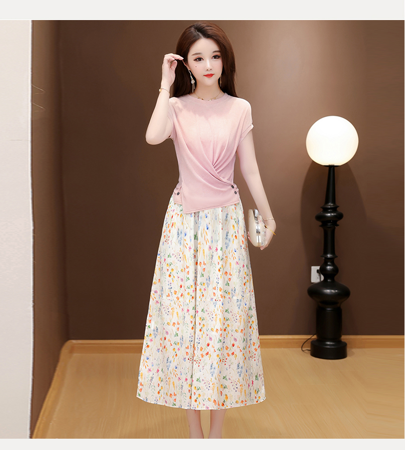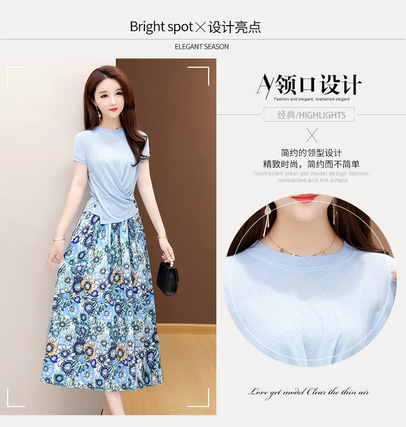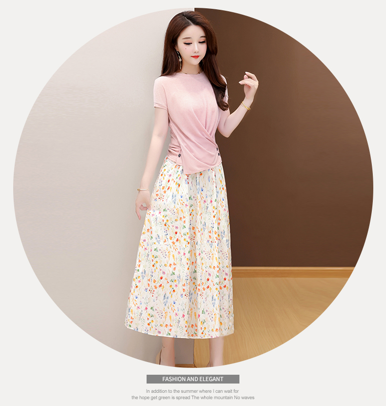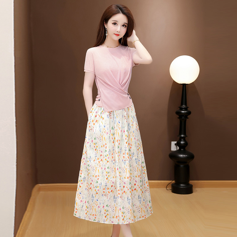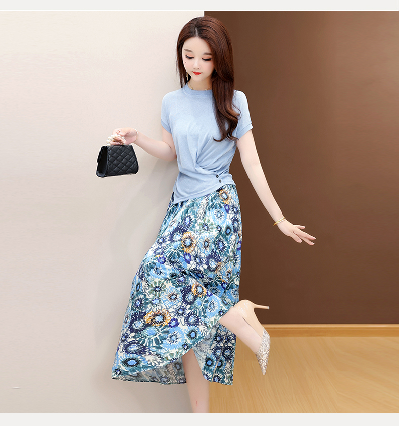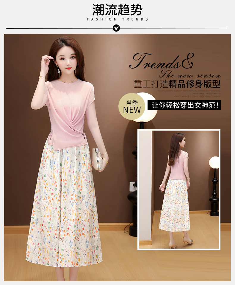 RY2994# 实拍有货 2026夏季新款大码套装套裙时尚洋气T恤+裙子遮肚显瘦