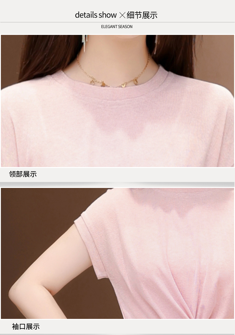 RY3000# 实拍2026新款提花缎面国风刺绣圆领中长款内搭外穿修身中袖...