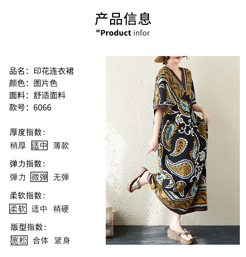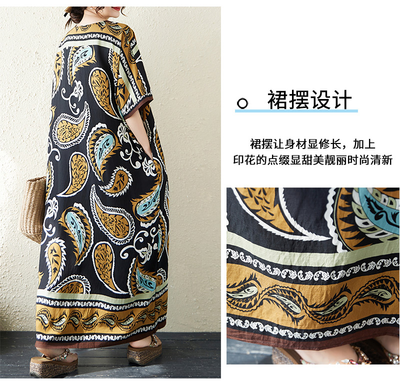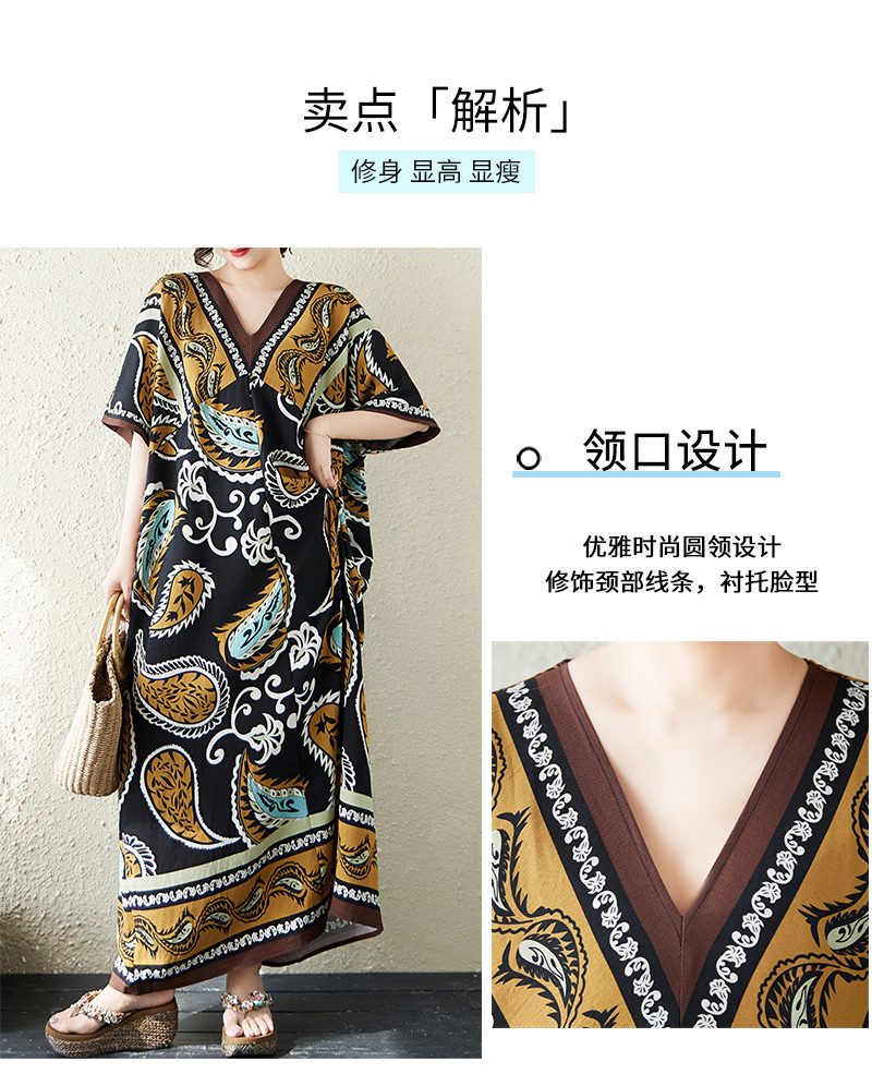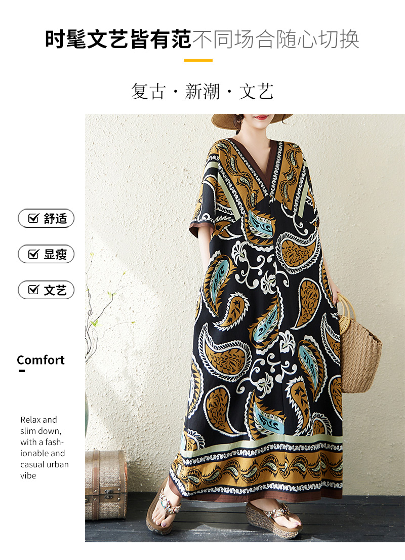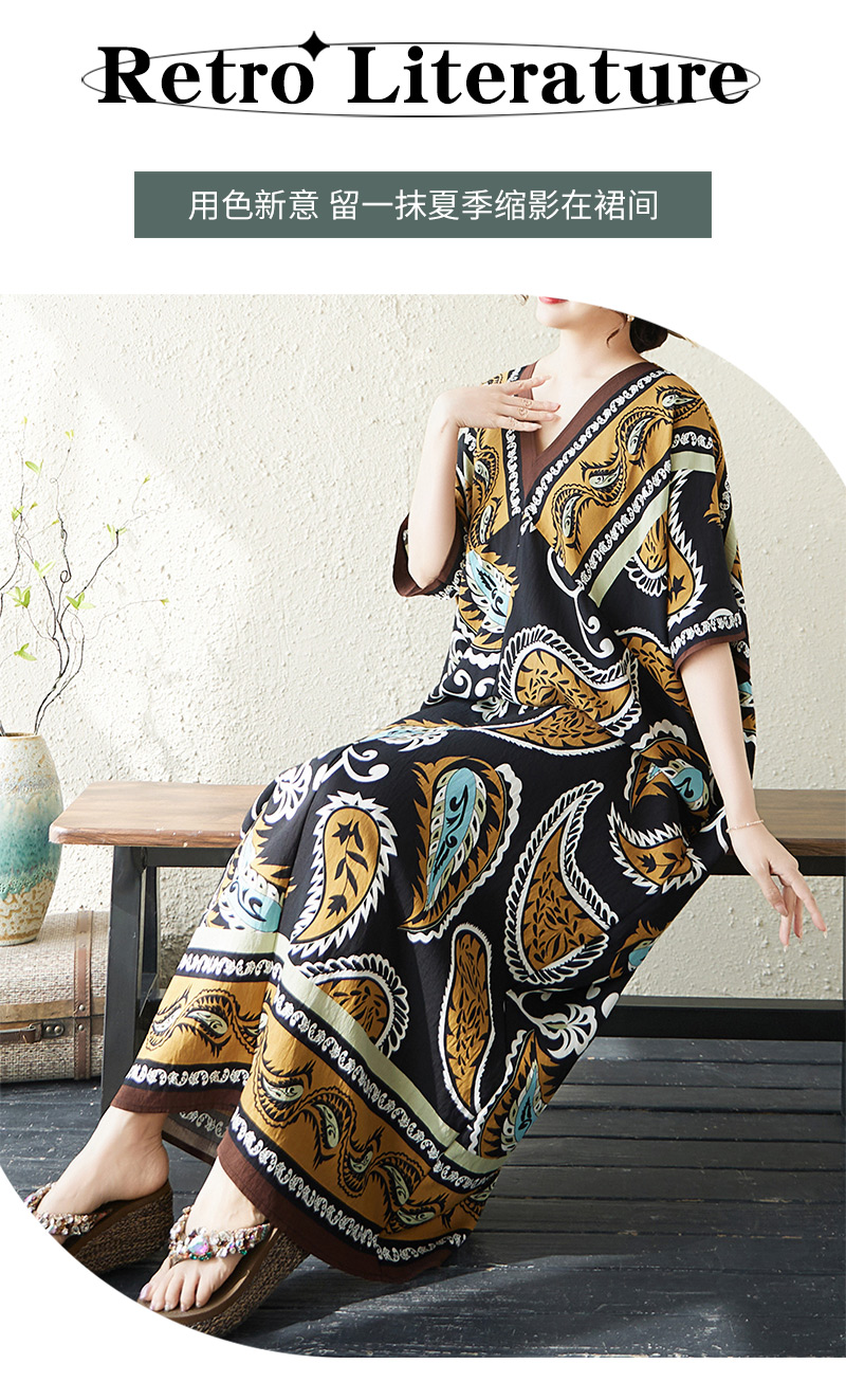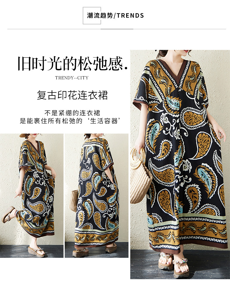 RY2997# 实拍大码原创法式高级感短袖V领垂感定位印花宽松显瘦连衣裙女