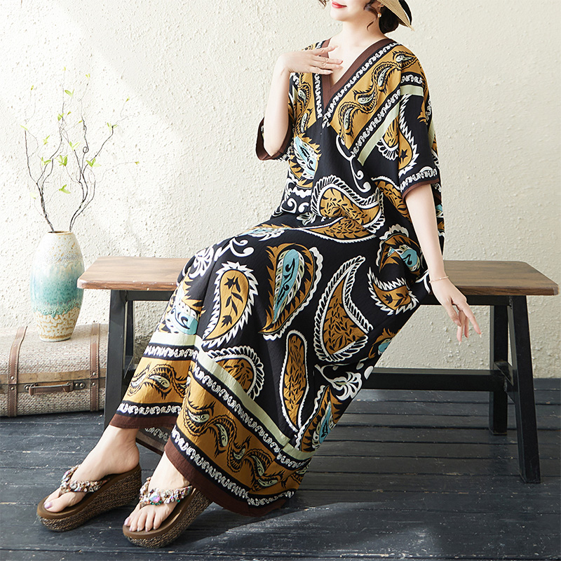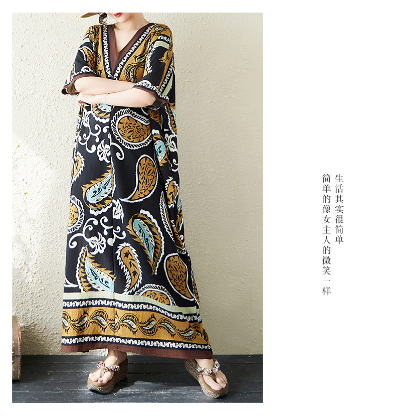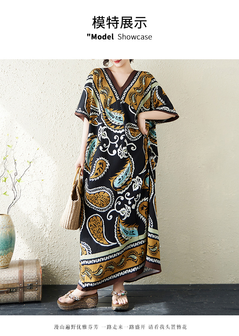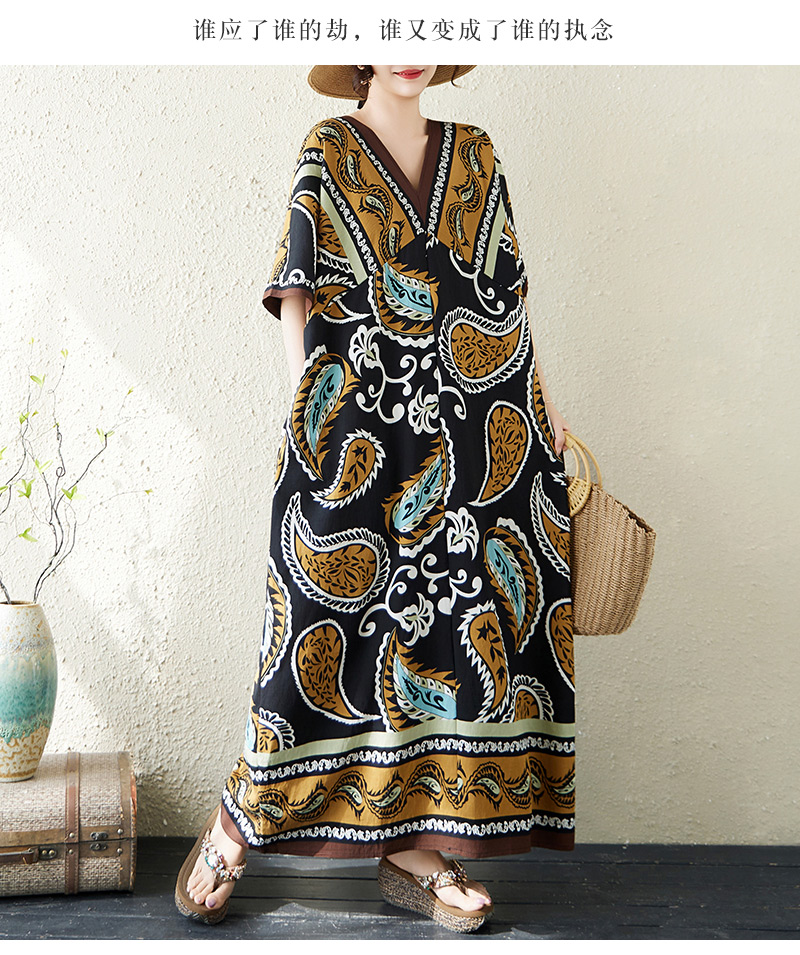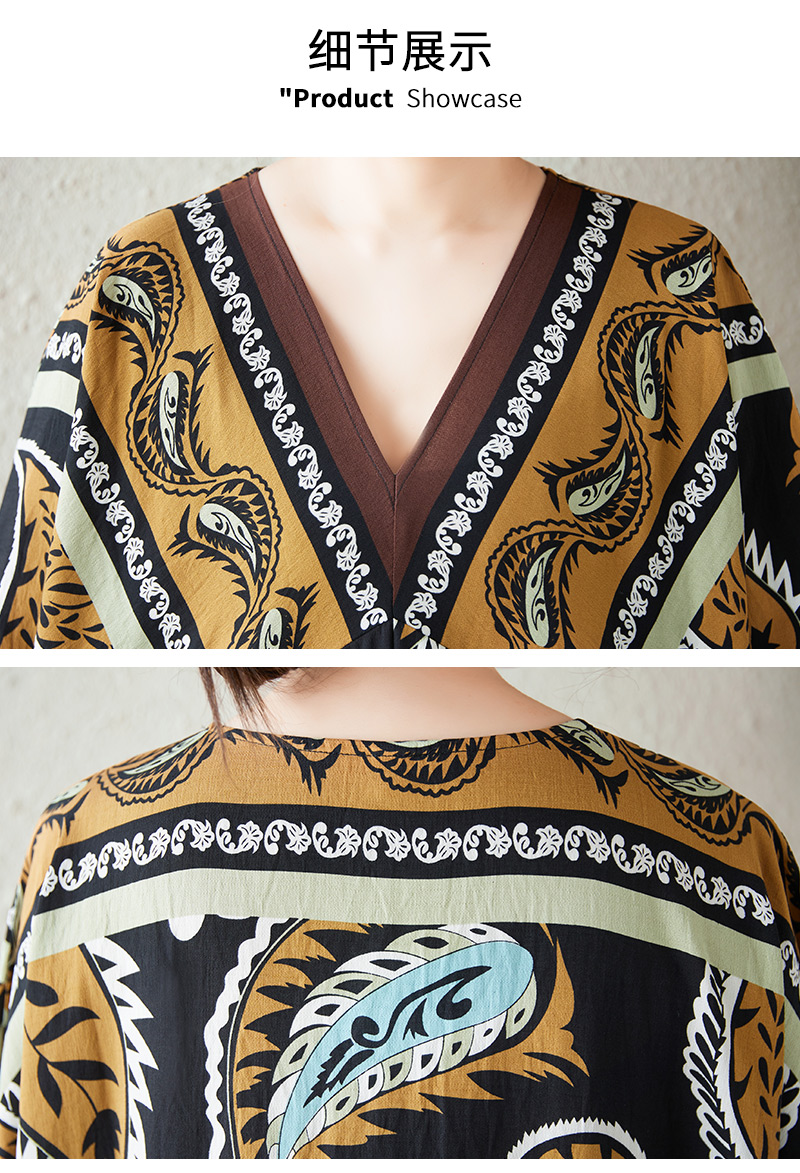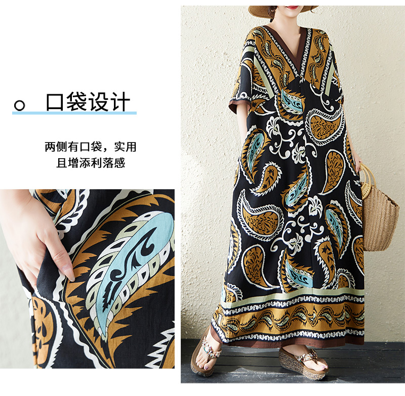 RY2997# 实拍大码原创法式高级感短袖V领垂感定位印花宽松显瘦连衣裙女