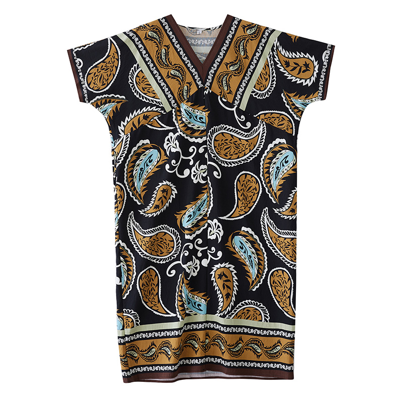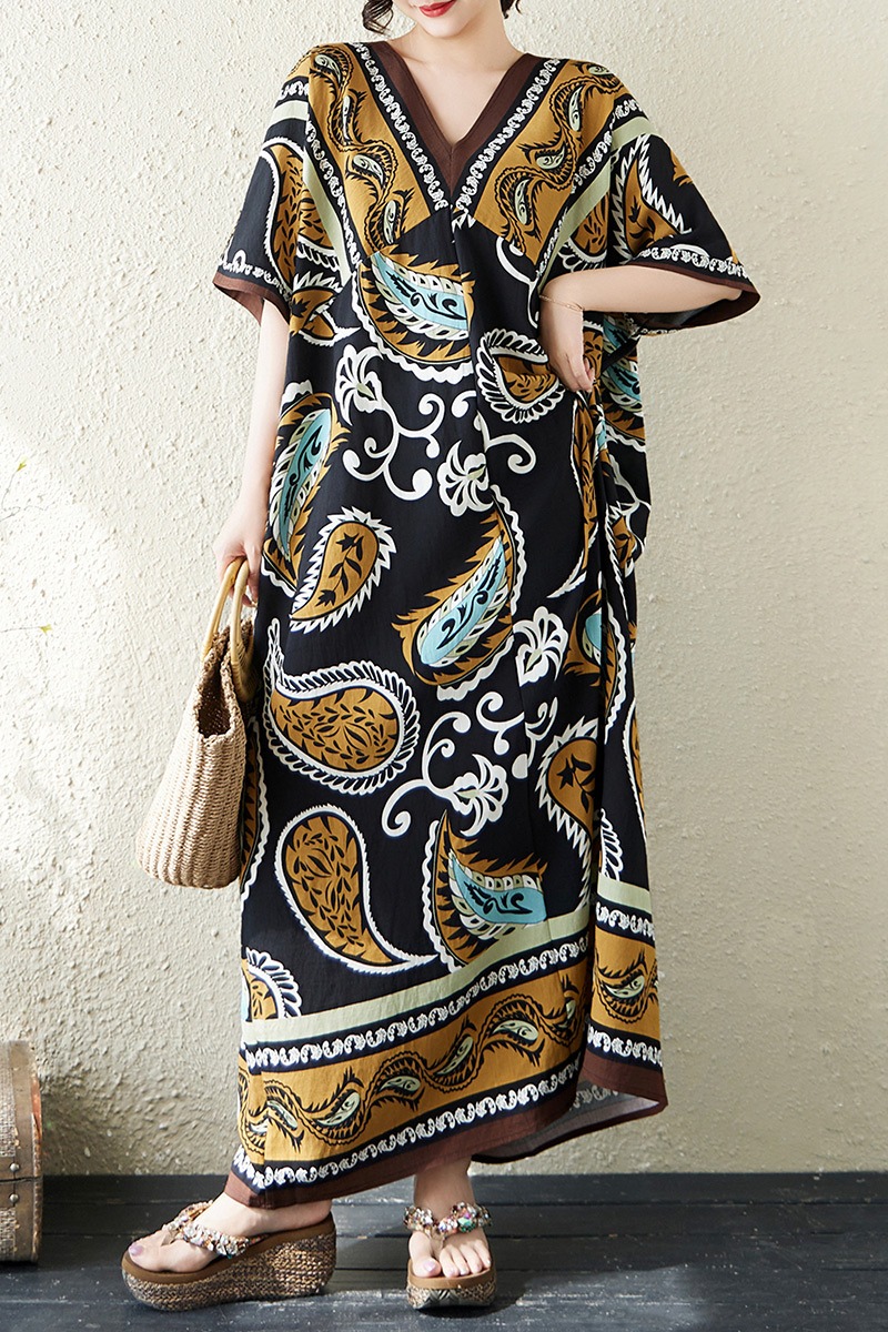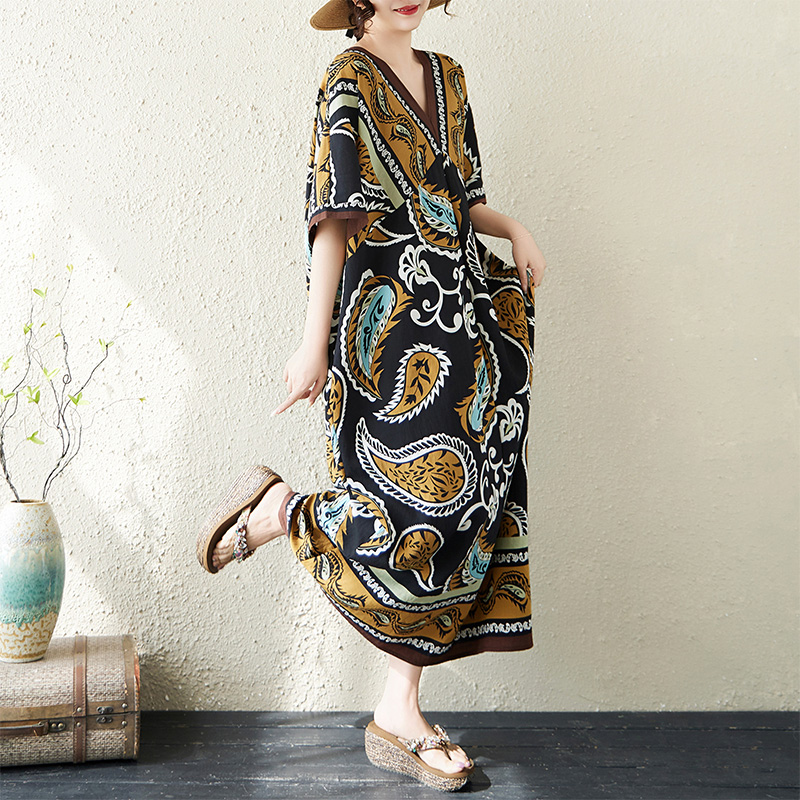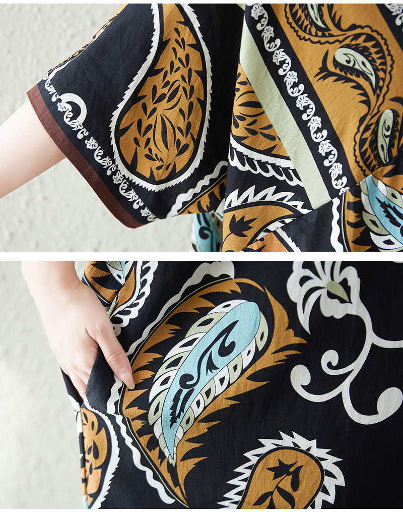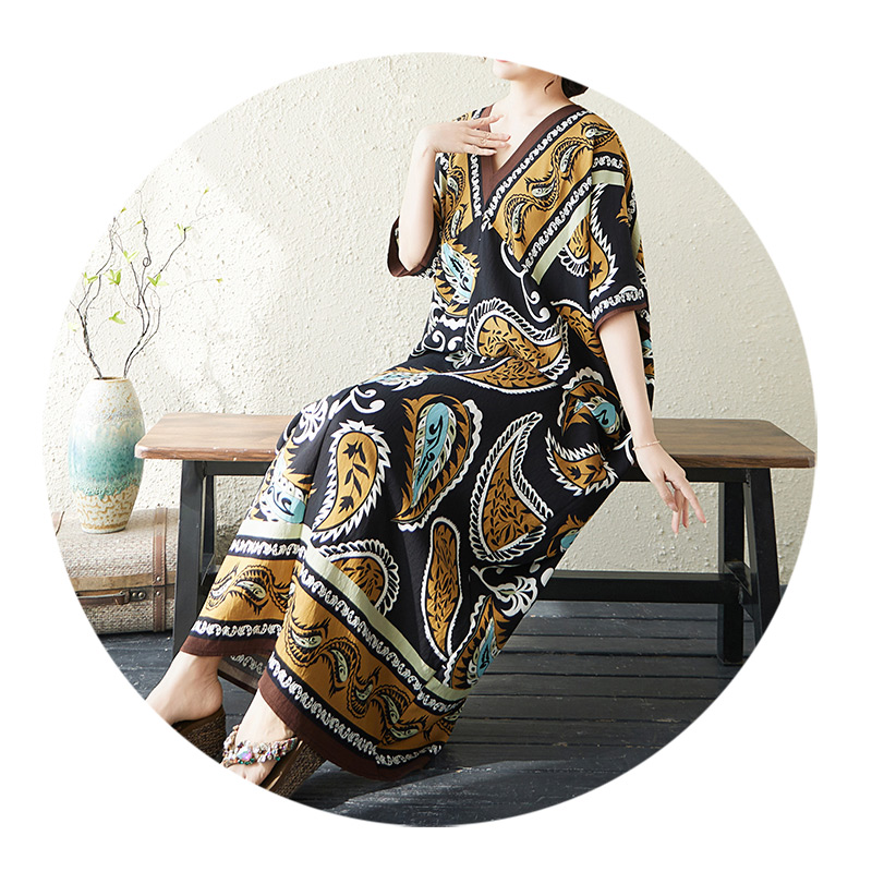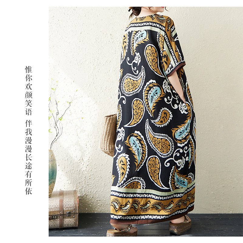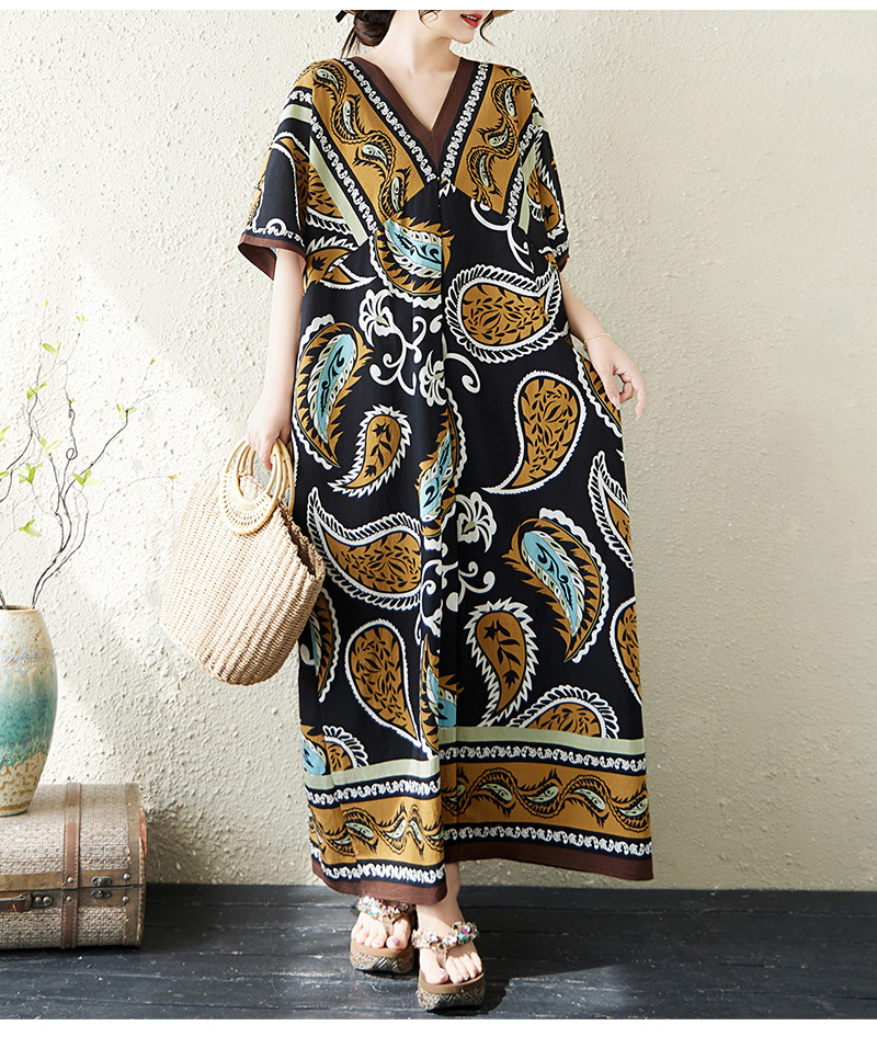 RY2997# 实拍大码原创法式高级感短袖V领垂感定位印花宽松显瘦连衣裙女
