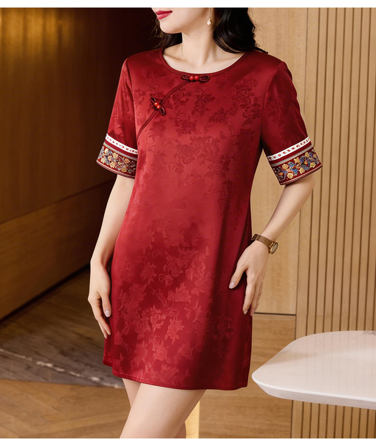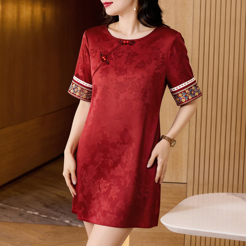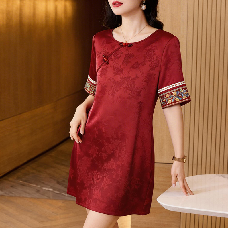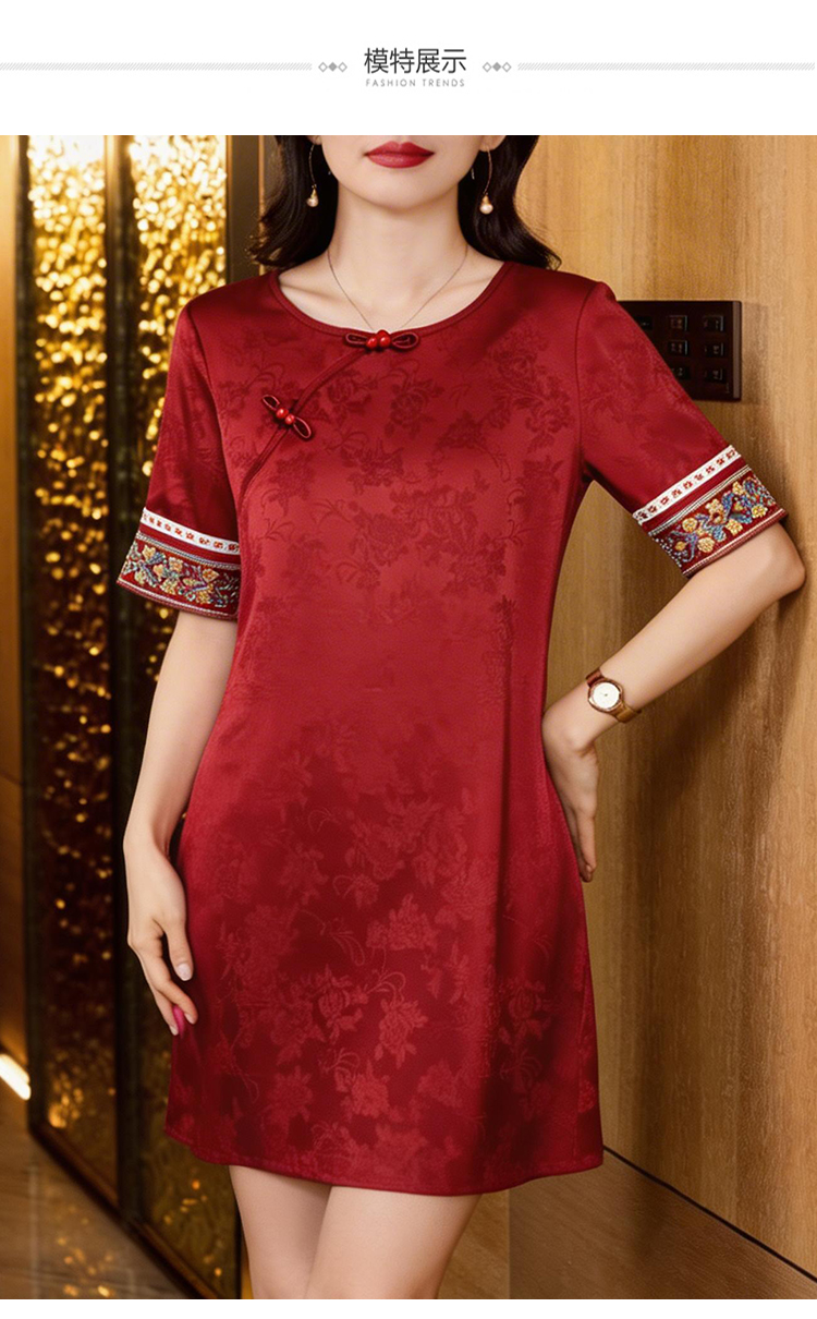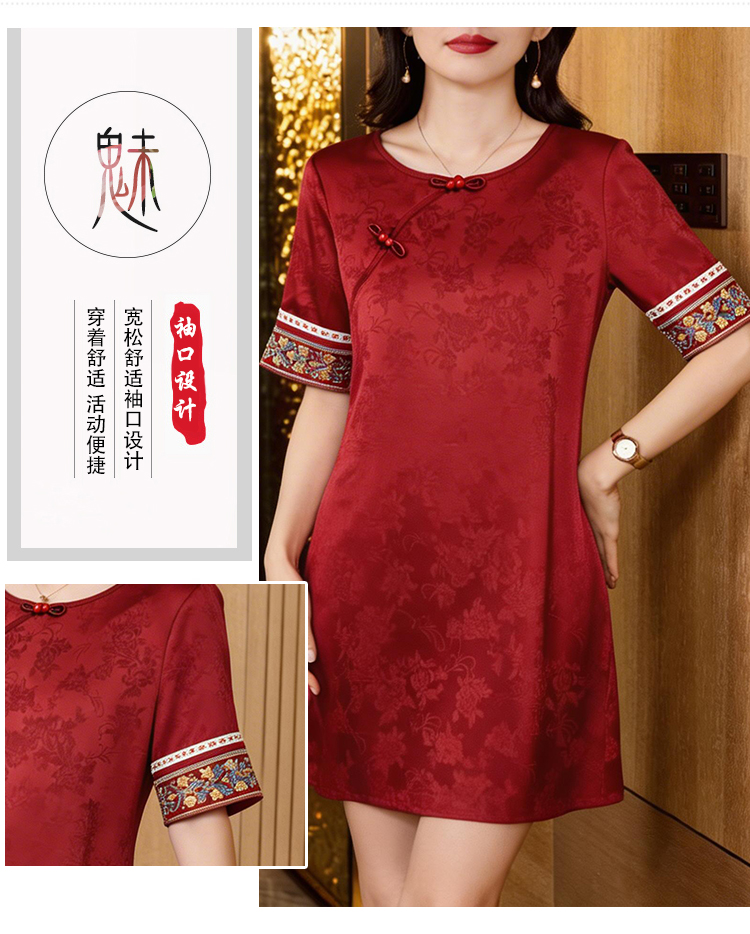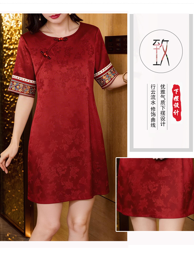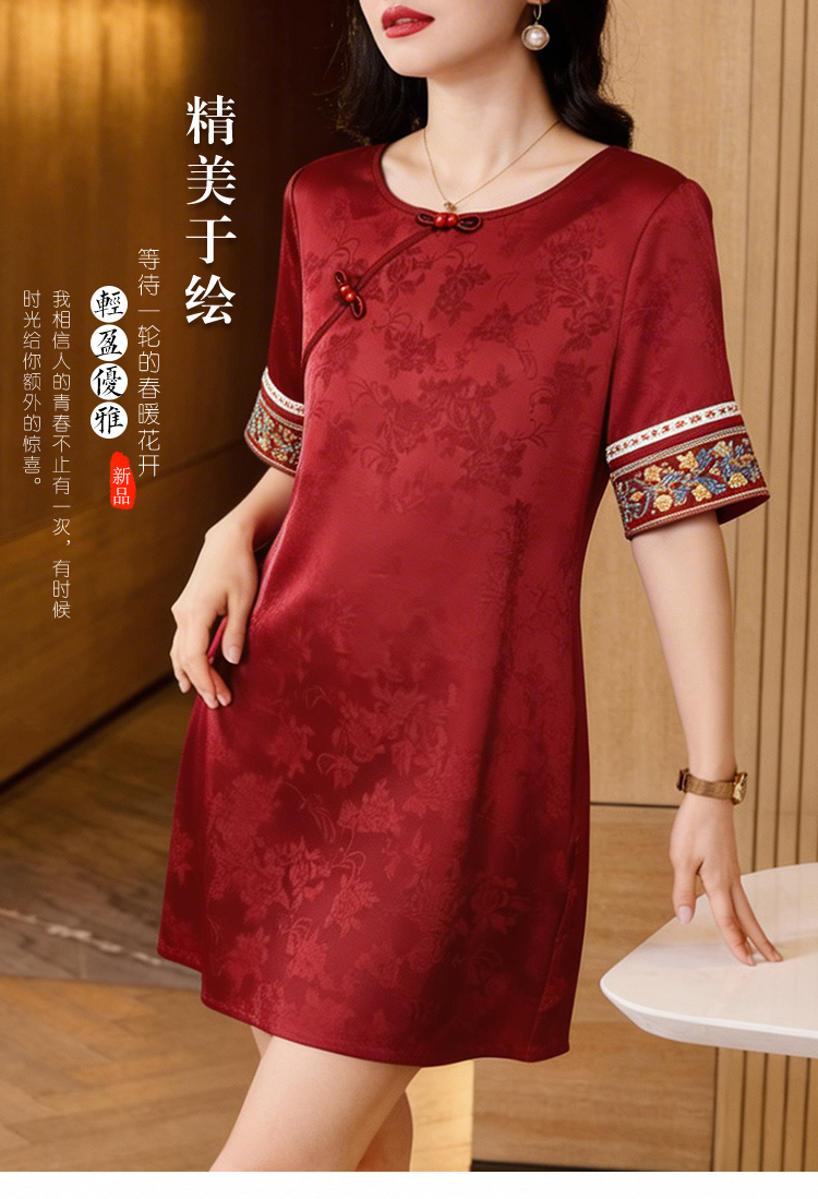 RY2999# 实拍春夏新款提花缎面连衣裙2026新款新中式盘扣设计感百搭裙子